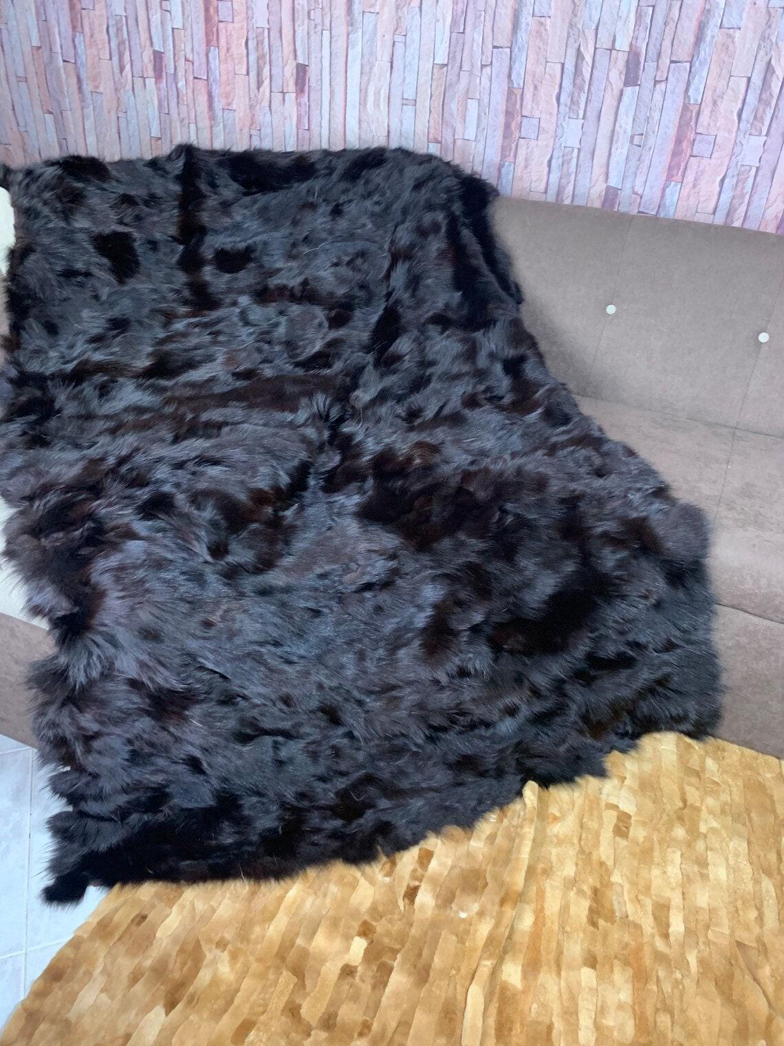Handmade Real Brown Fox Fur Blanket that can be used as a throw as well. Perfect for Bedspread or Sofa Cover.