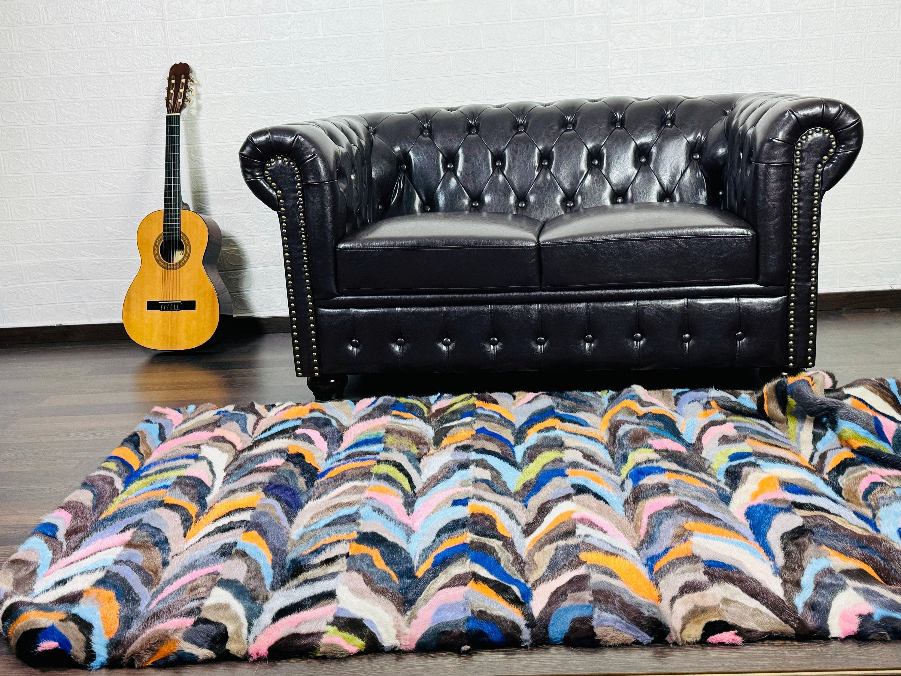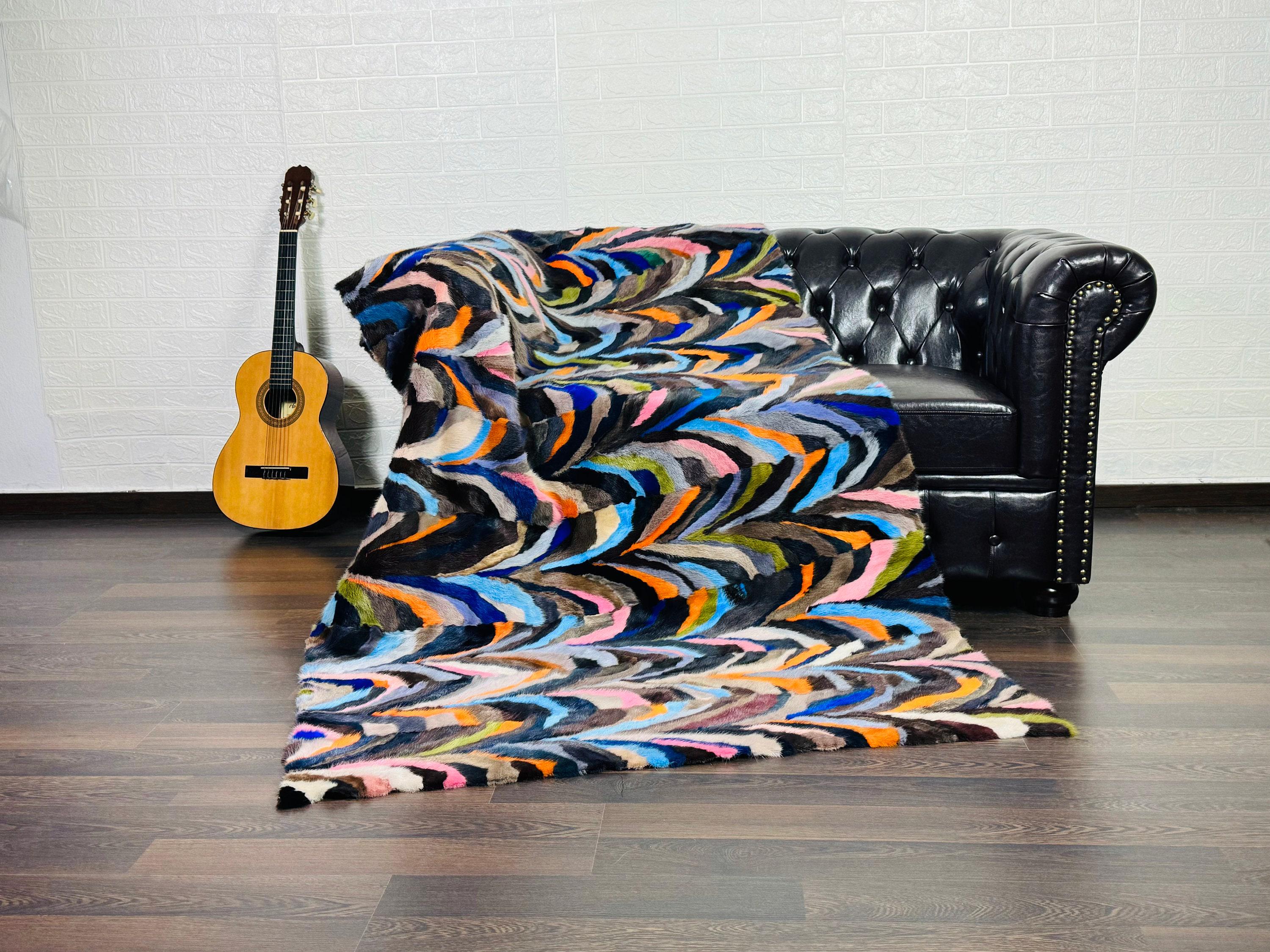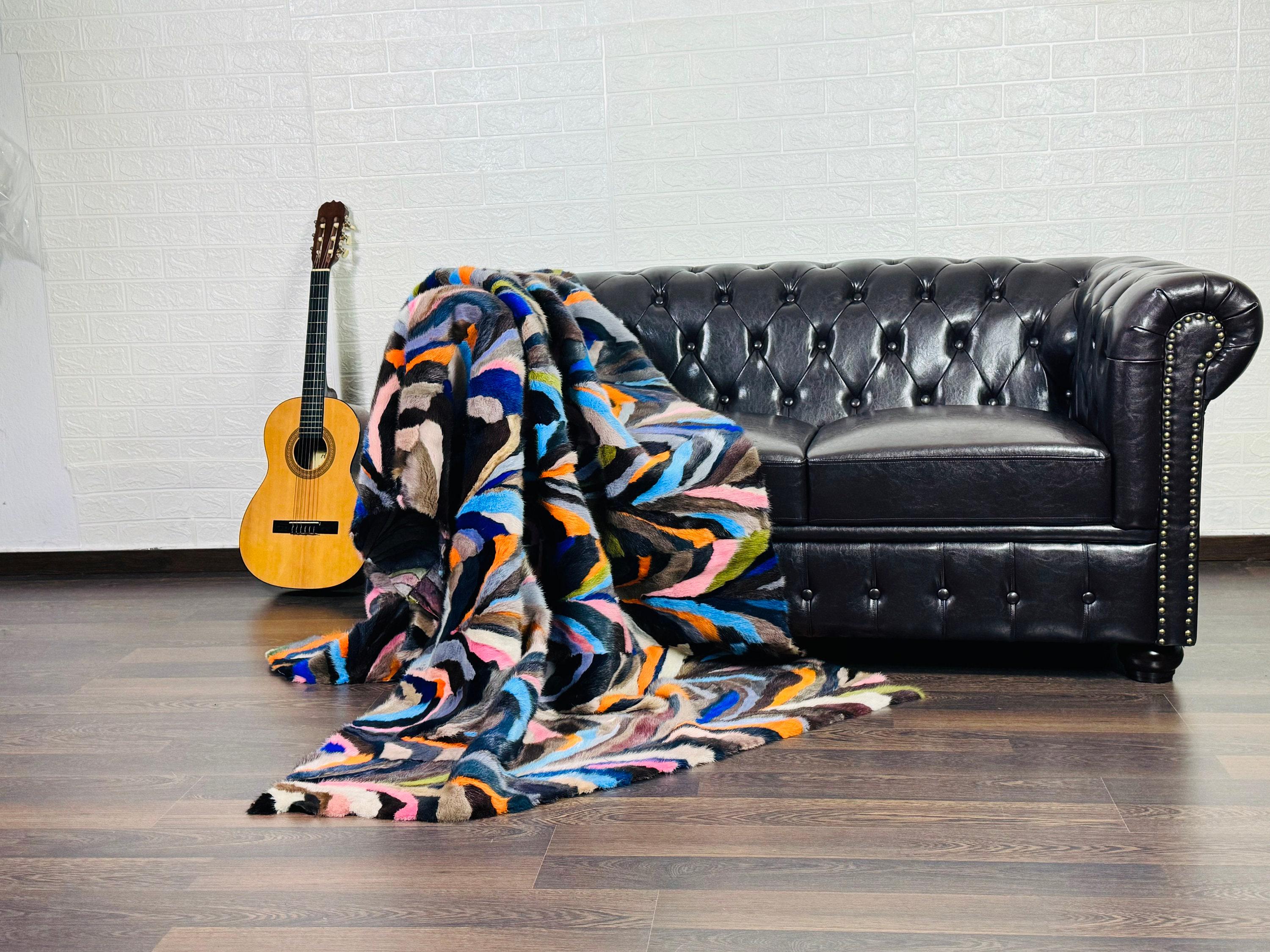 Handmade Mink Fur Throw Blanket Brown Colorful that can be used as a throw as well. Perfect for Bedspread or Sofa Cover.