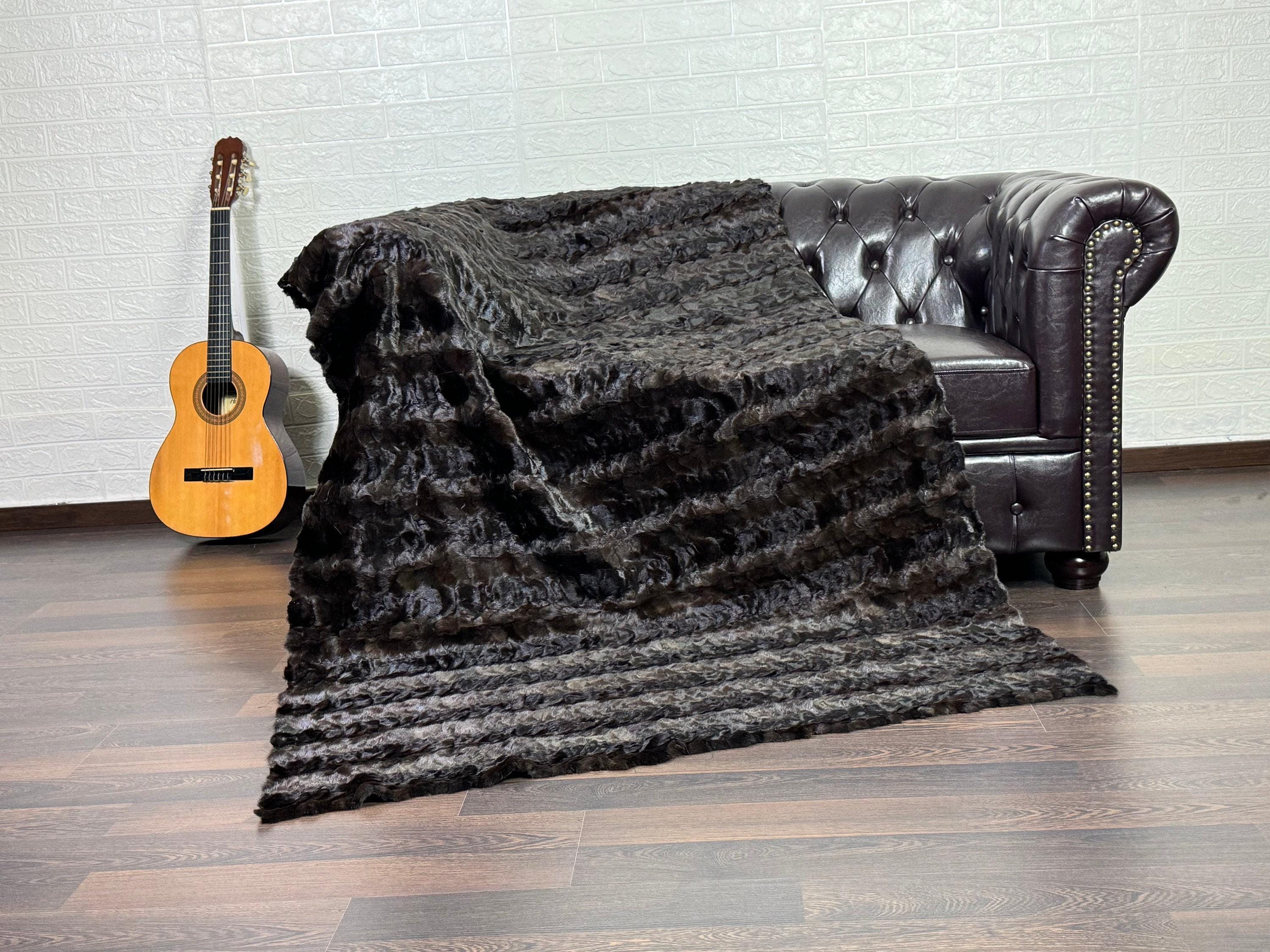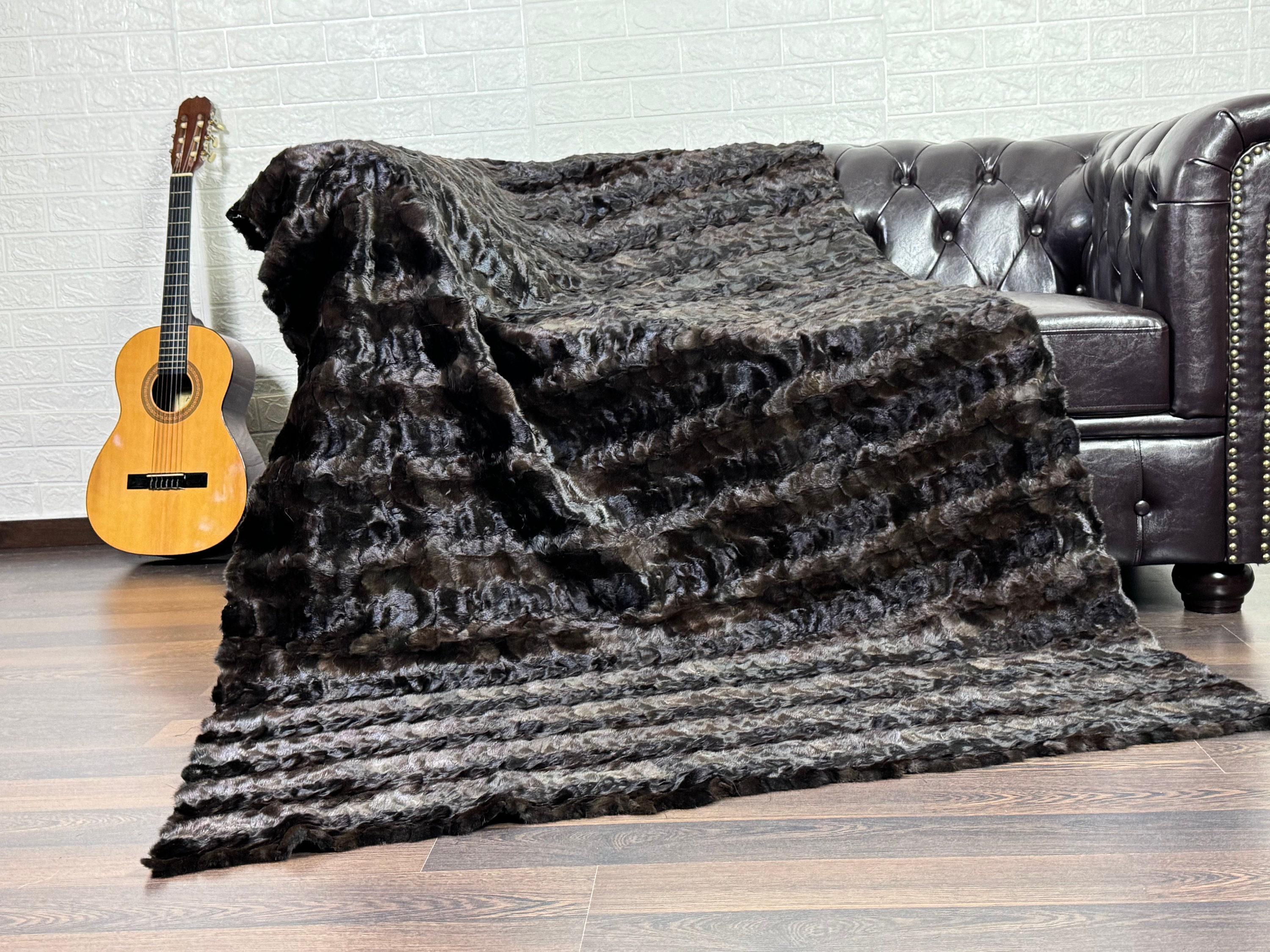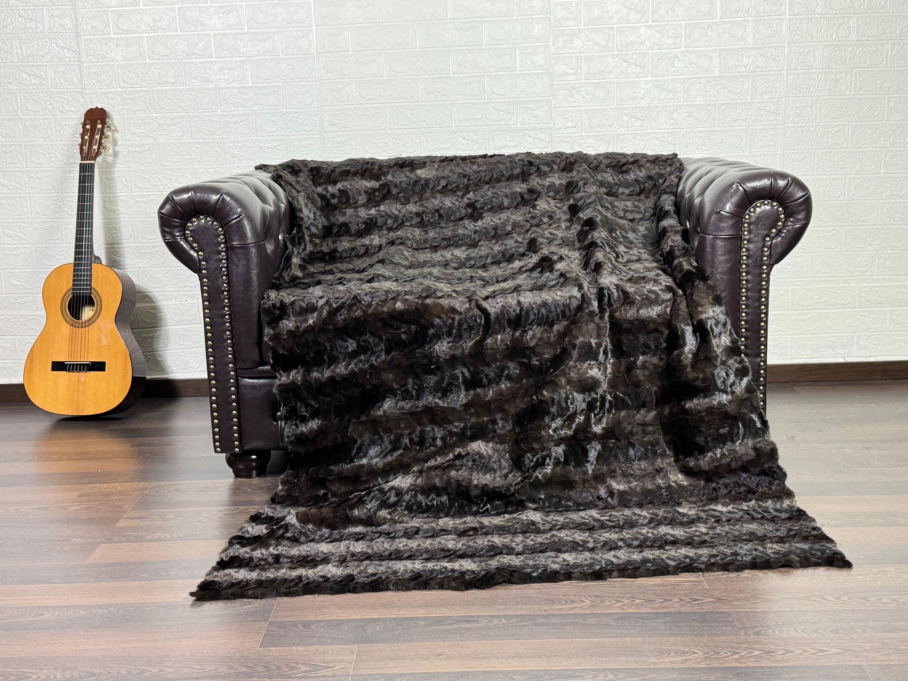 Handmade Mink Fur Throw Blanket Brown that can be used as a throw as well. Perfect for Bedspread or Sofa Cover.