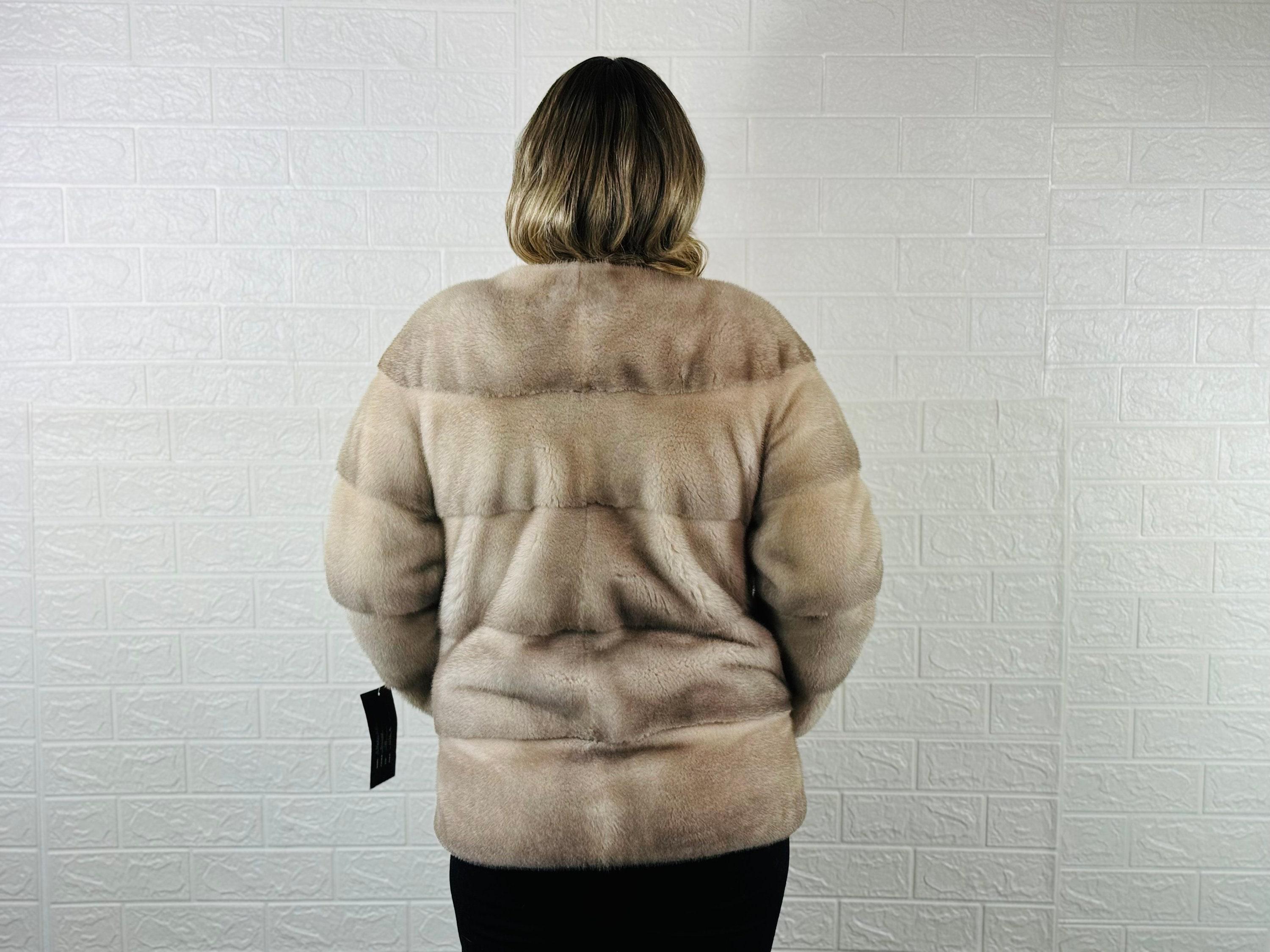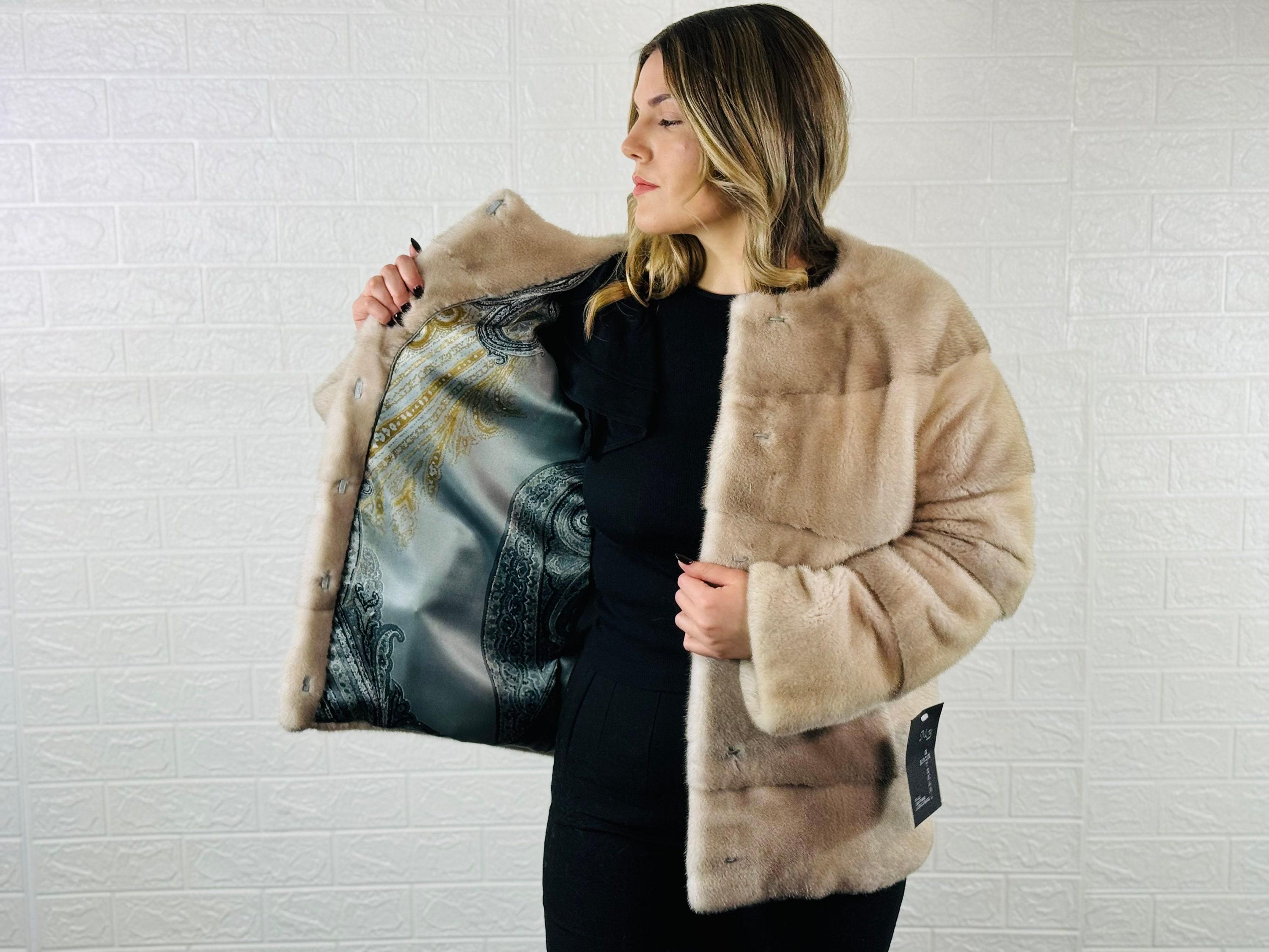 Mink Fur Jacket Bomber from real mink fur pelts of the highest quality in color Beige. Button closure.