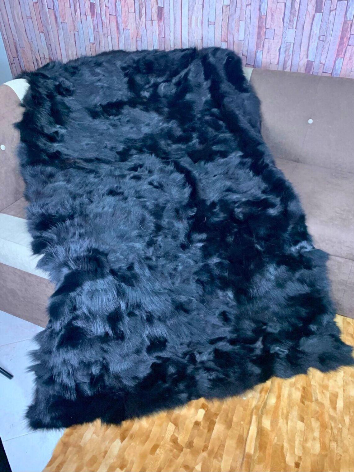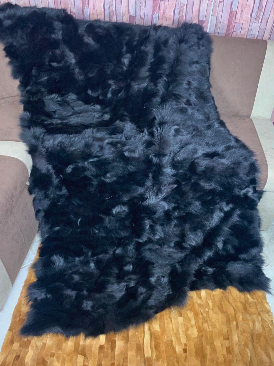 ● 1x Genuine Fox Fur Blanket In Black Colour