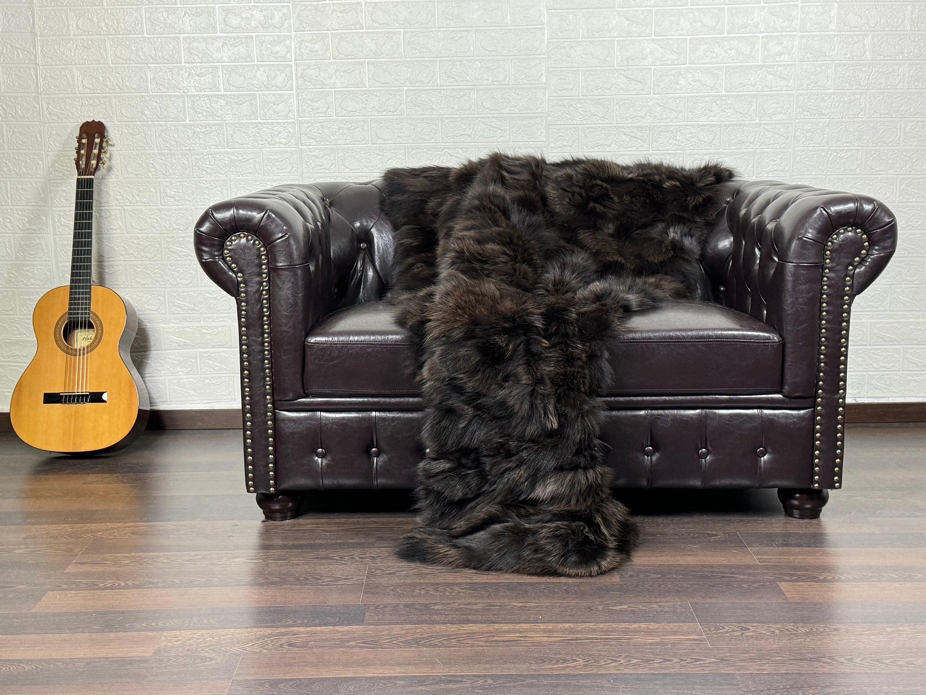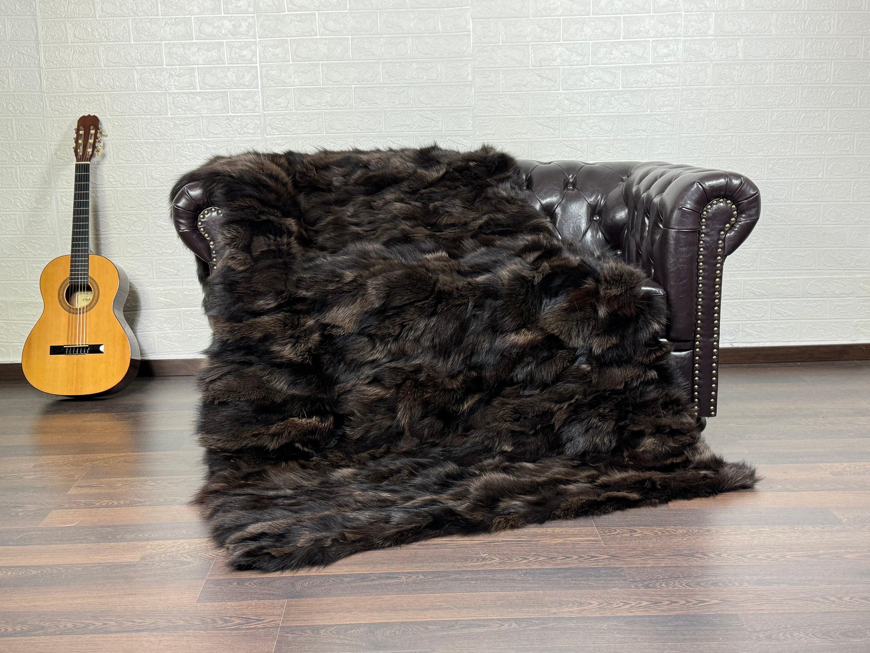 ● 1x Genuine Fox Fur Blanket In Brown Colour