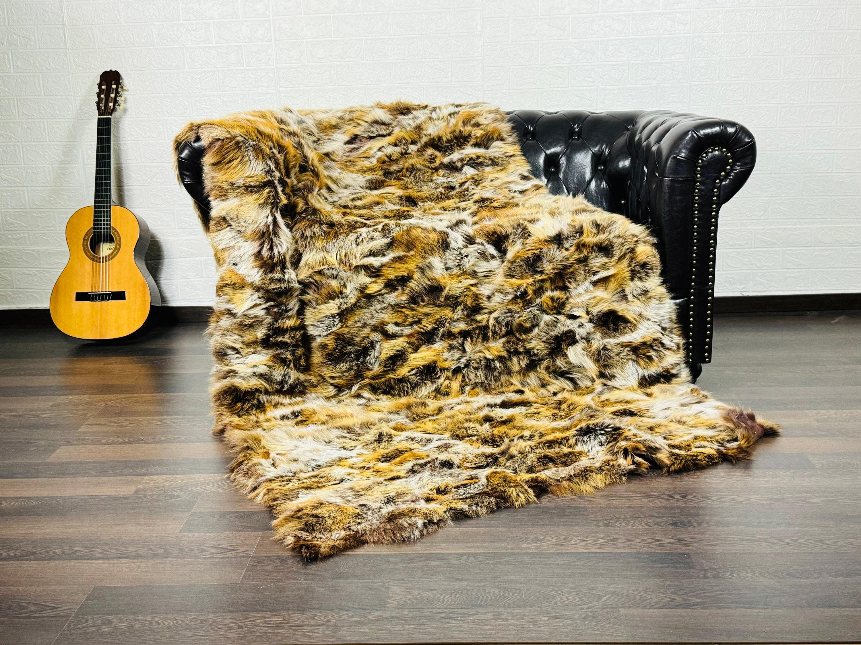 Handmade Real Fox Fur Blanket that can be used as a throw as well. Perfect for Bedspread or Sofa Cover.