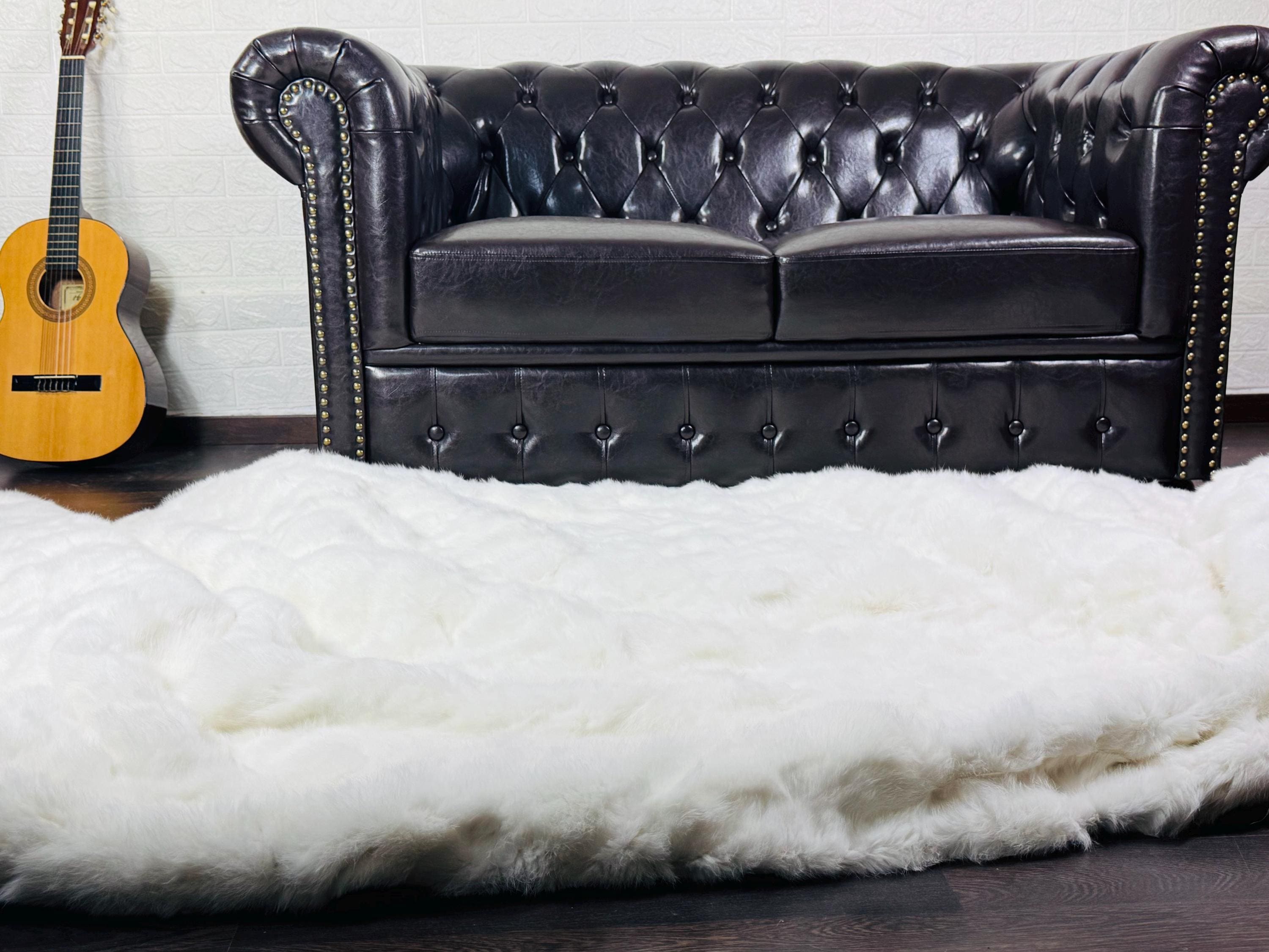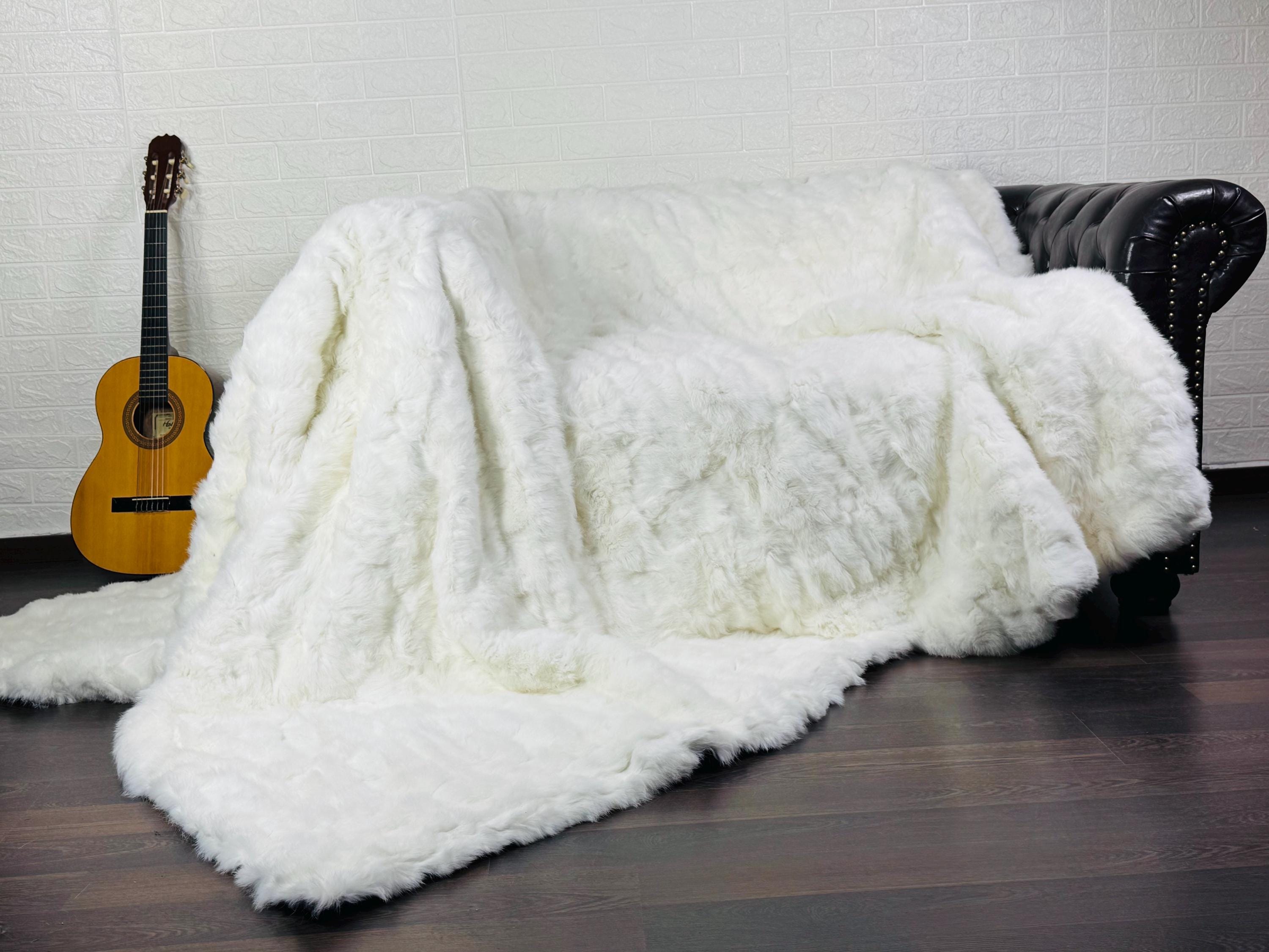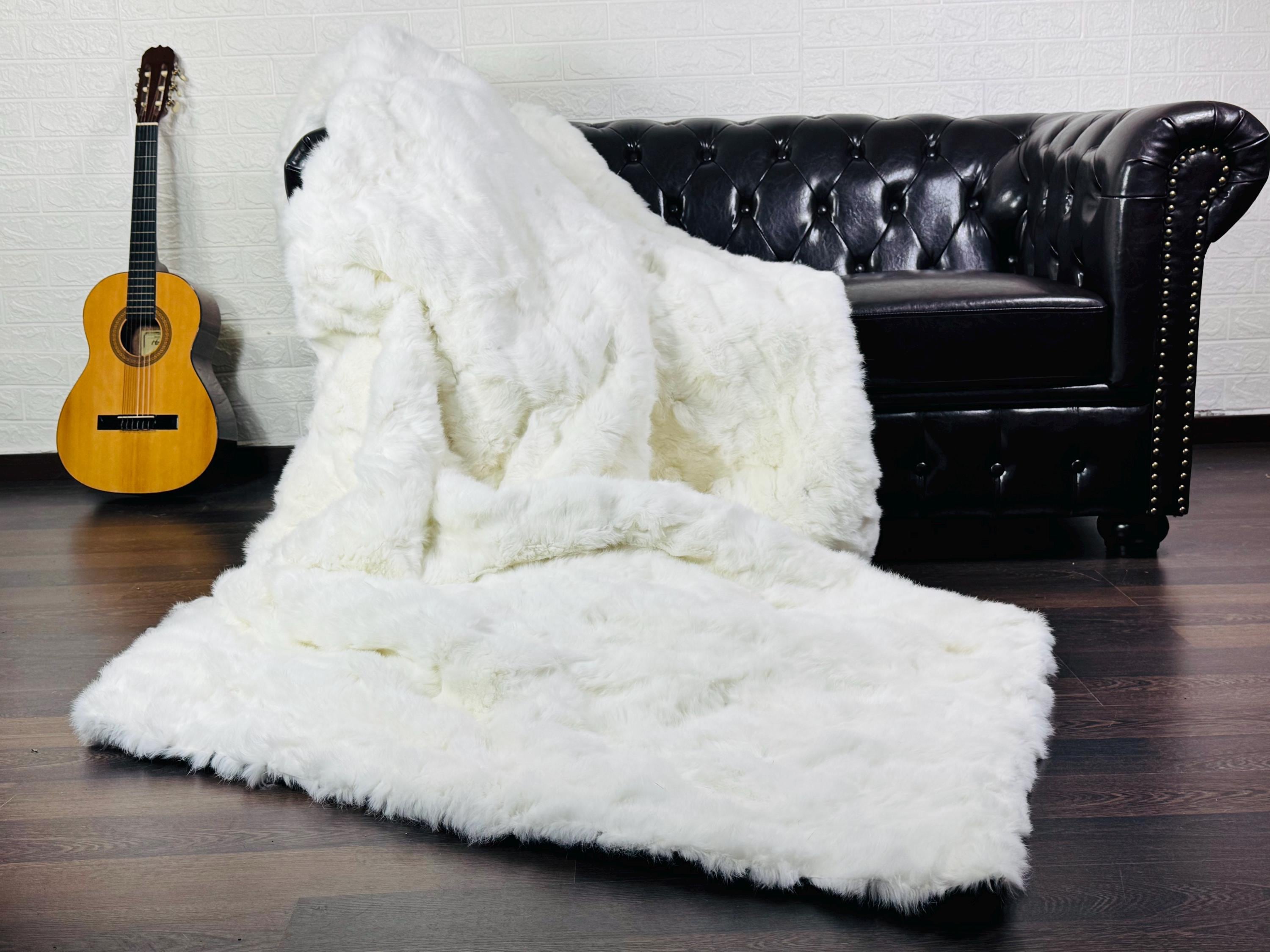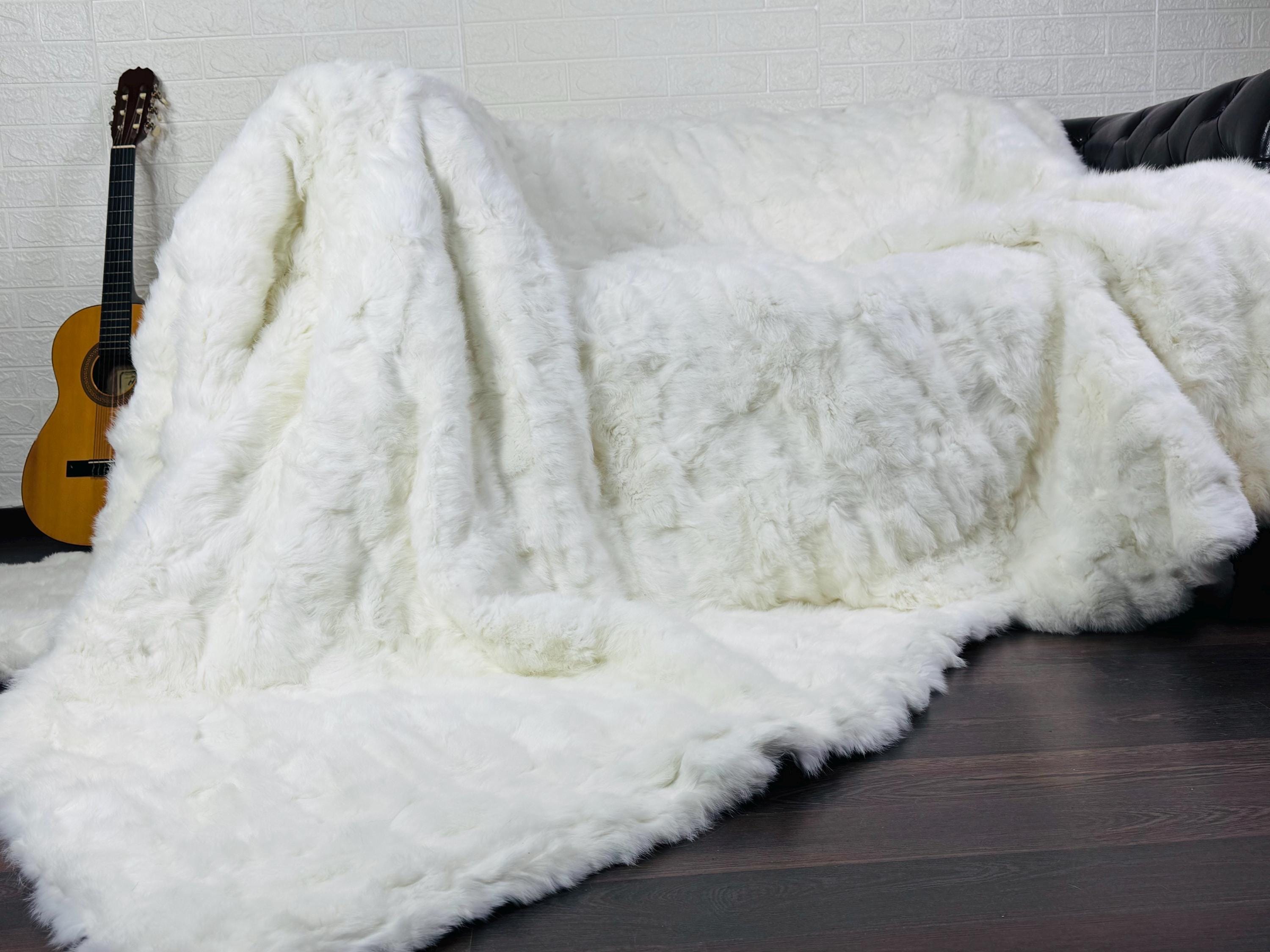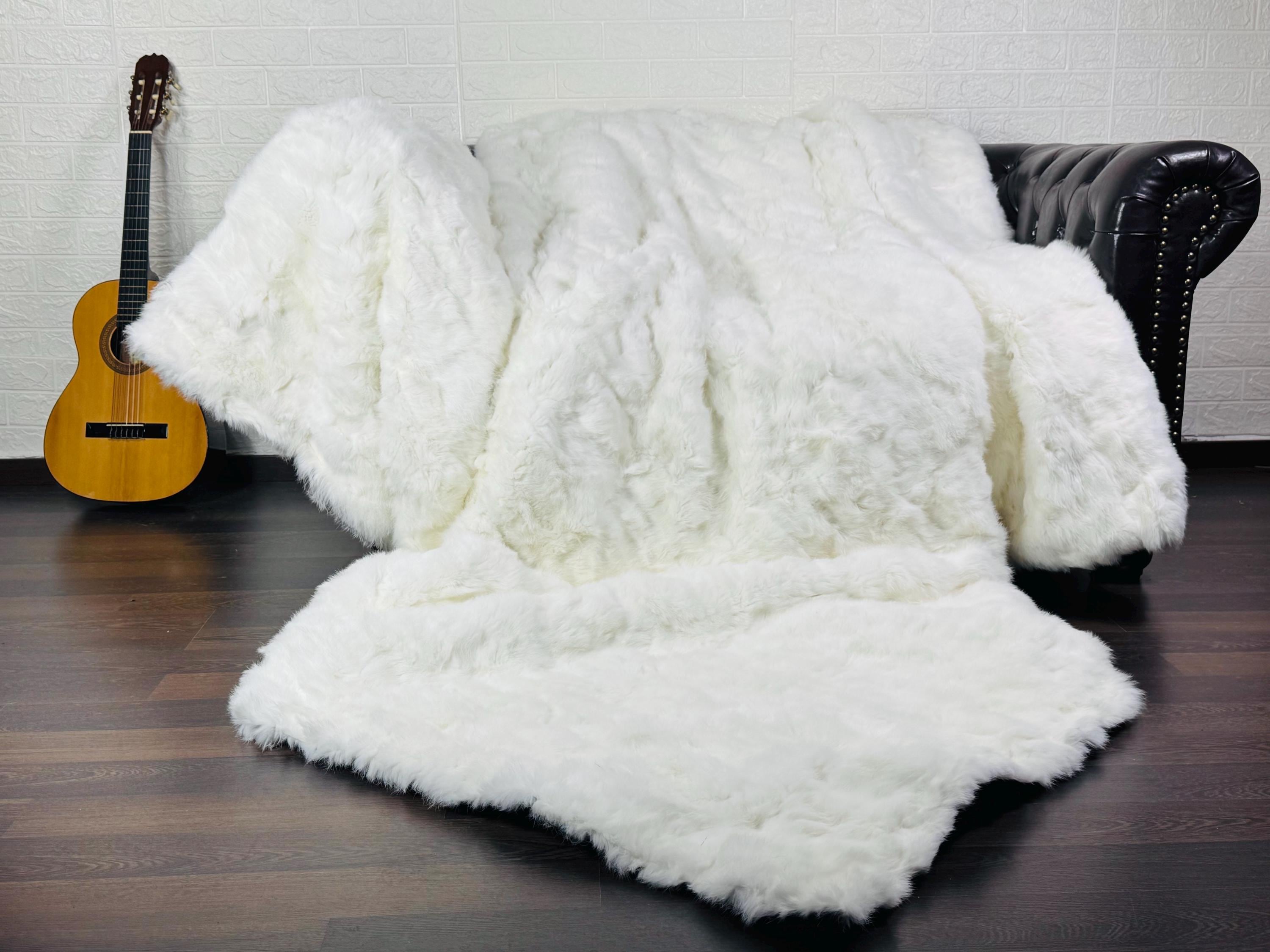 ✨ EXCLUSIVE REAL WHITE RABBIT FUR THROW BLANKET / LARGE AREA RUG – ETHICALLY & ORGANICALLY FARMED, SCANDINAVIAN DECOR