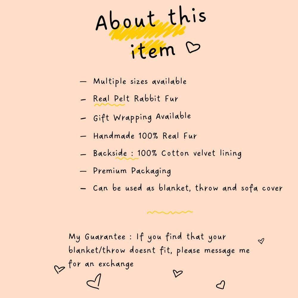 Handmade Real White Yellow Pelt Rabbit of the hightest quality Fur Blanket that can be used as a throw as well. Perfect for Bedspread or Sofa Cover.