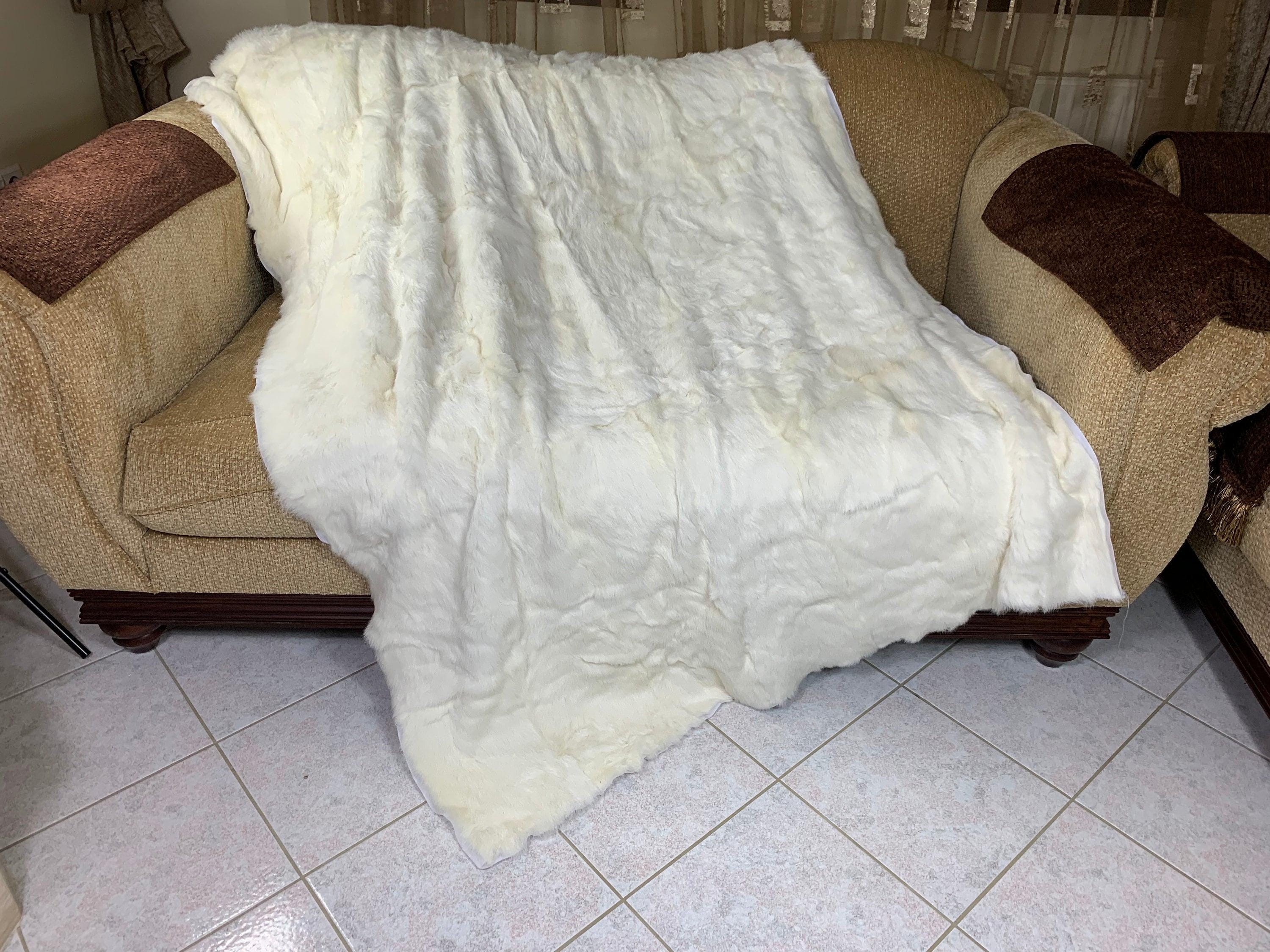 Lovingly crafted by hand, this real pelt rabbit fur blanket throw was created with chilly days in mind.