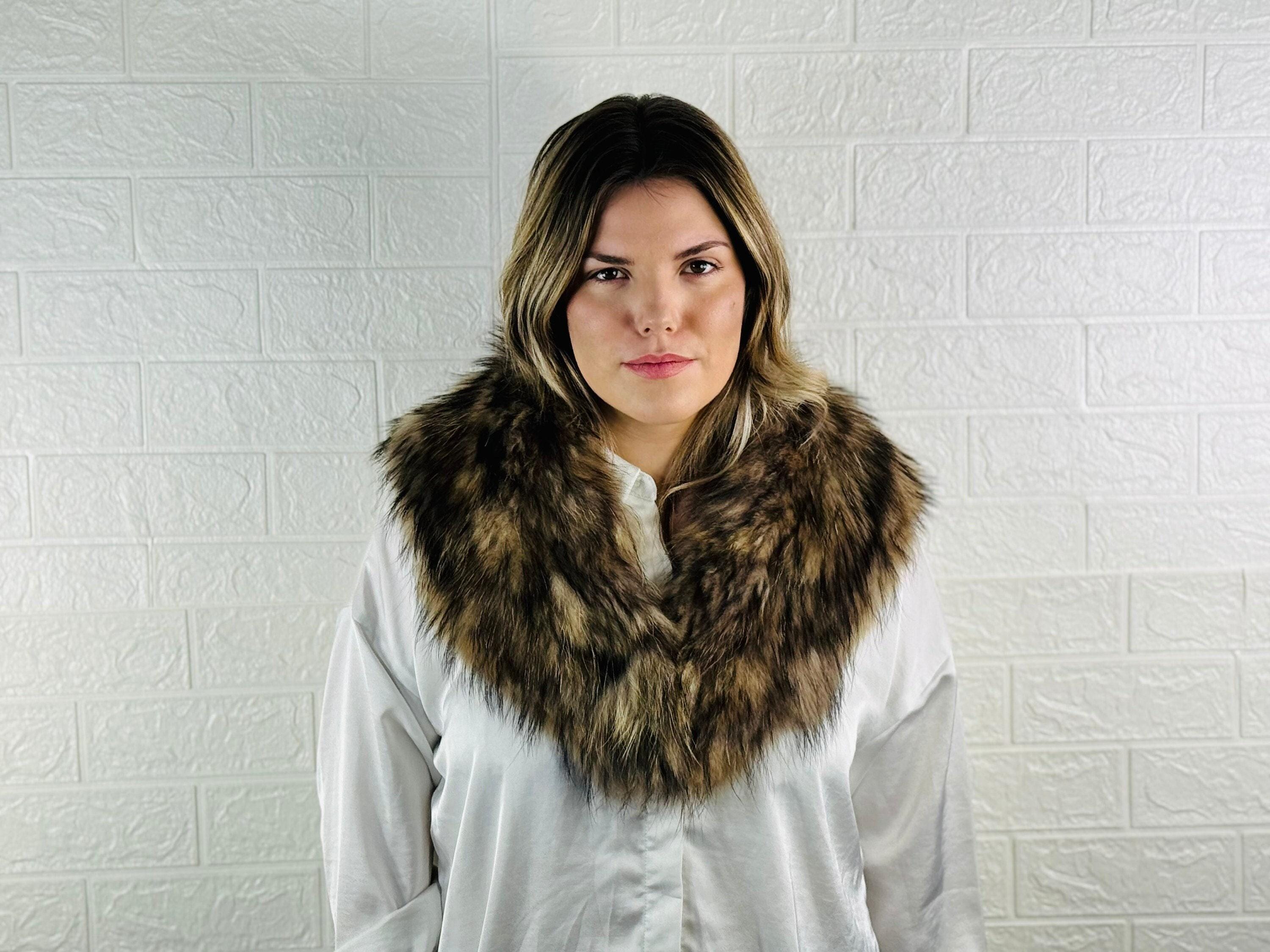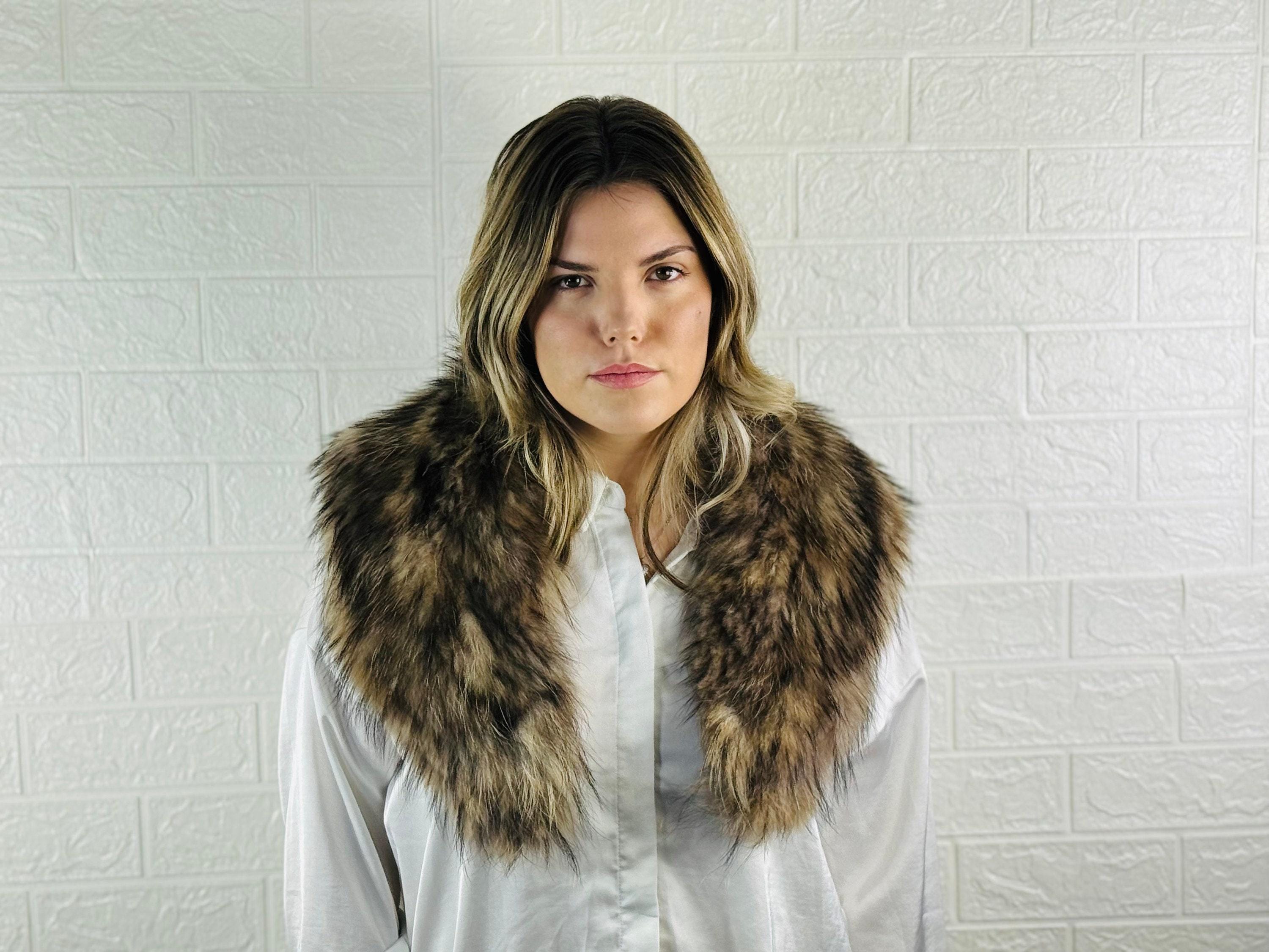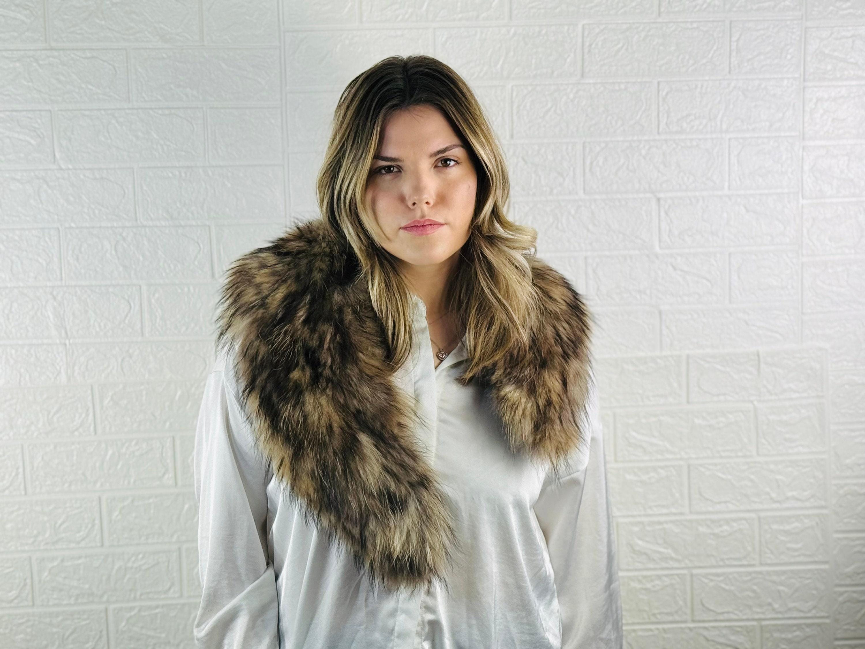 Premium Quality: This finn raccoon fur collar is made from genuine, high-quality fin raccoon fur that is soft, plush, and incredibly warm. It's a statement piece that will keep you cozy in style.