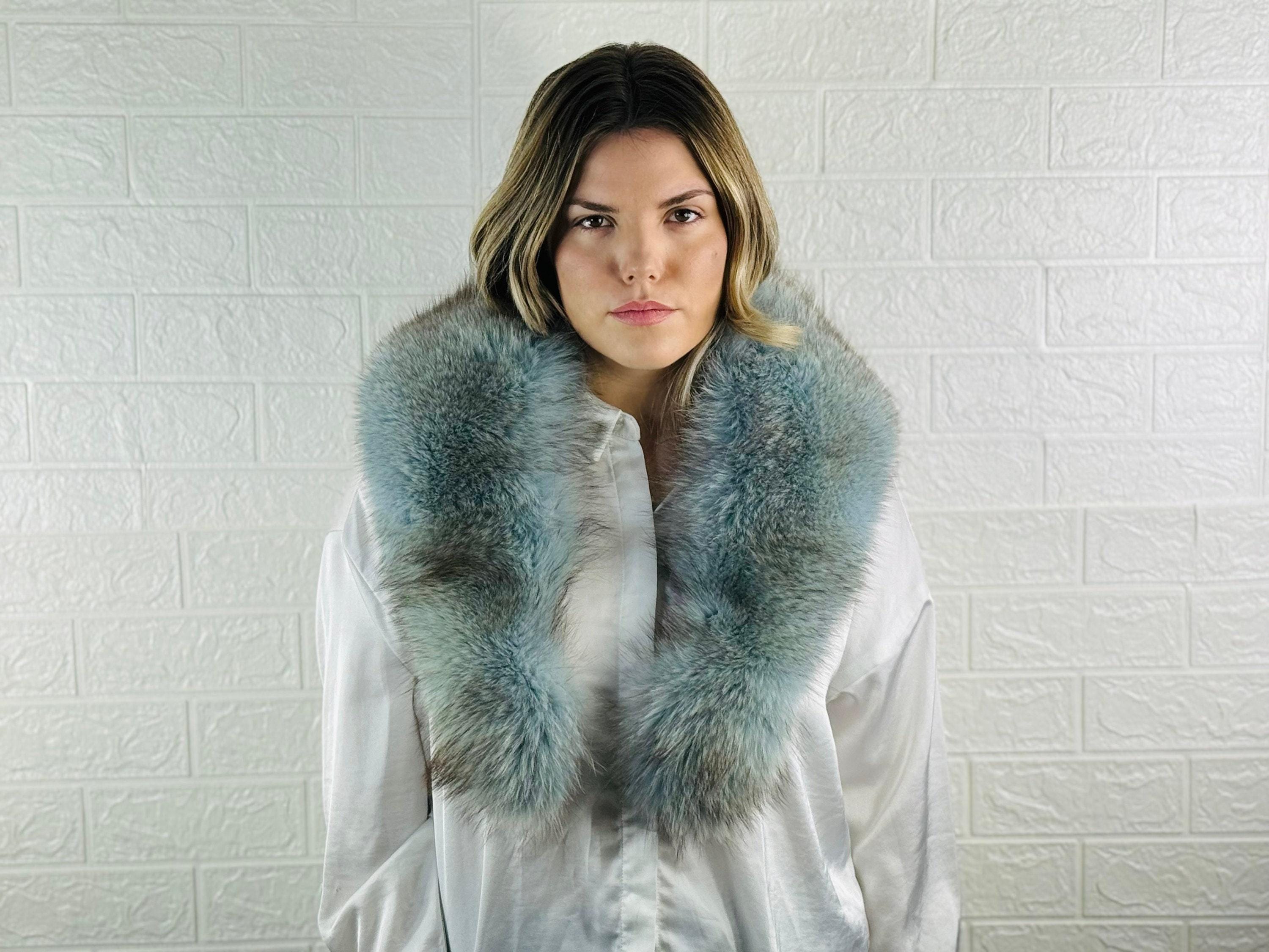 GORGEOUS Fox Fur Collar Light Blue of Real Fox Pelt Skin of the finest quality in the market