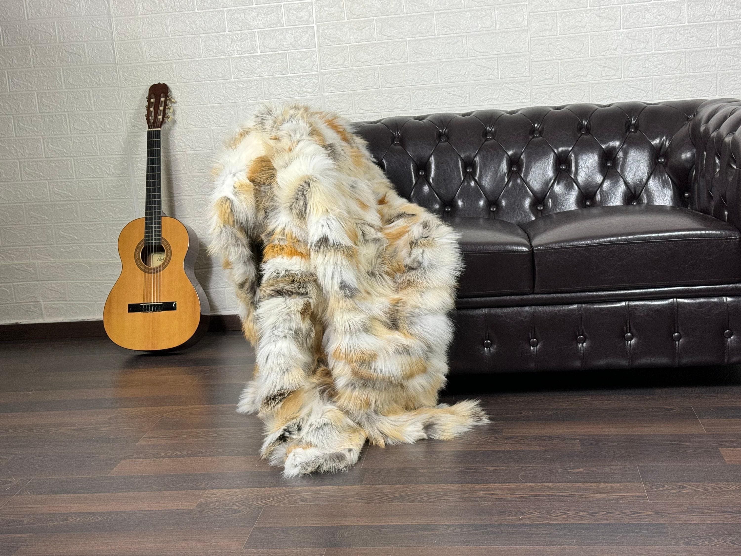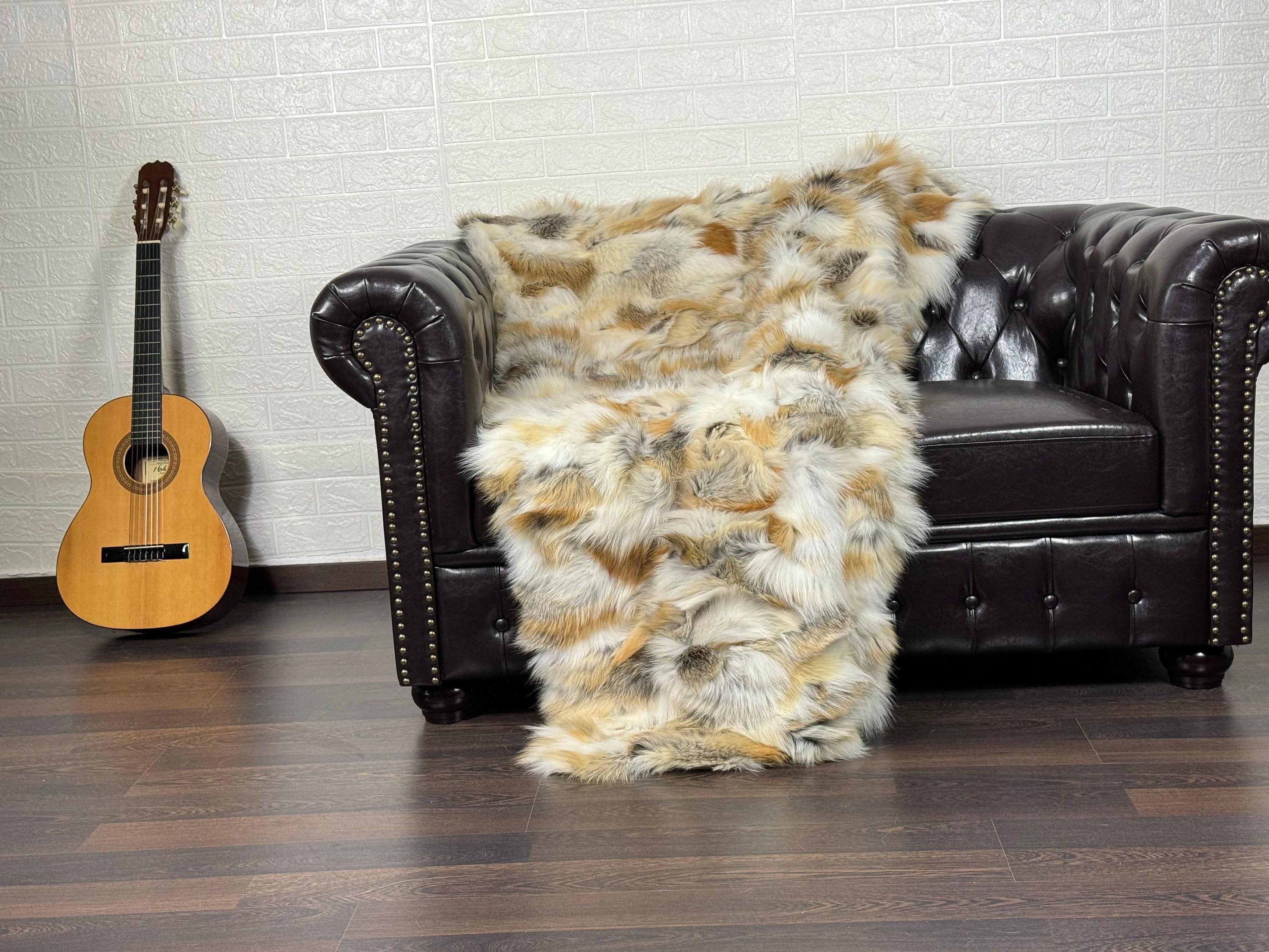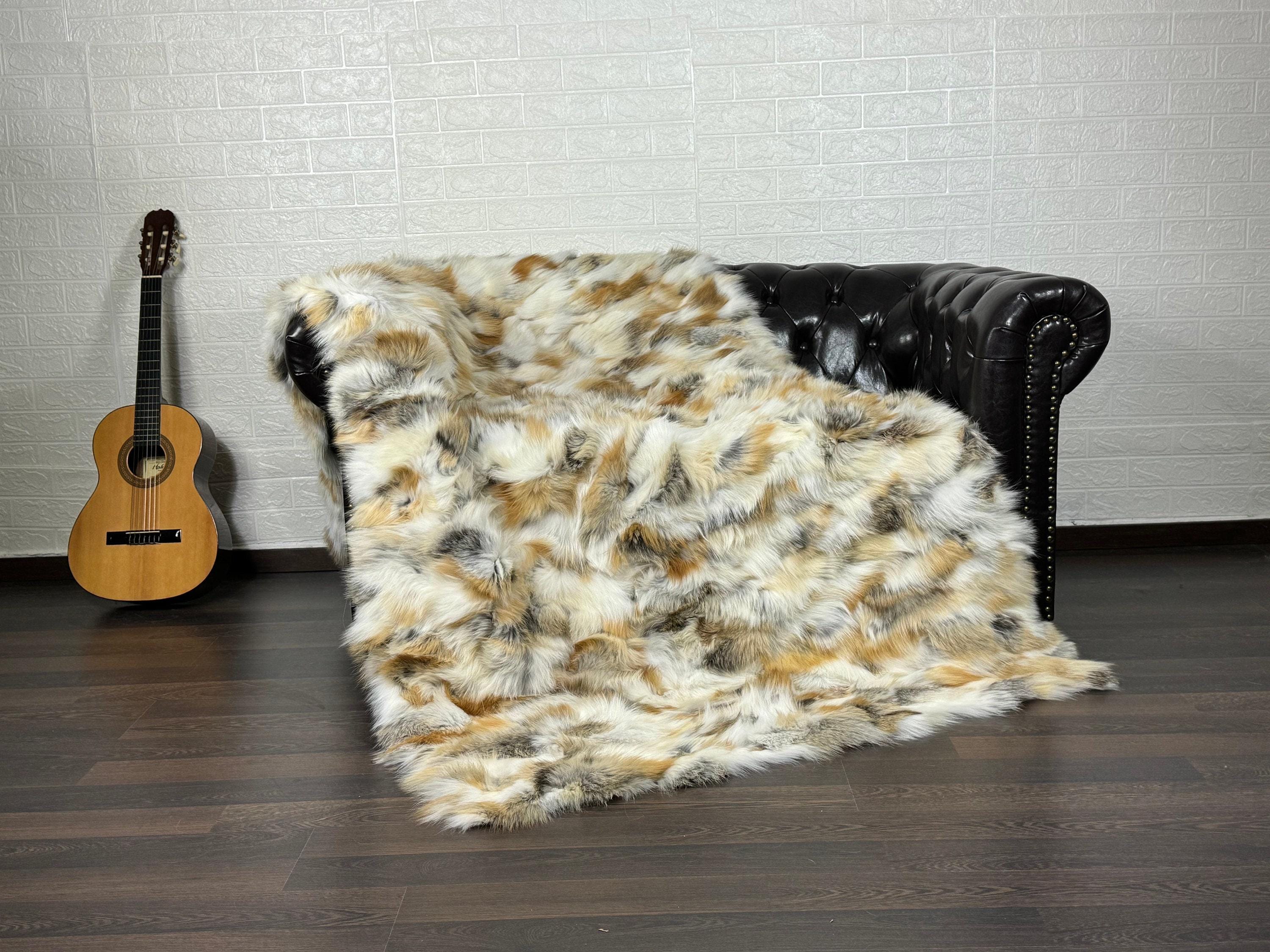 Handmade Real Golden Fox Fur Blanket that can be used as a throw as well. Perfect for Bedspread or Sofa Cover.
