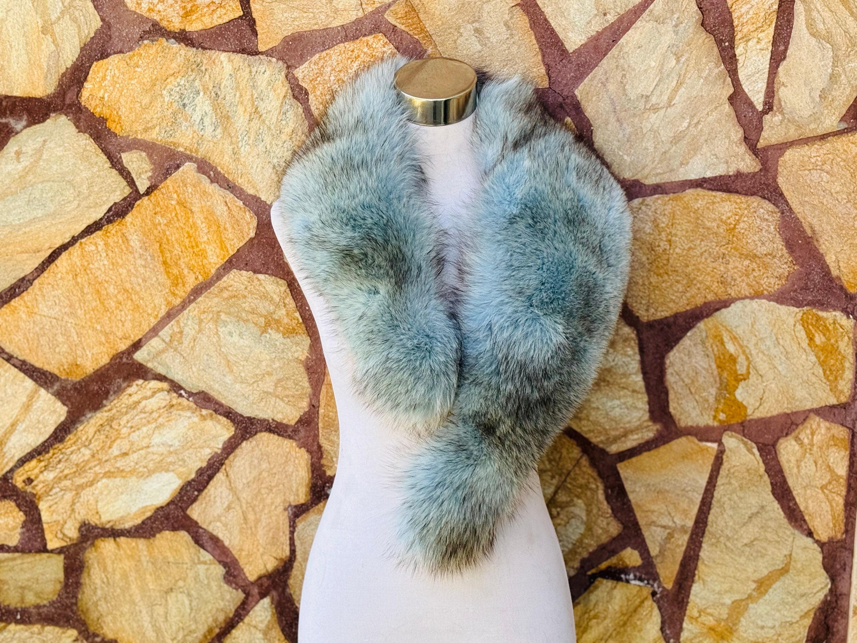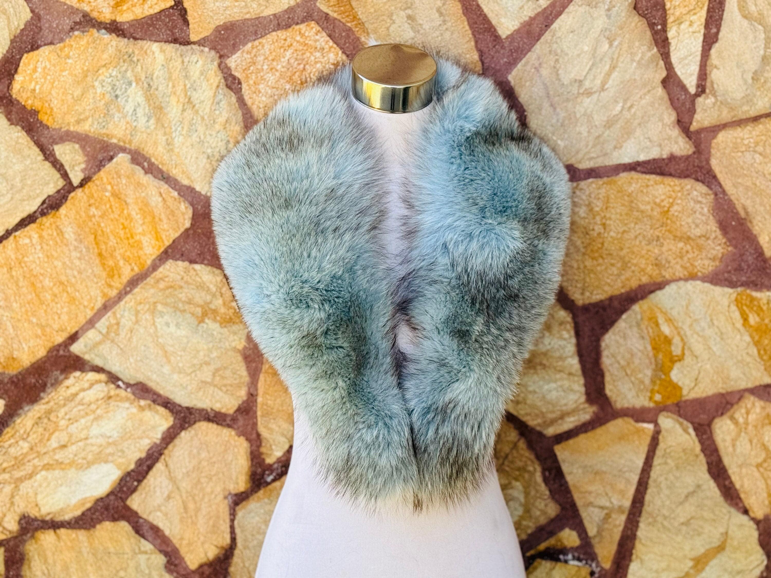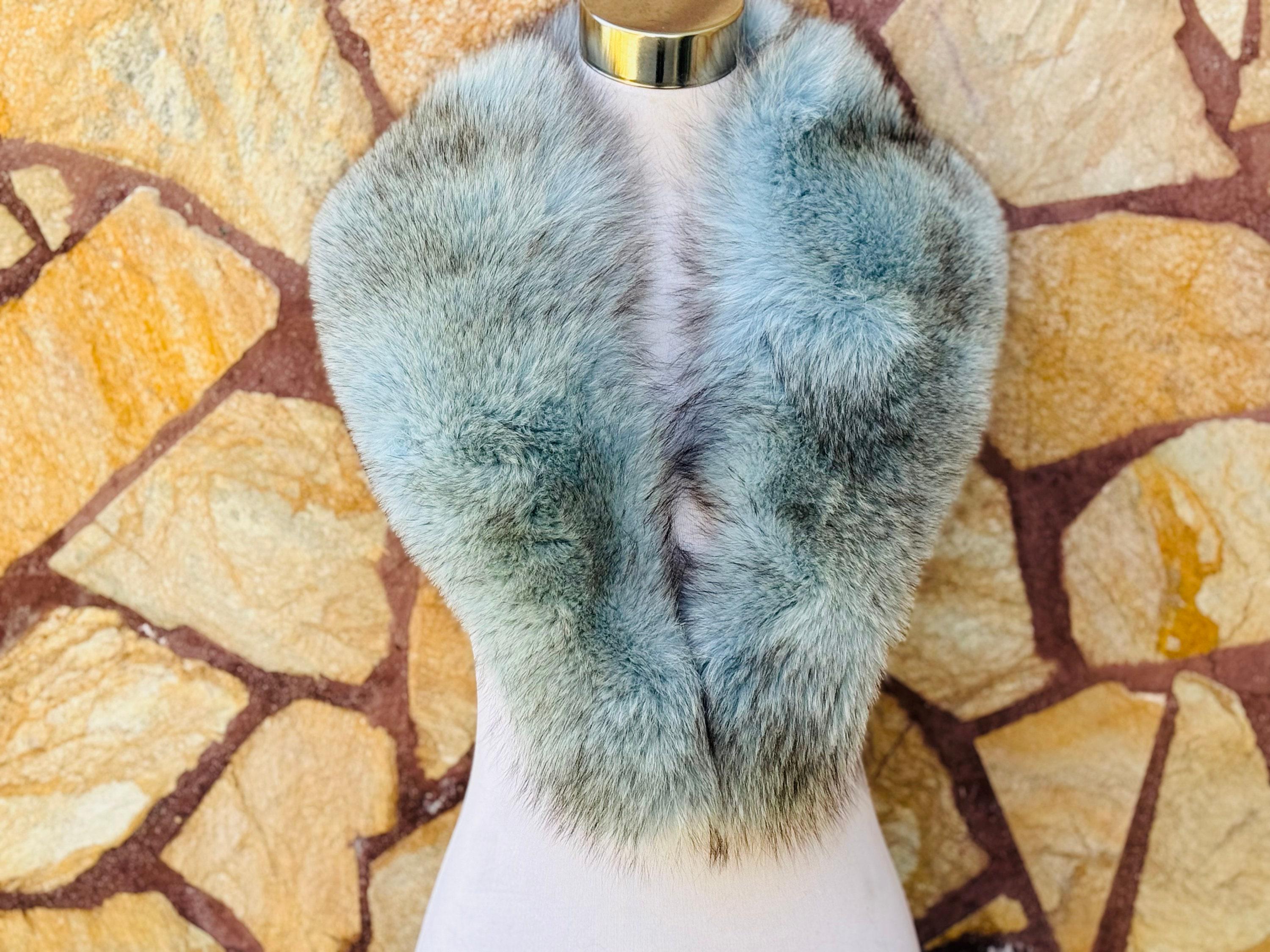 GORGEOUS Fox Fur Collar Light Blue of Real Fox Pelt Skin of the finest quality in the market
