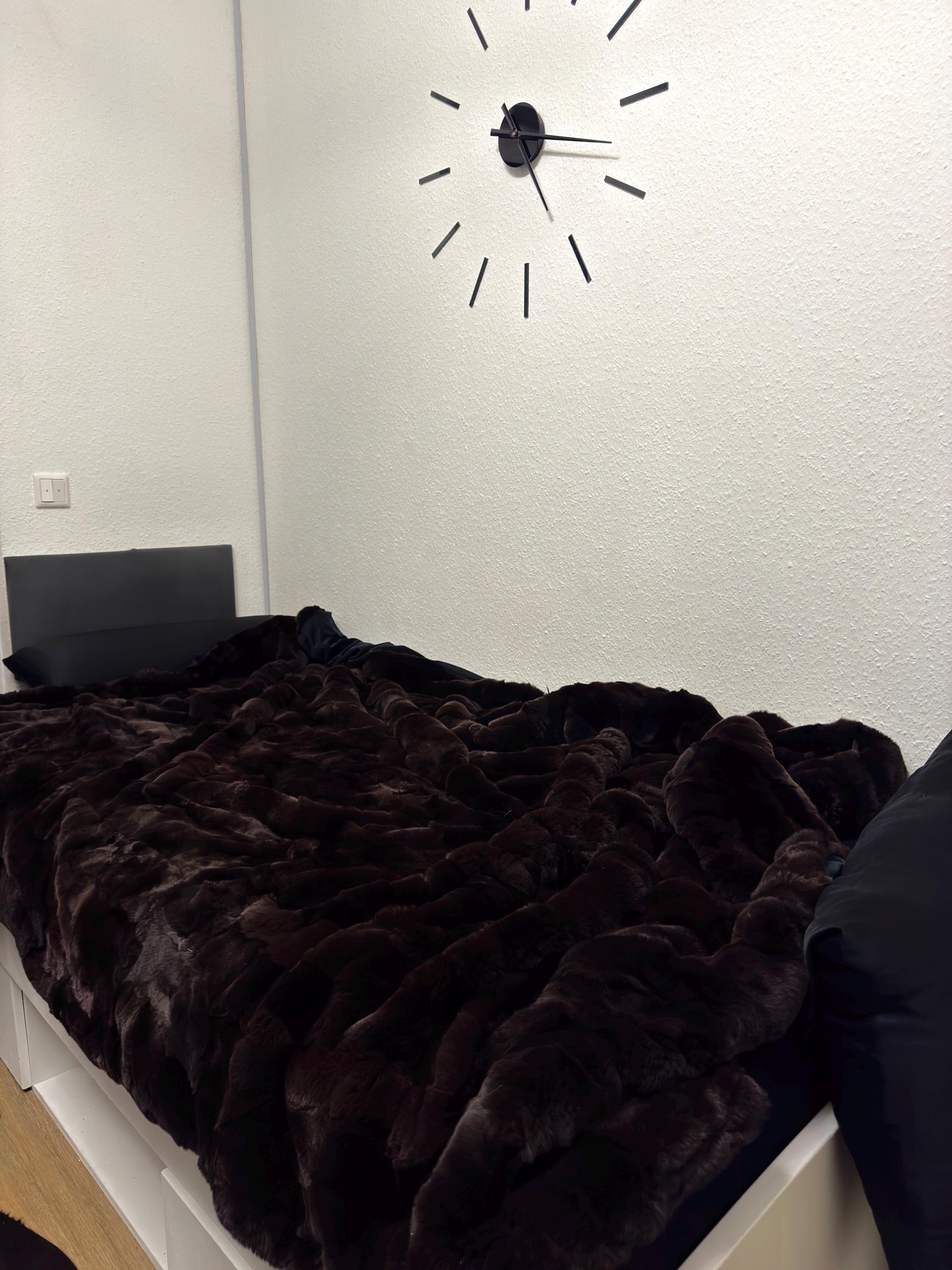 ● 1x Genuine Rex Rabbit Fur Blanket In Dark Brown Colour