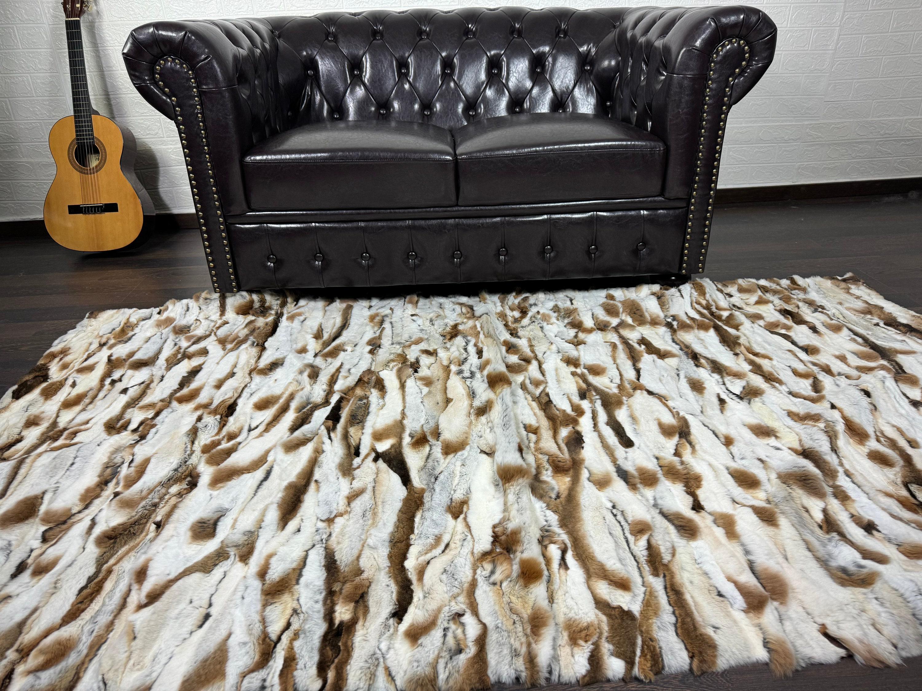 Handmade Real Rex Rabbit Fur Blanket that can be used as a throw as well. Perfect for Bedspread or Sofa Cover.