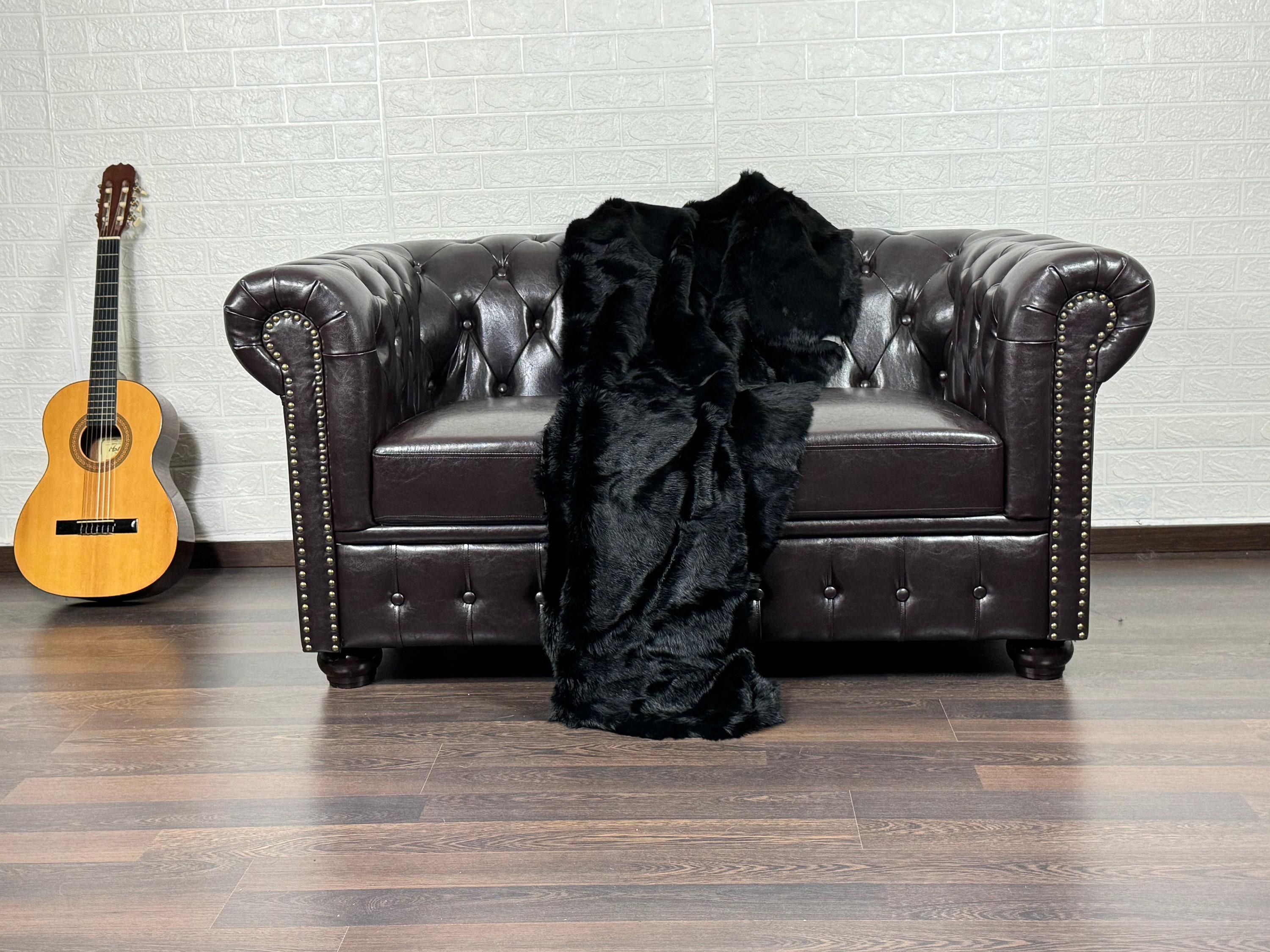 ● 1x Genuine Pelt Rabbit Fur Blanket In Black Colour