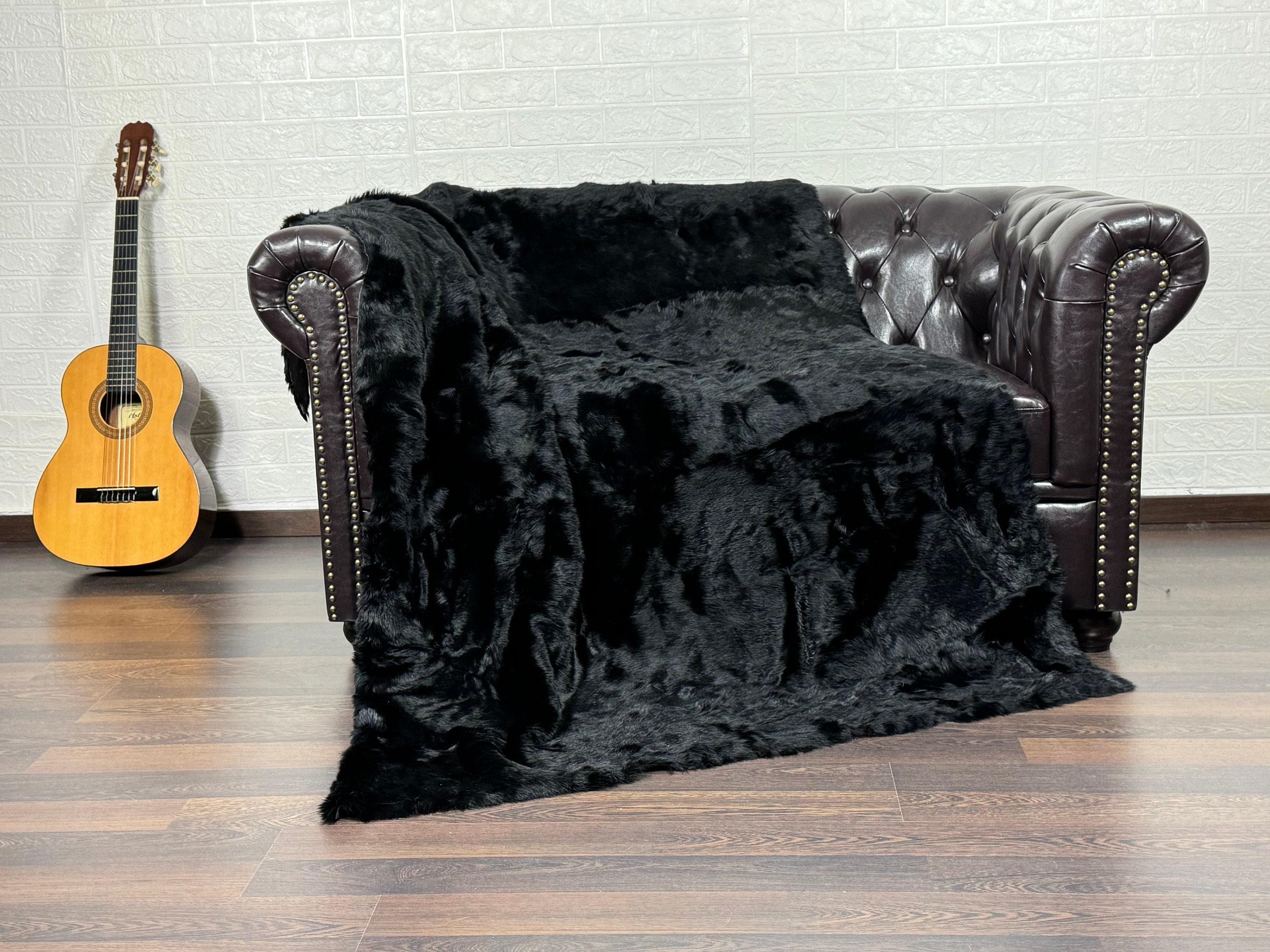 This black rabbit fur throw blanket is crafted from 100% genuine rabbit fur, creating a luxurious real fur throw that brings warmth, texture, and depth to any interior. Designed as a statement piece for luxury home decor, the natural movement of rabbit fur creates a surface that shifts with the light and feels extraordinarily soft to the touch.