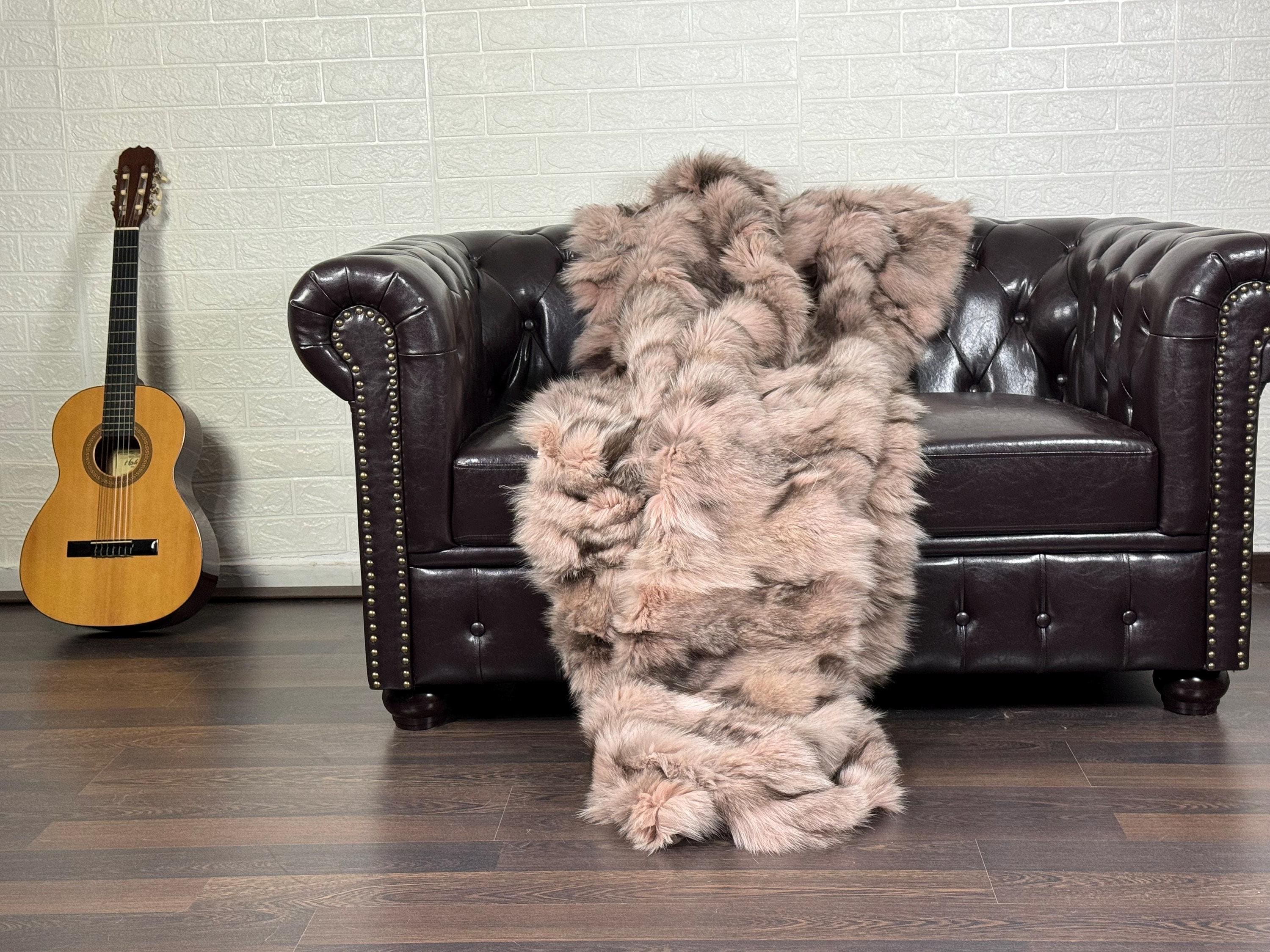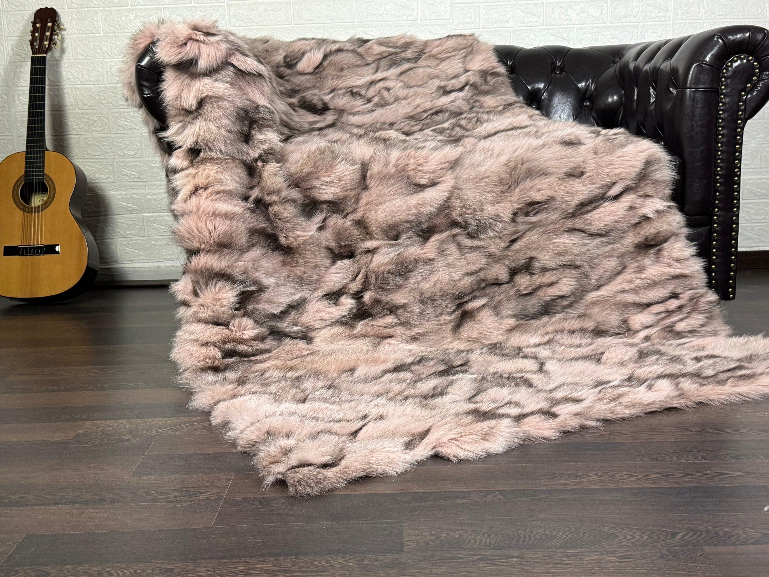 Real Pink Fur Blanket • Personalized Fox Fur Blanket Throw • Handmade Genuine Fur Blanket • Fur Bedspread n Sofa Cover