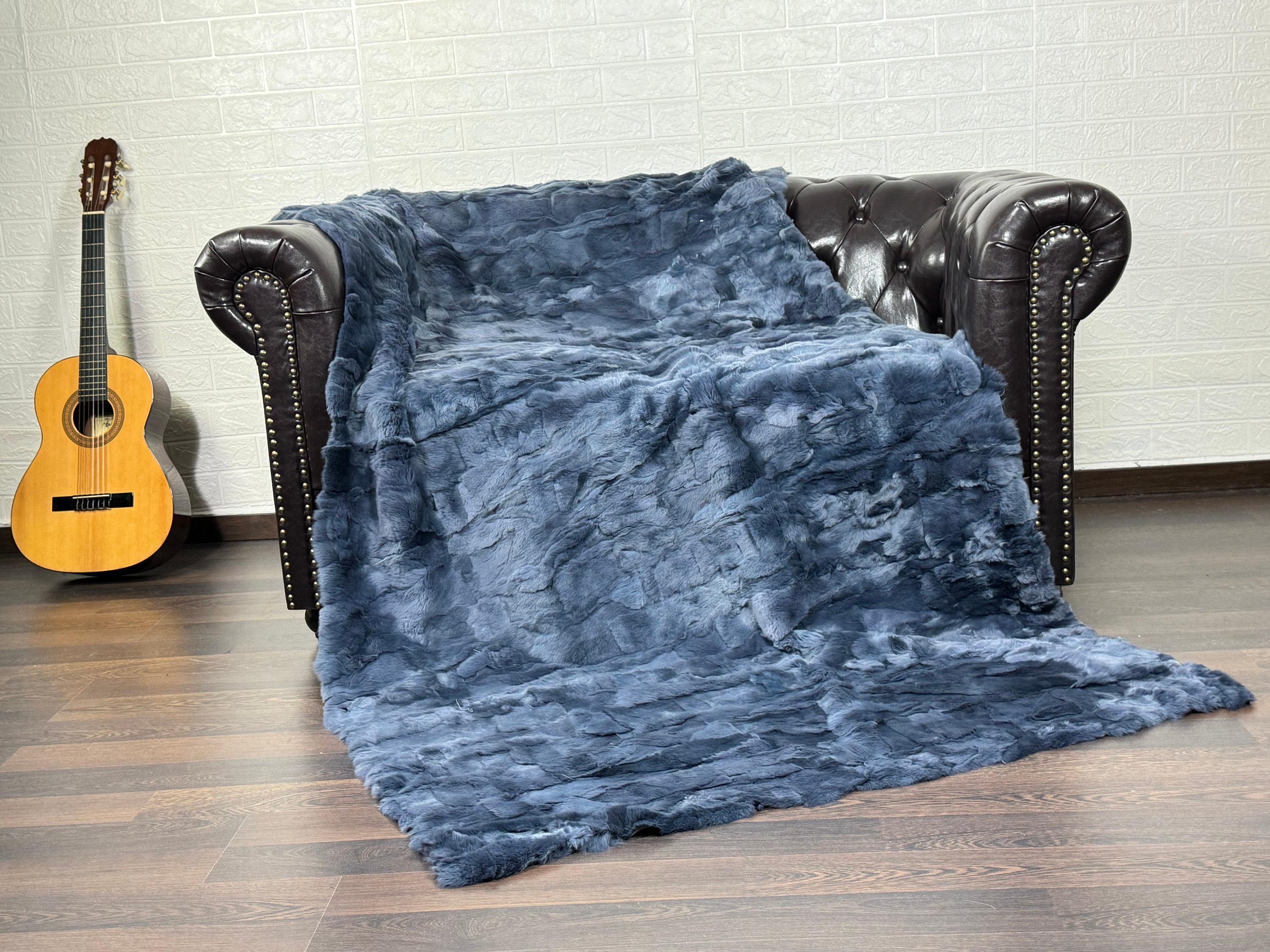 ● 1x Genuine Rex Rabbit Fur Blanket In Blue