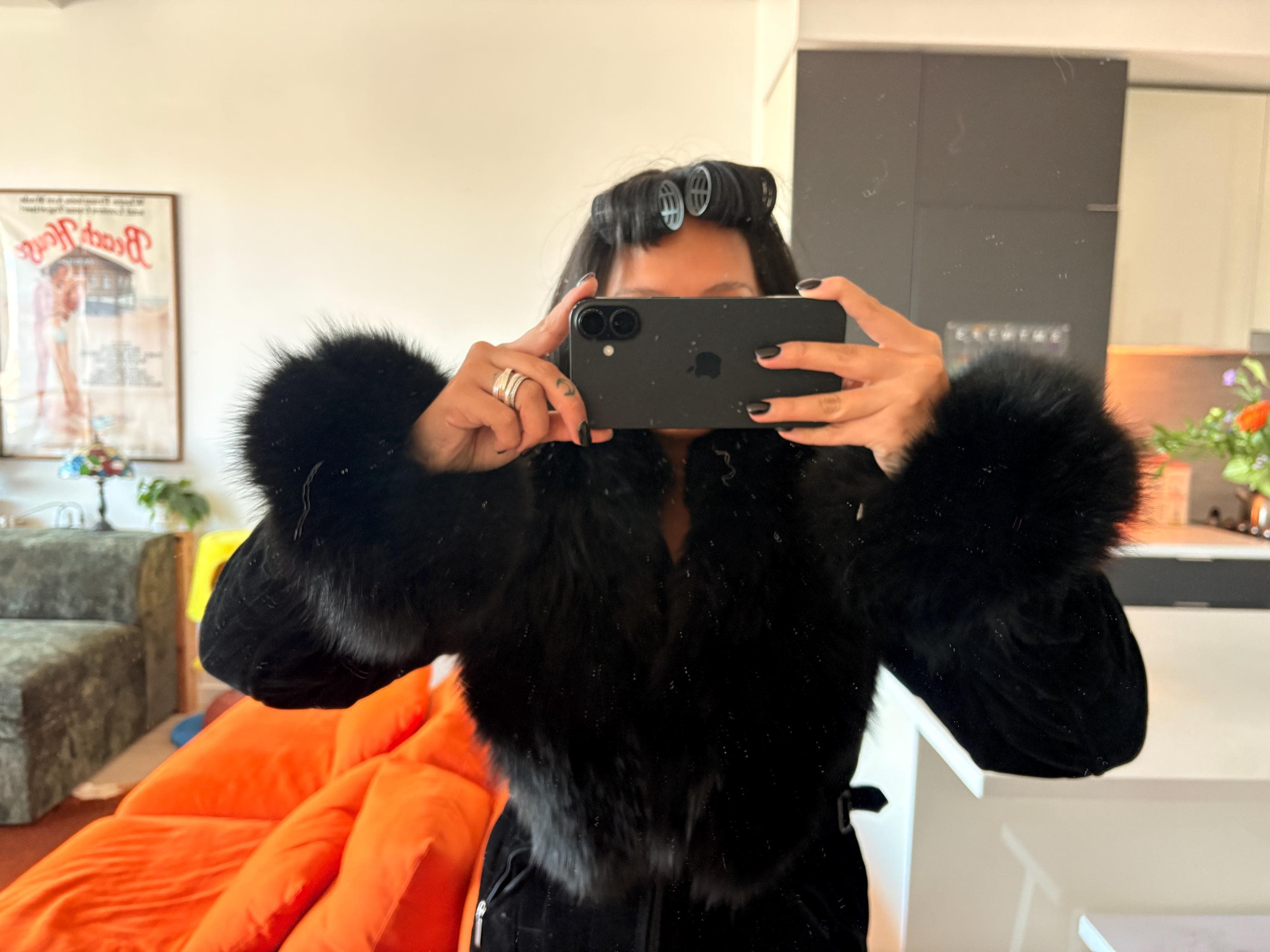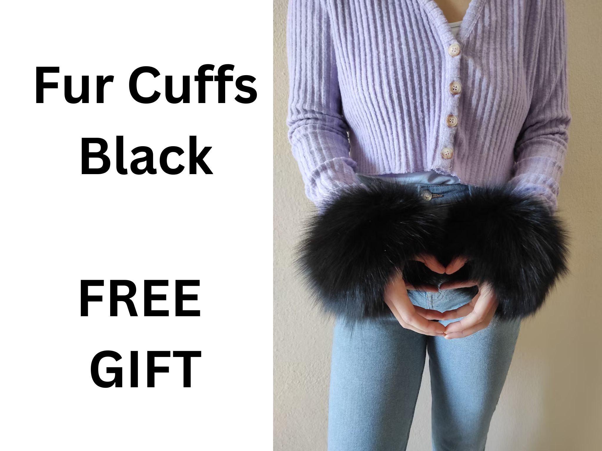 Fox Fur Collar Black + Fur Cuffs Black free gift (Fur Cuffs original cost 50$)
