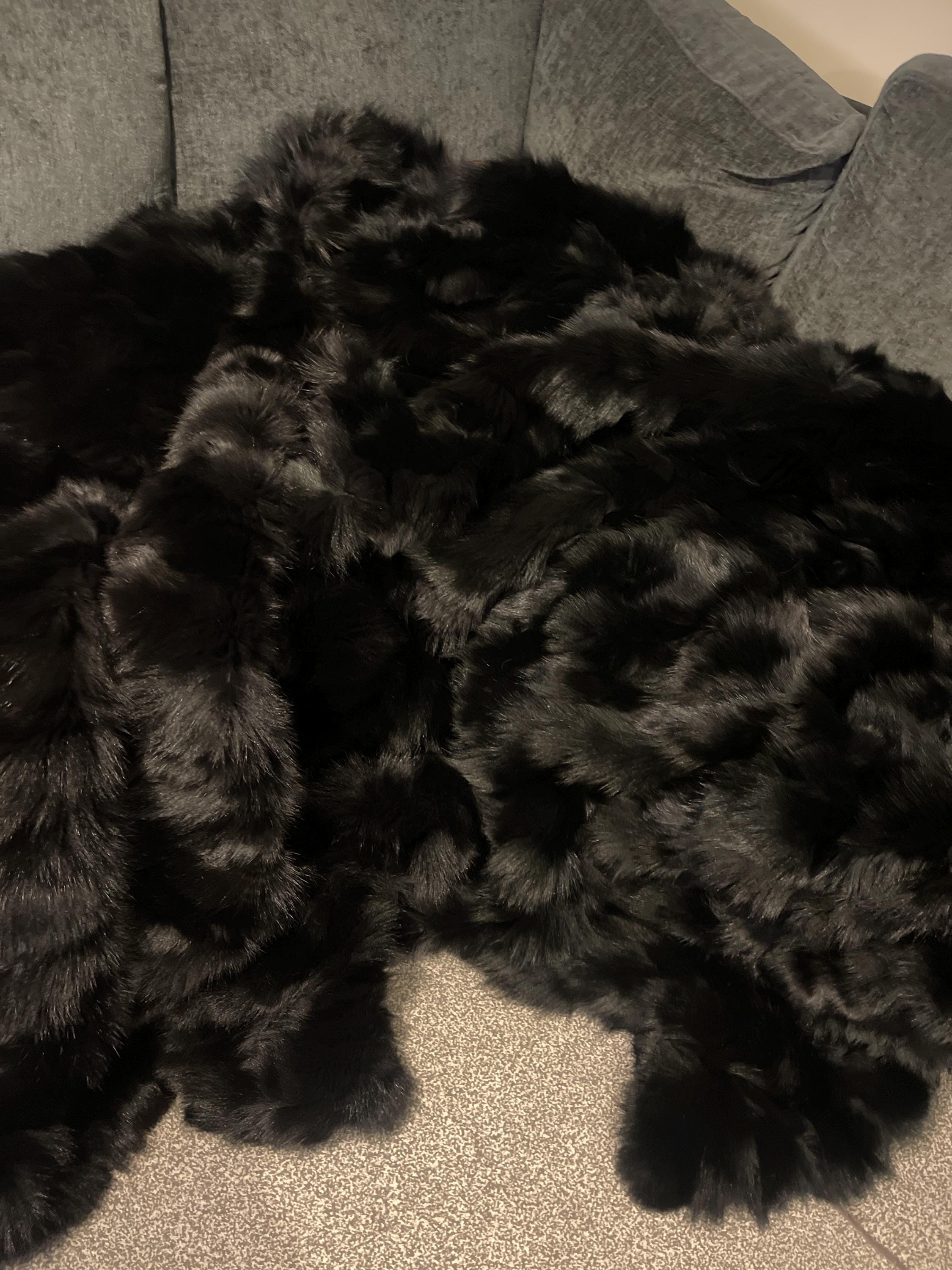 ● 1x Genuine Fox Fur Fur Blanket In Black