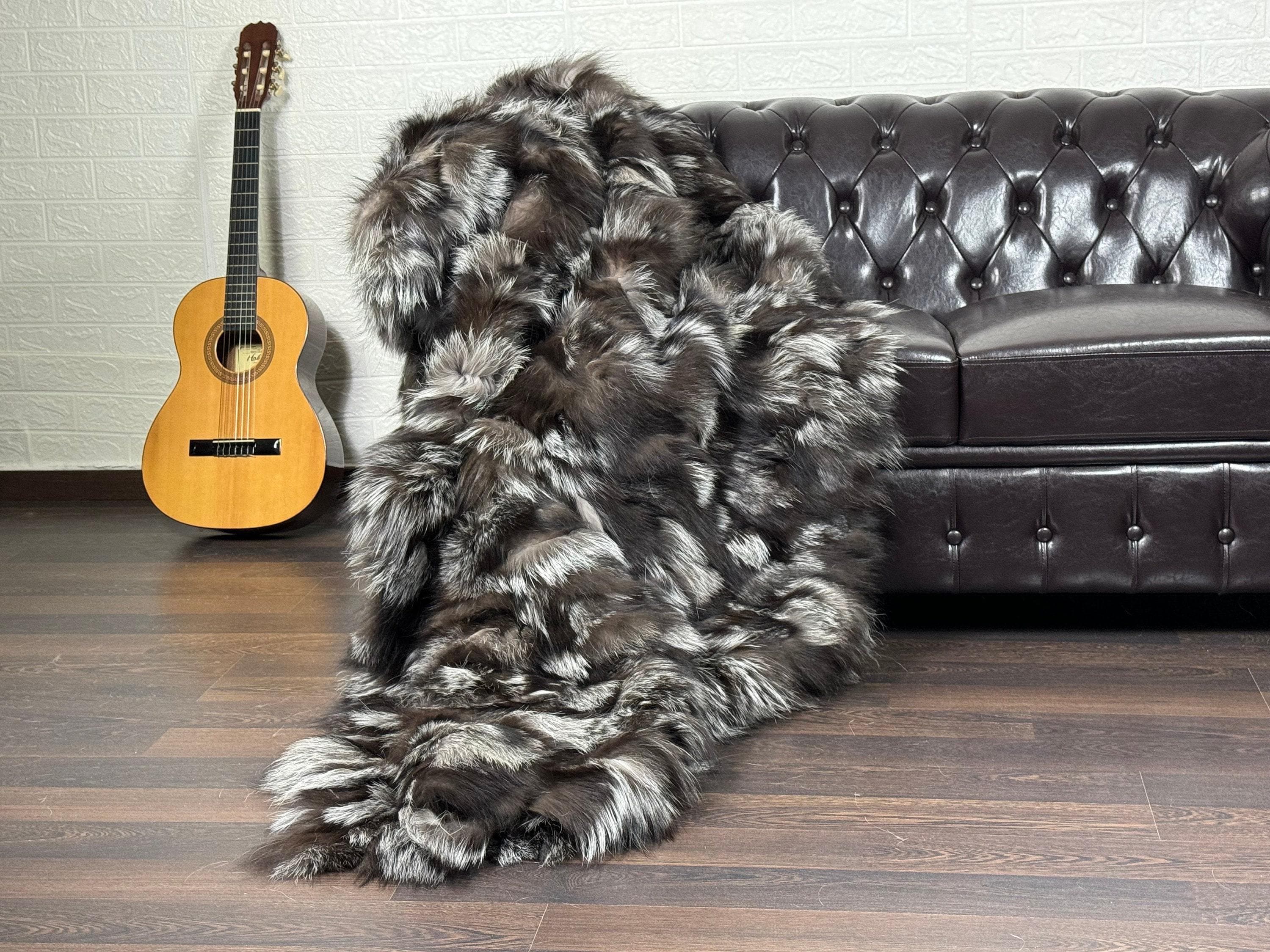 Lovingly crafted by hand, this silver real fox fur blanket throw was created with chilly days in mind.
