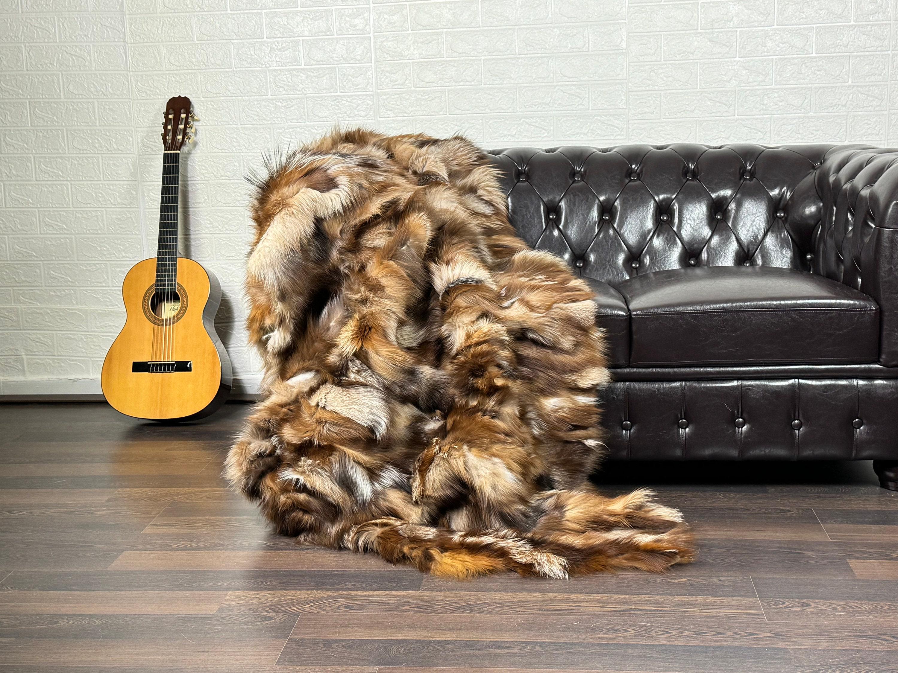 Lovingly crafted by hand, this real fox fur fur blanket throw was created with chilly days in mind.