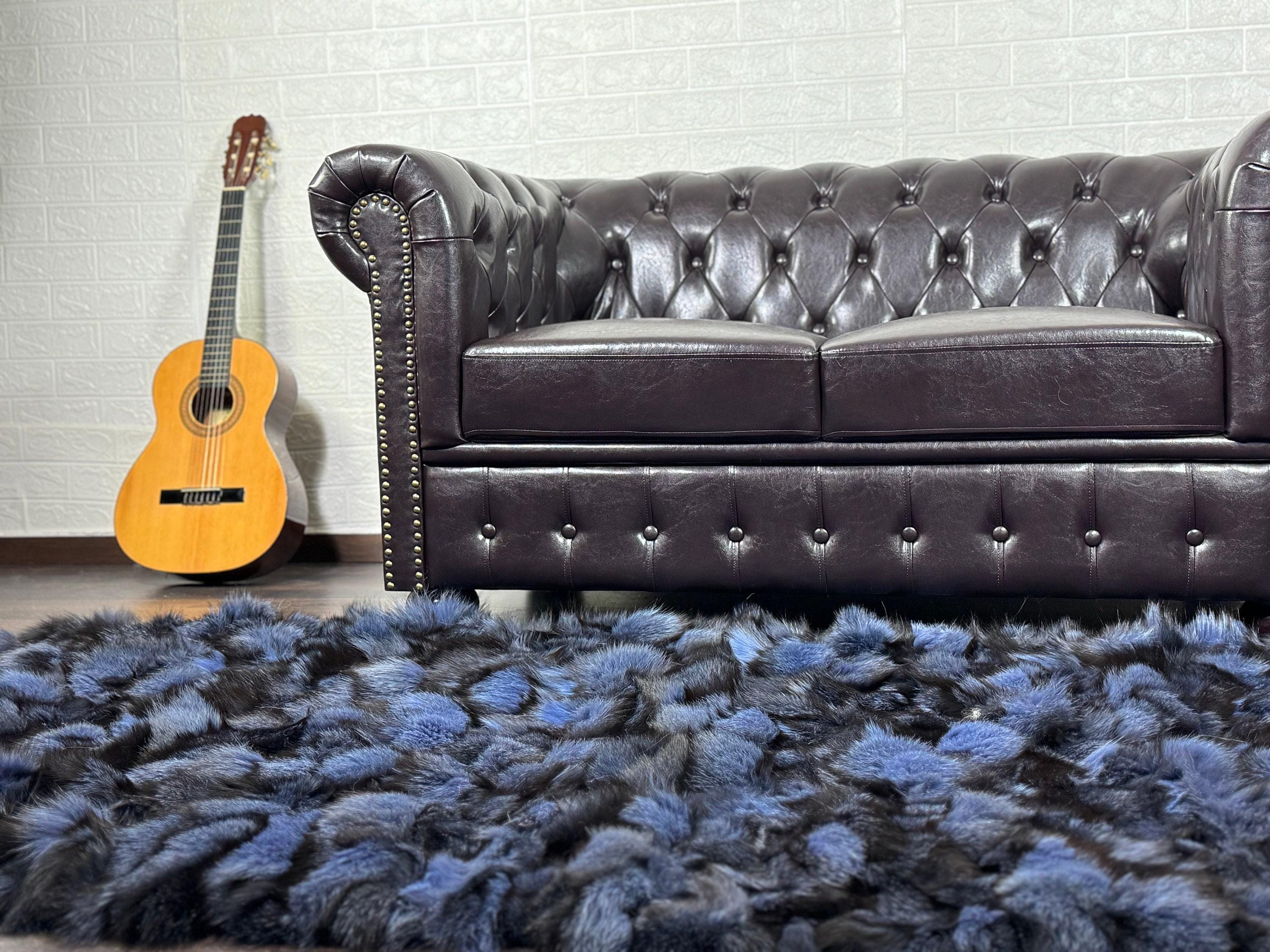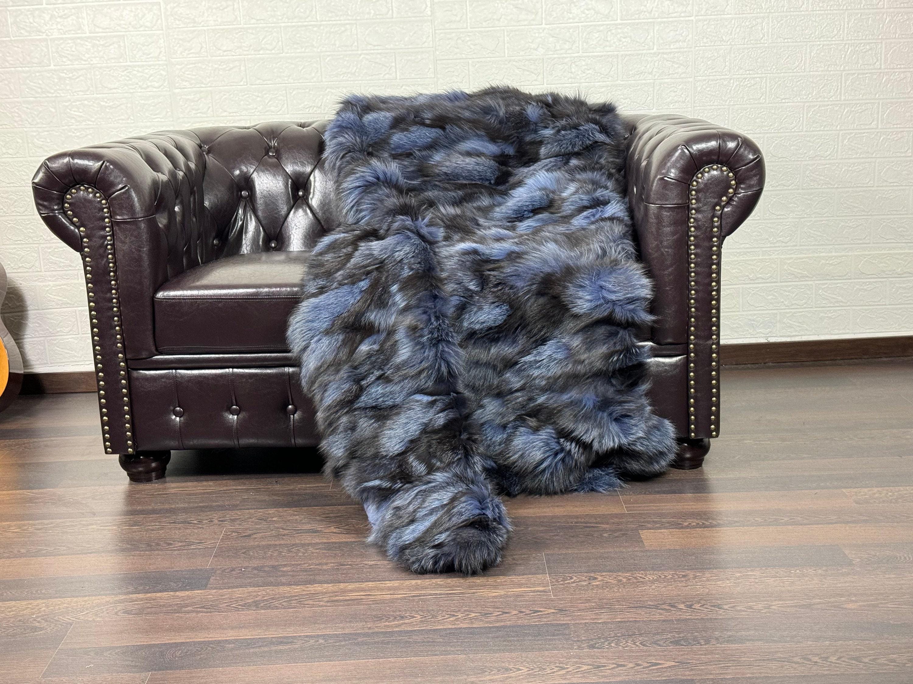 Handmade Real Blue Fox Fur Blanket Throw that can be used as a throw as well. Perfect for Bedspread or Sofa Cover.