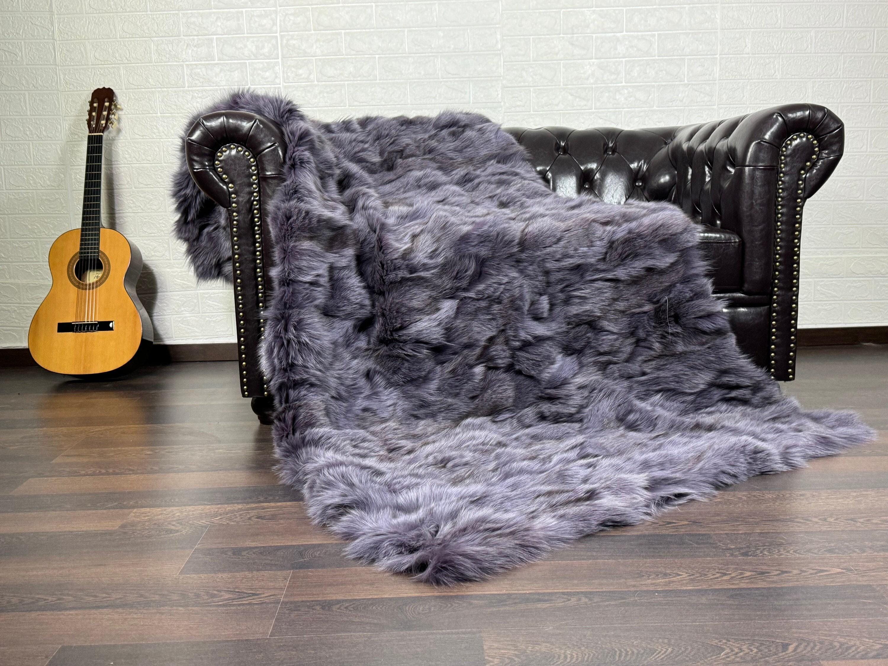 Handmade Real Purple Fox Fur Throw Blanket that can be used as a throw as well. Perfect for Bedspread or Sofa Cover.