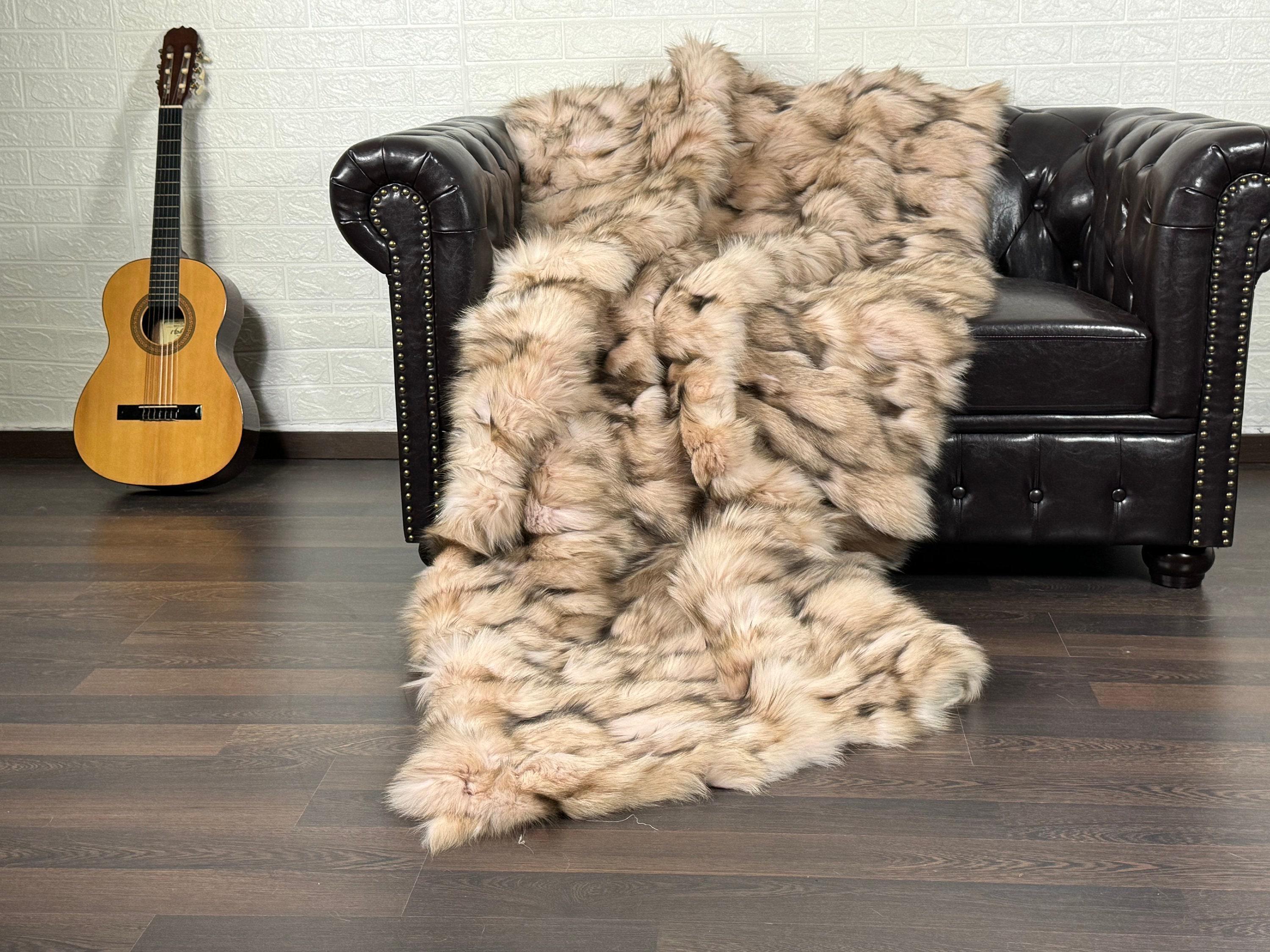 Lovingly crafted by hand, this silver real fox fur blanket throw was created with chilly days in mind.
