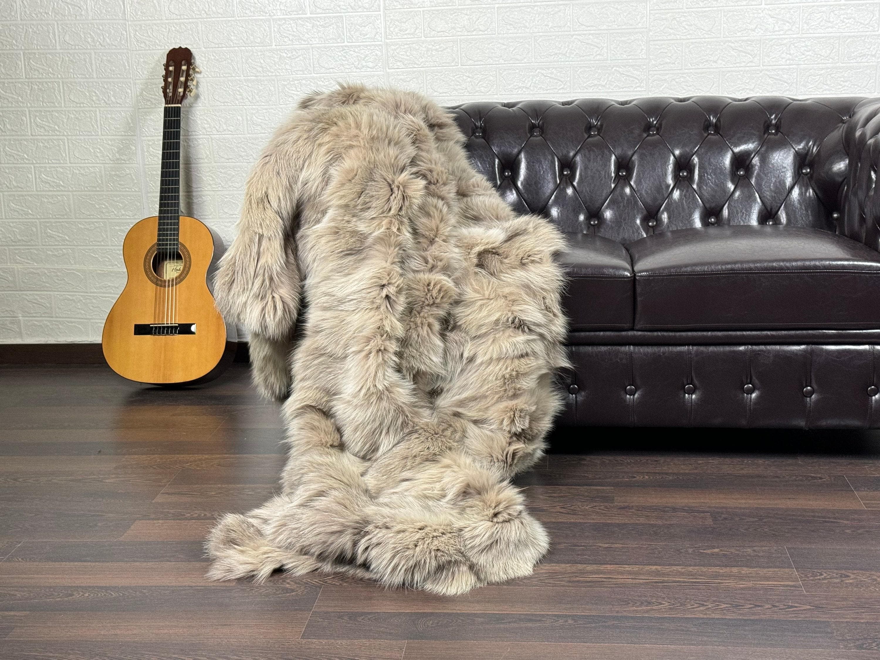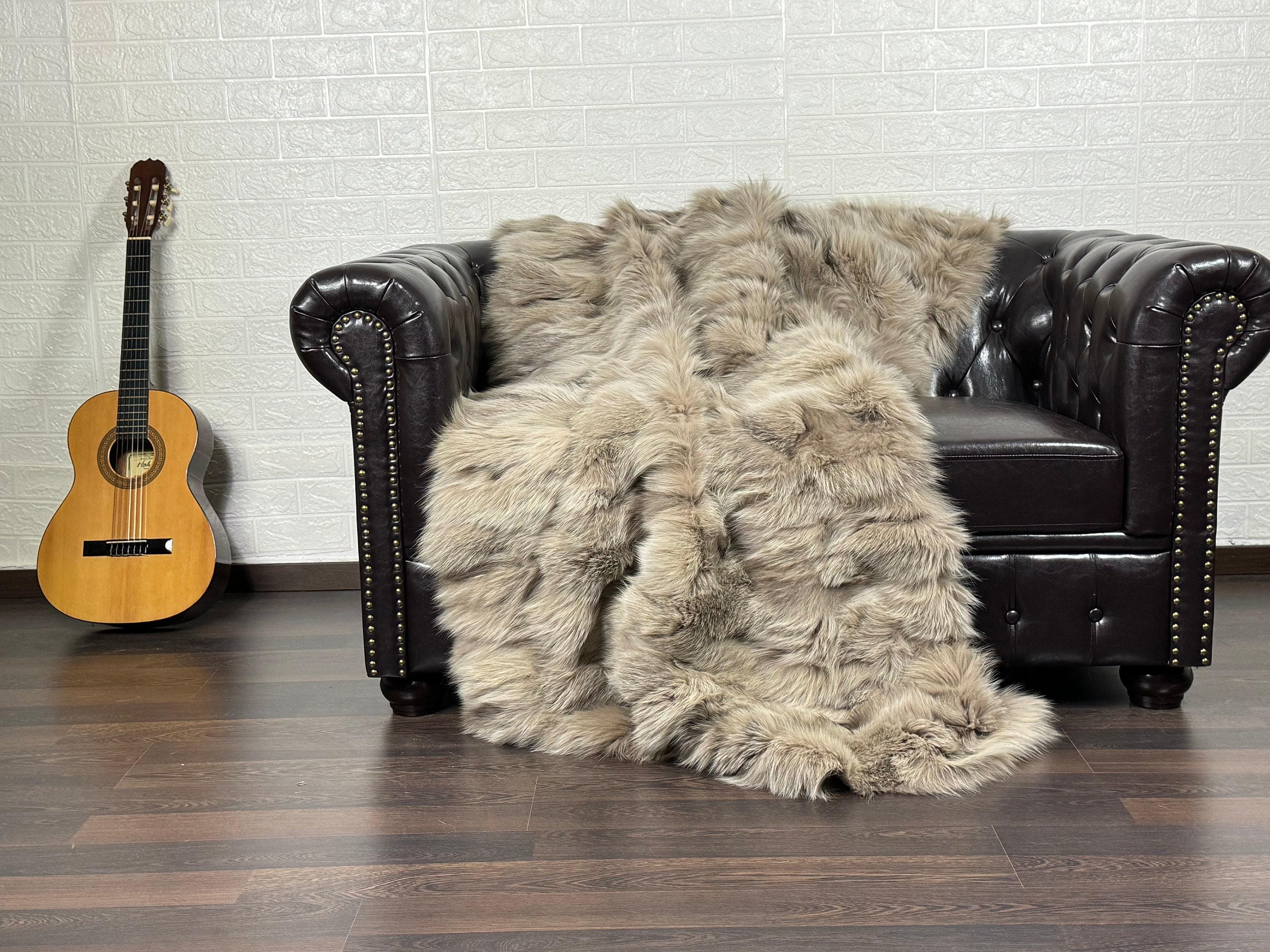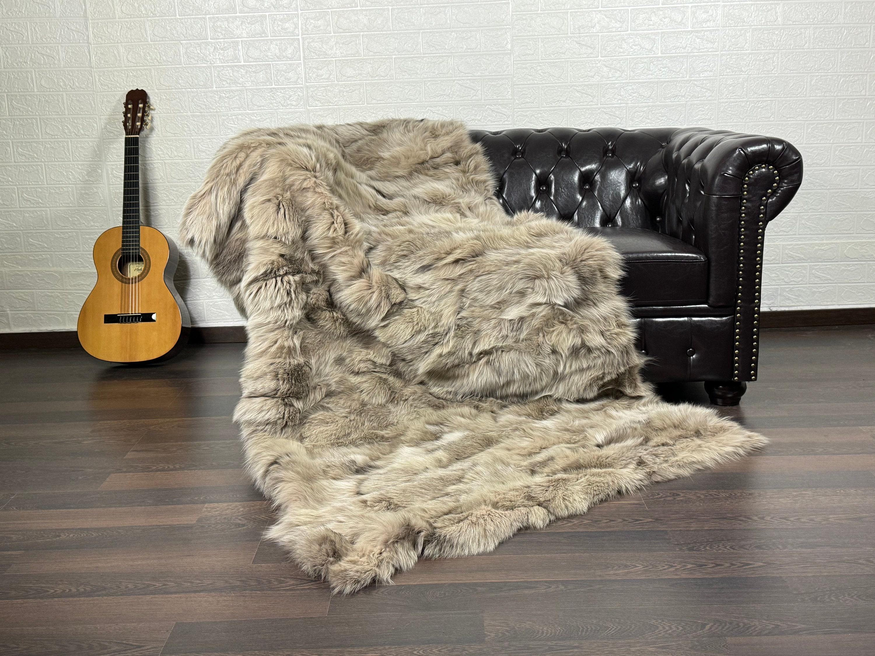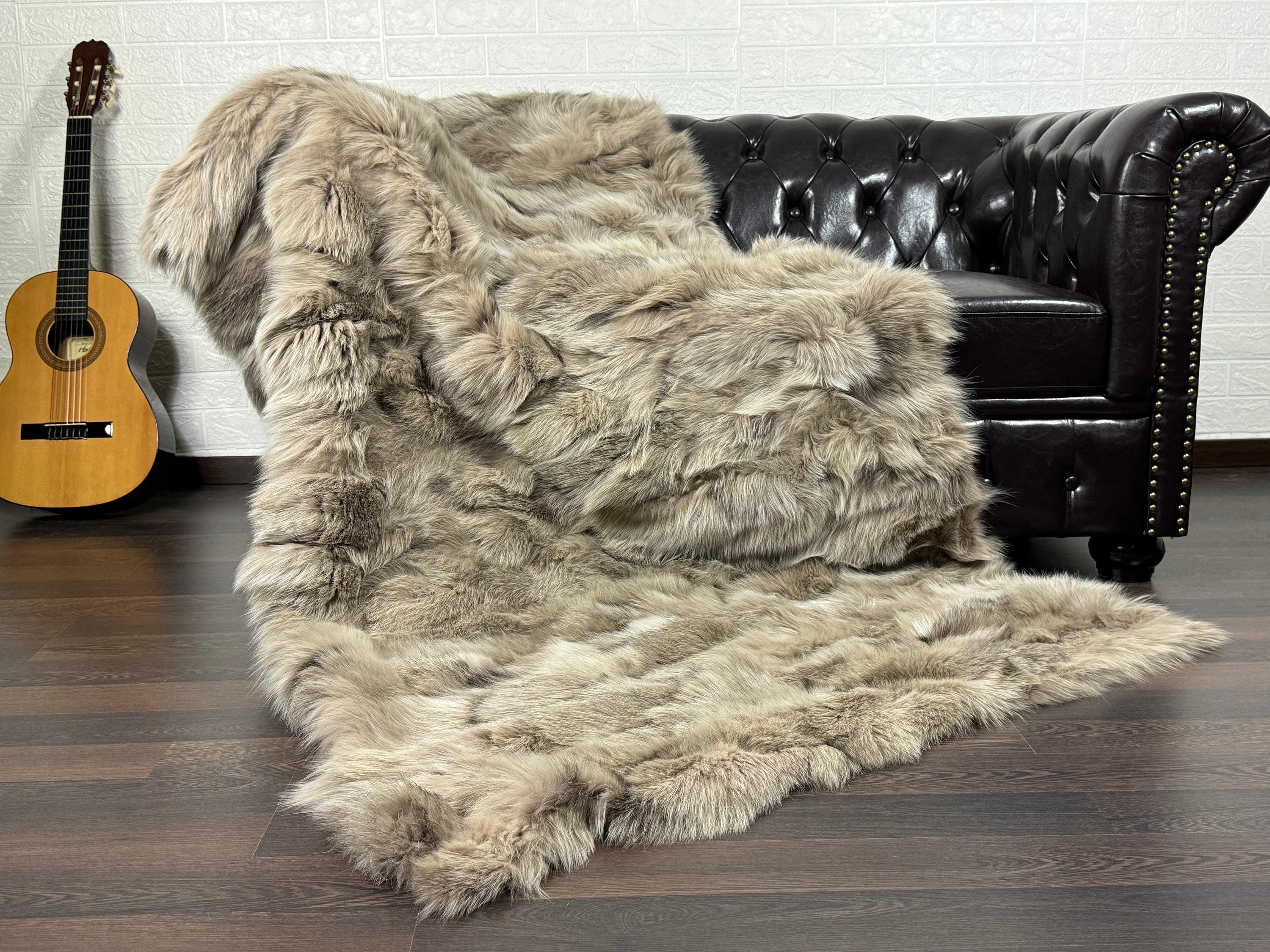 Lovingly crafted by hand, this silver real fox fur blanket throw was created with chilly days in mind.