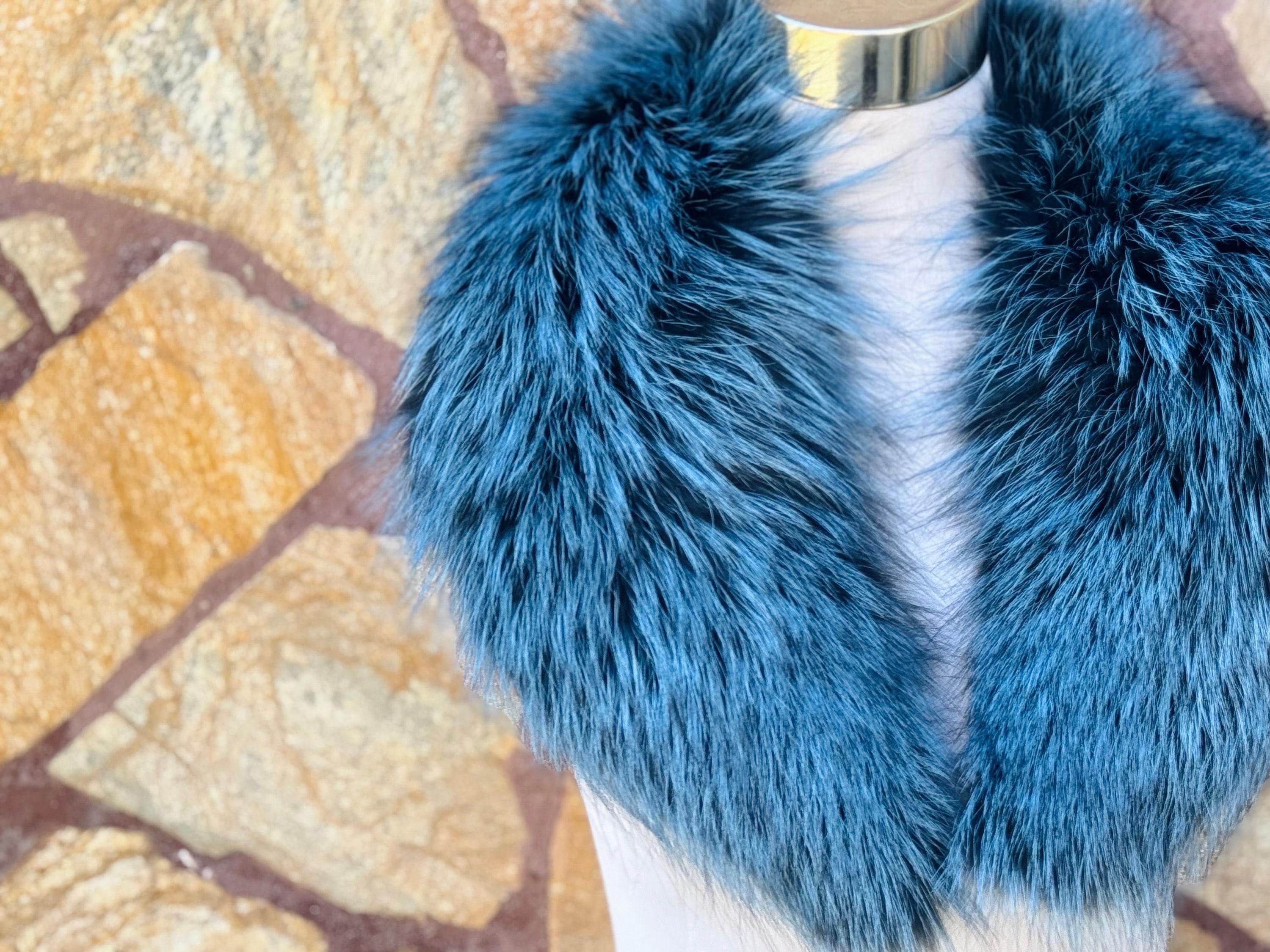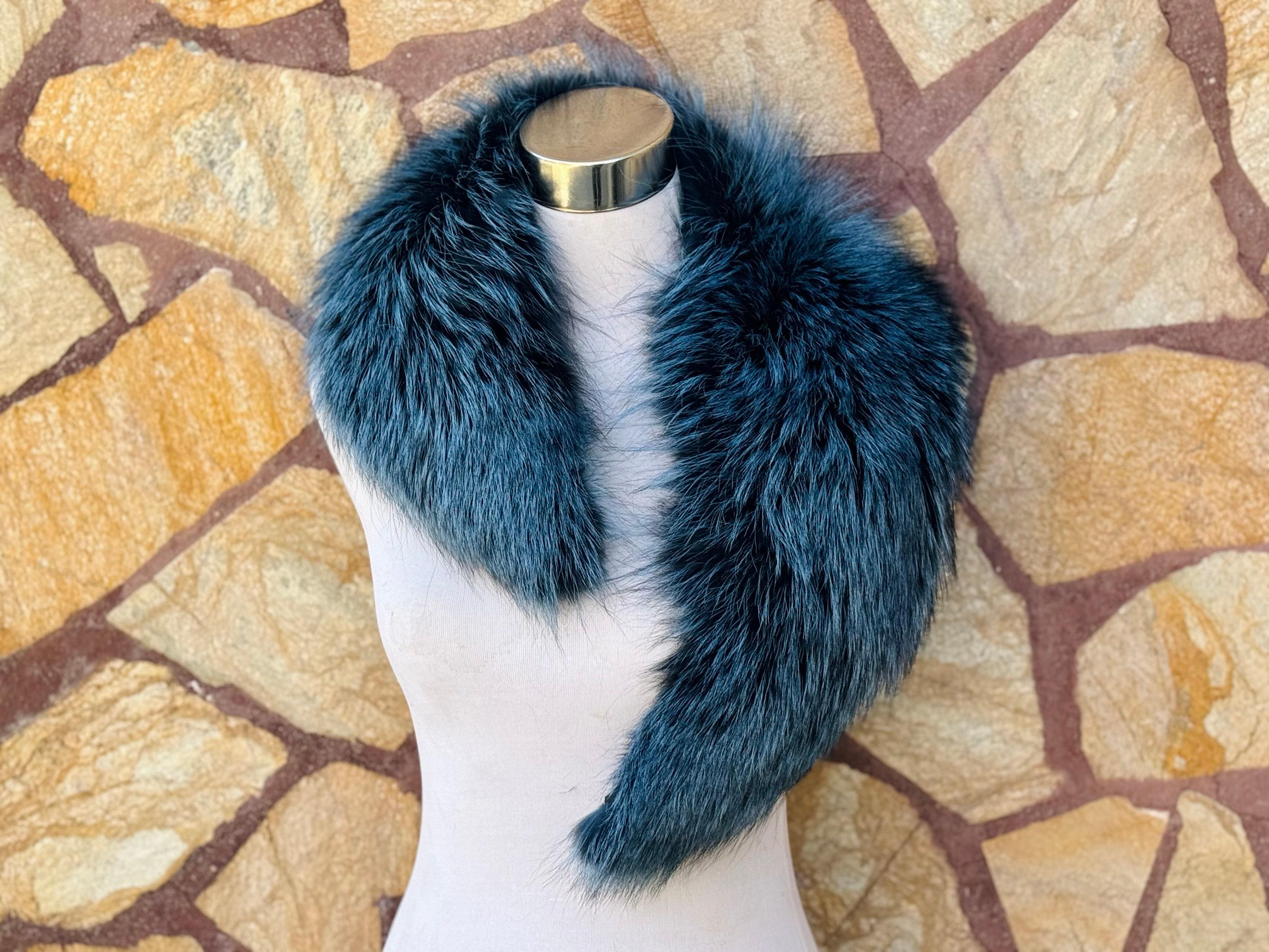 Fox Fur Collar Blue Black of Real Fox Pelt of the finest quality in the market