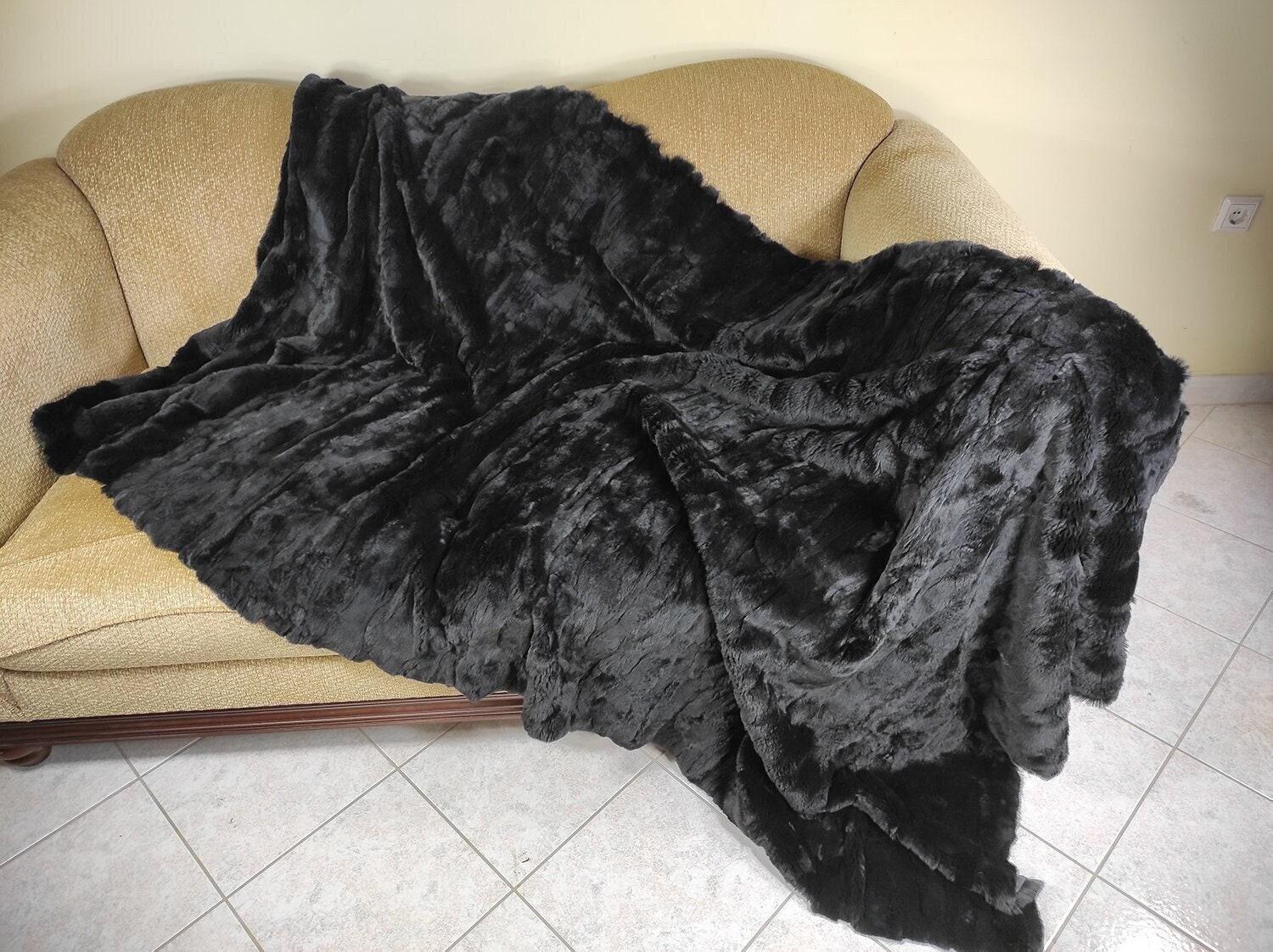 ● 1x Genuine Rex Rabbit Fur Blanket In Black