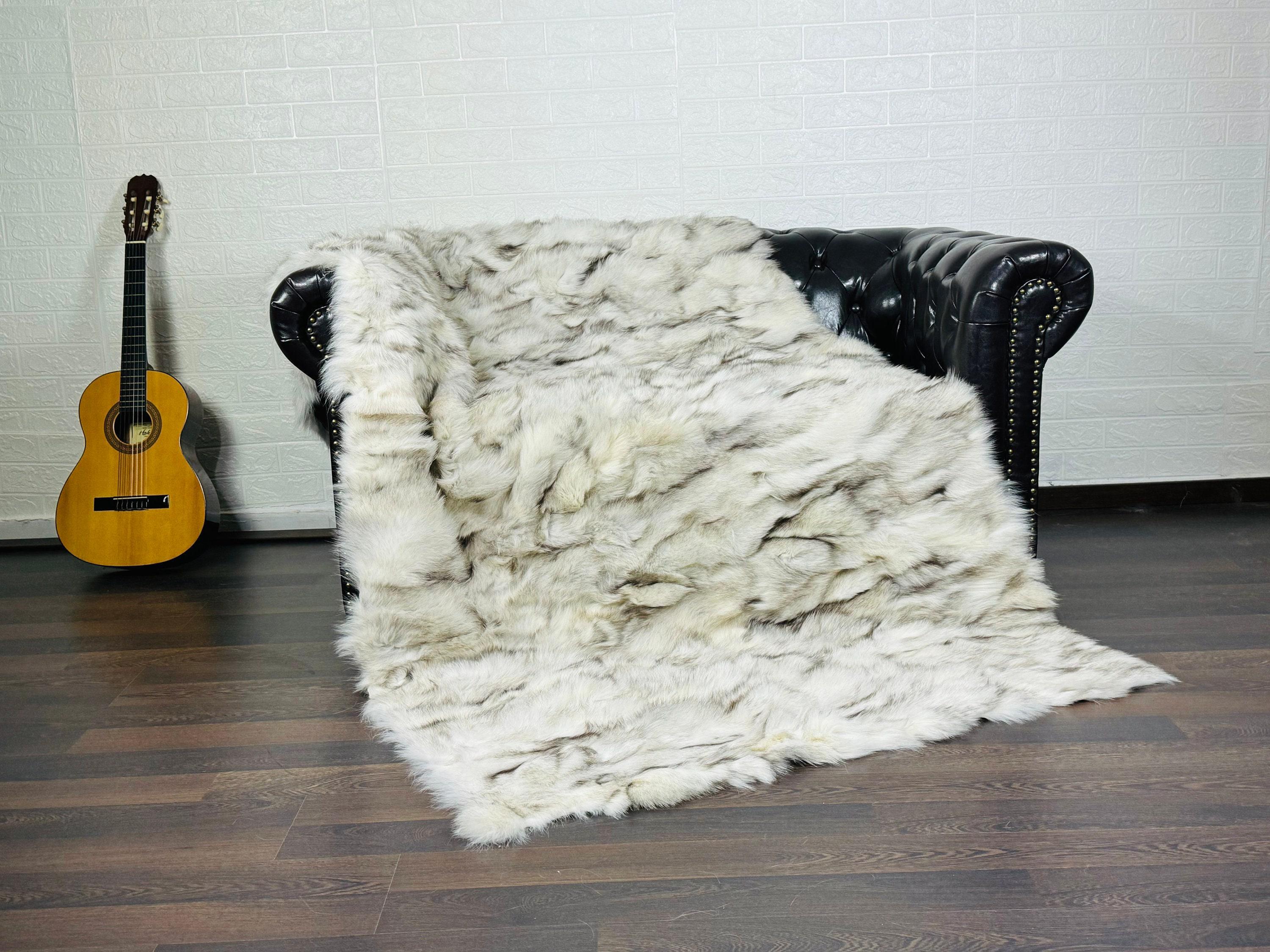 Lovingly crafted by hand, this silver real fox fur fur blanket throw was created with chilly days in mind.