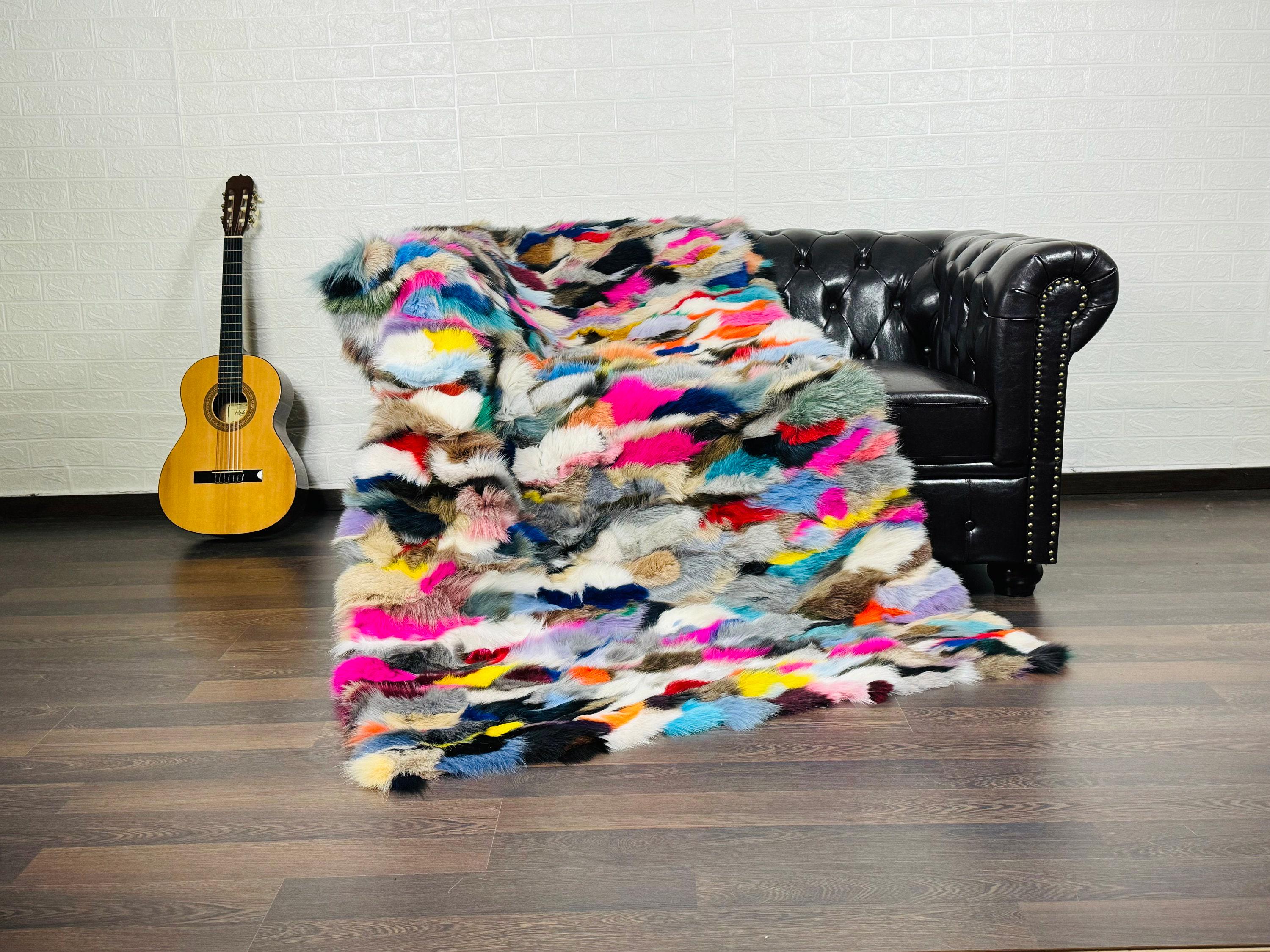 ● 1x Genuine Fox Fur Fur Blanket In Colorful
