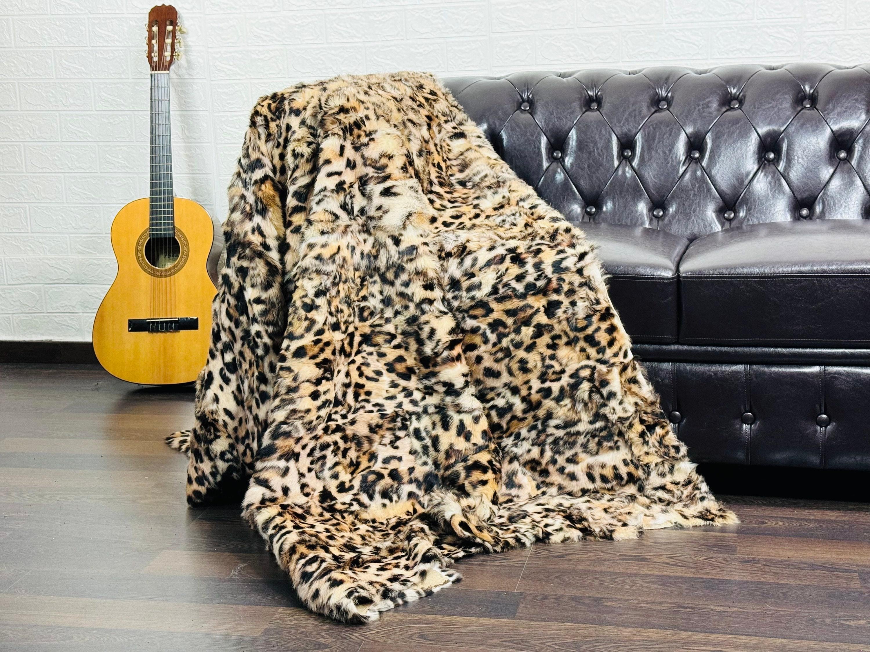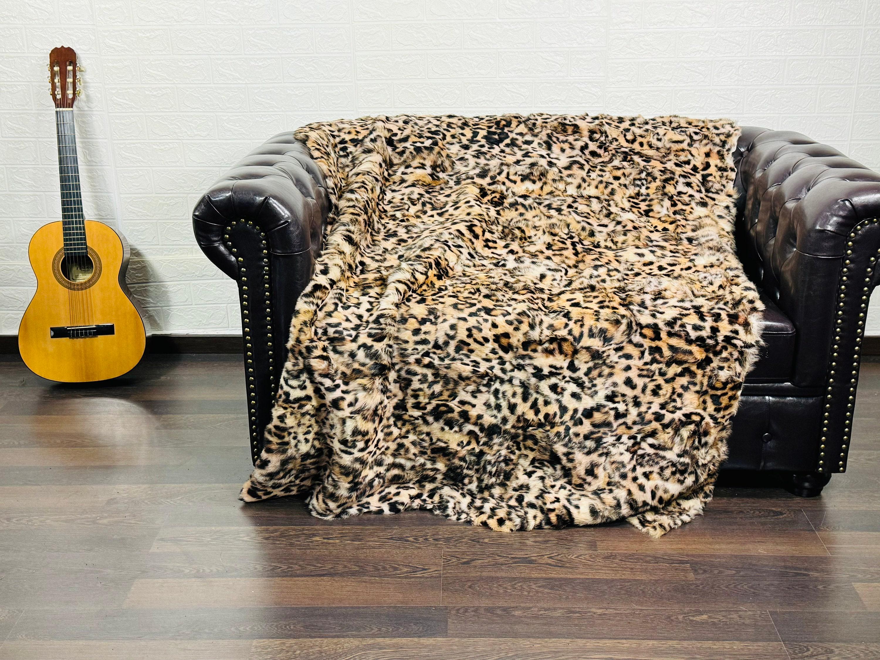 Lovingly crafted by hand, this Leopard real Rabbit fur blanket throw was created with chilly days in mind.