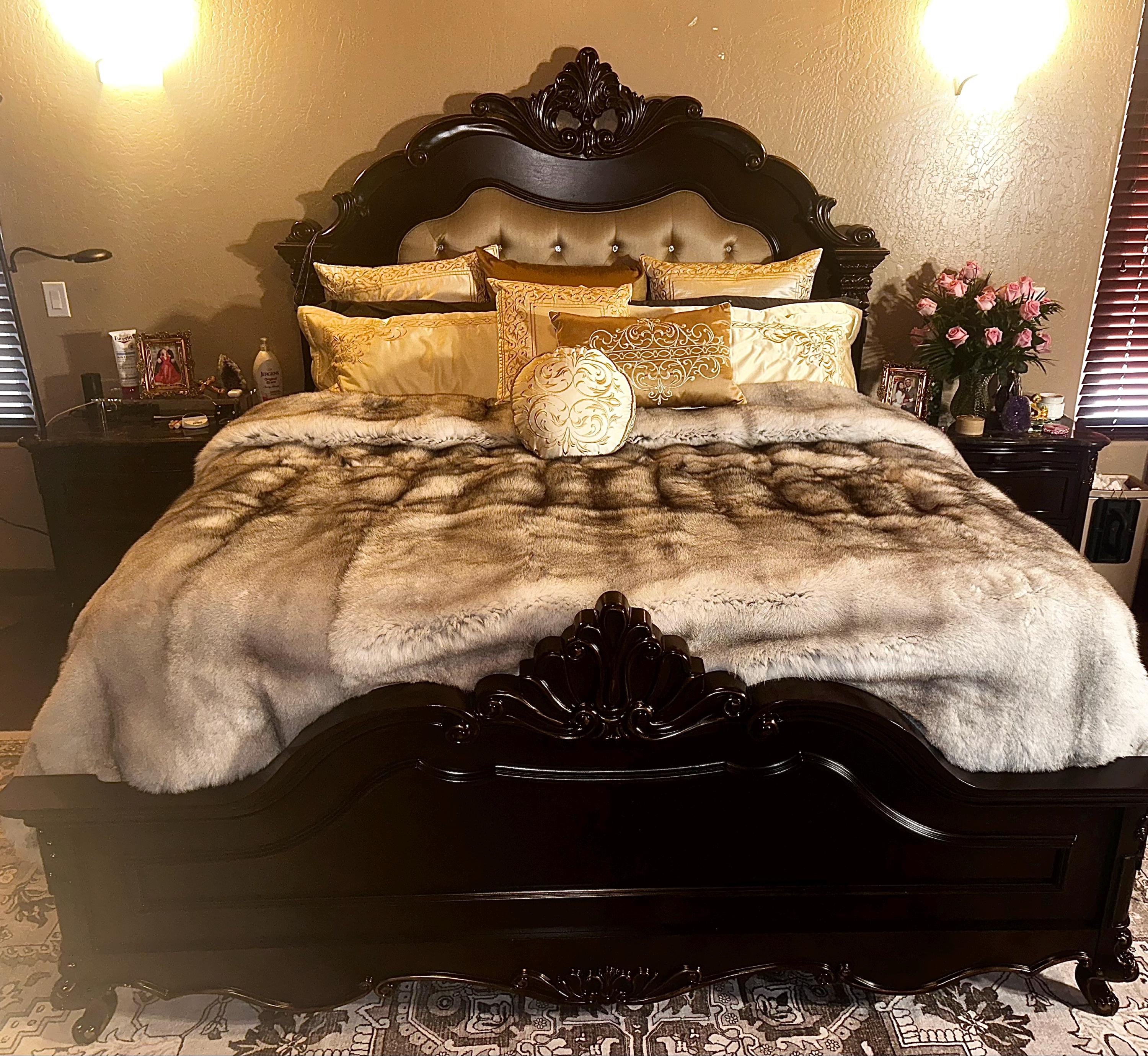 "Wrap yourself in opulence and indulge in the warmth of pure luxury with our exquisite fur blanket."