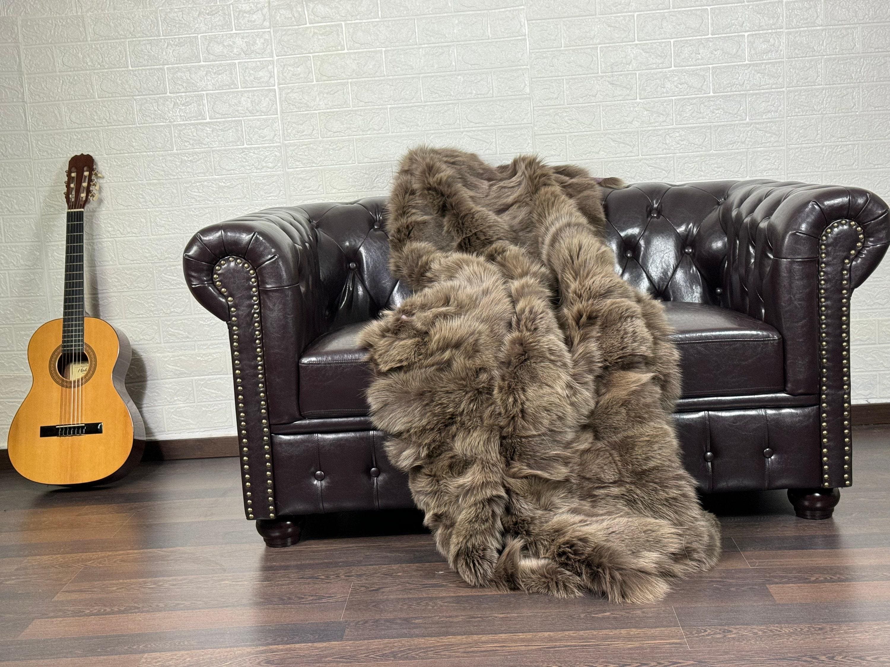 Lovingly crafted by hand, this Brown real fox fur blanket throw was created with chilly days in mind.