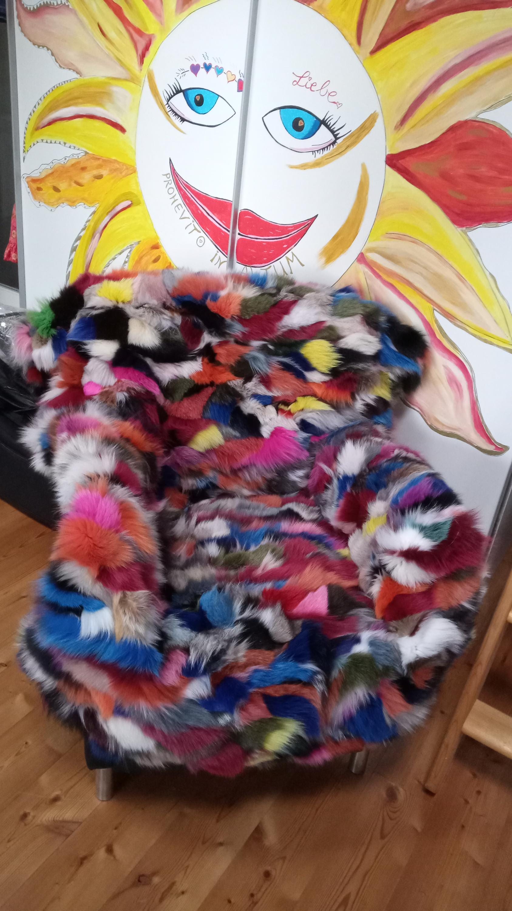 Lovingly crafted by hand, this multicolor real fox fur fur blanket throw was created with chilly days in mind.