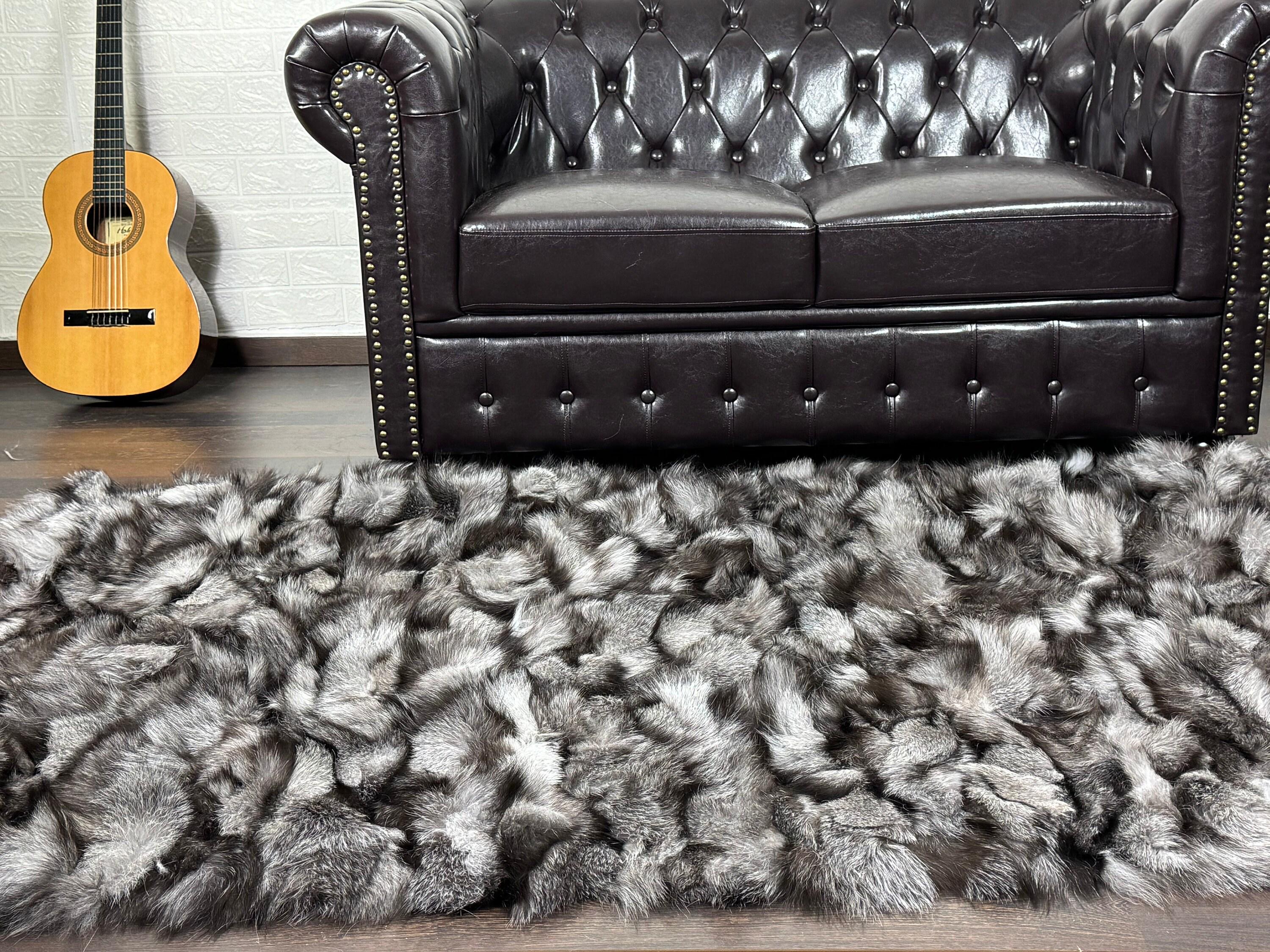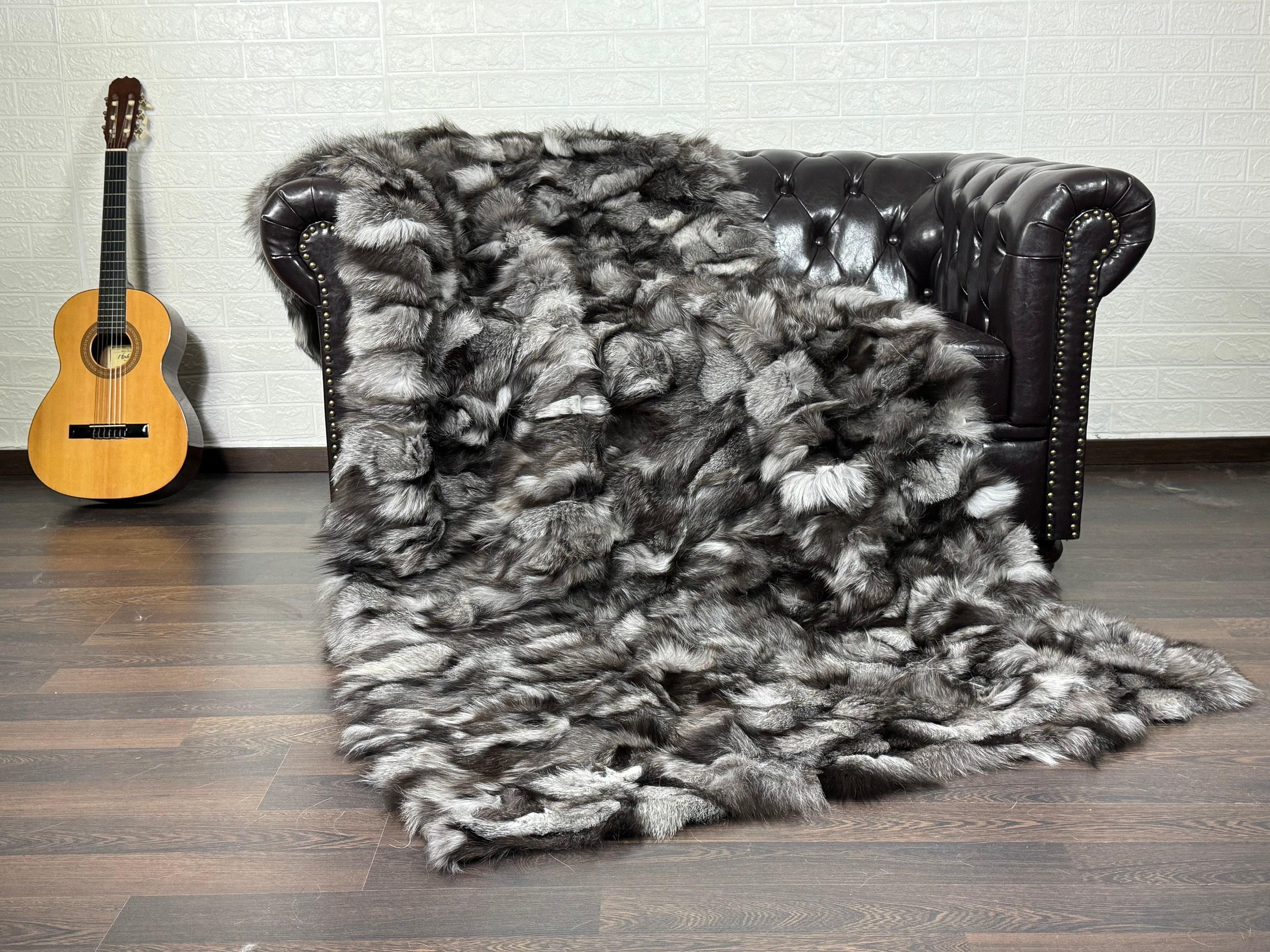 Lovingly crafted by hand, this Natural Frost real fox fur blanket throw was created with chilly days in mind.