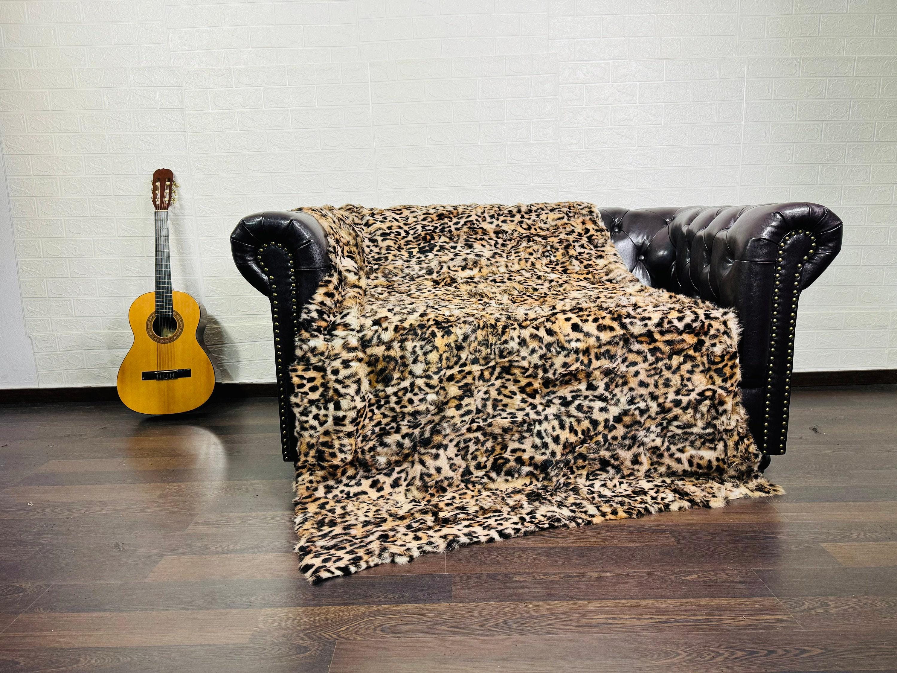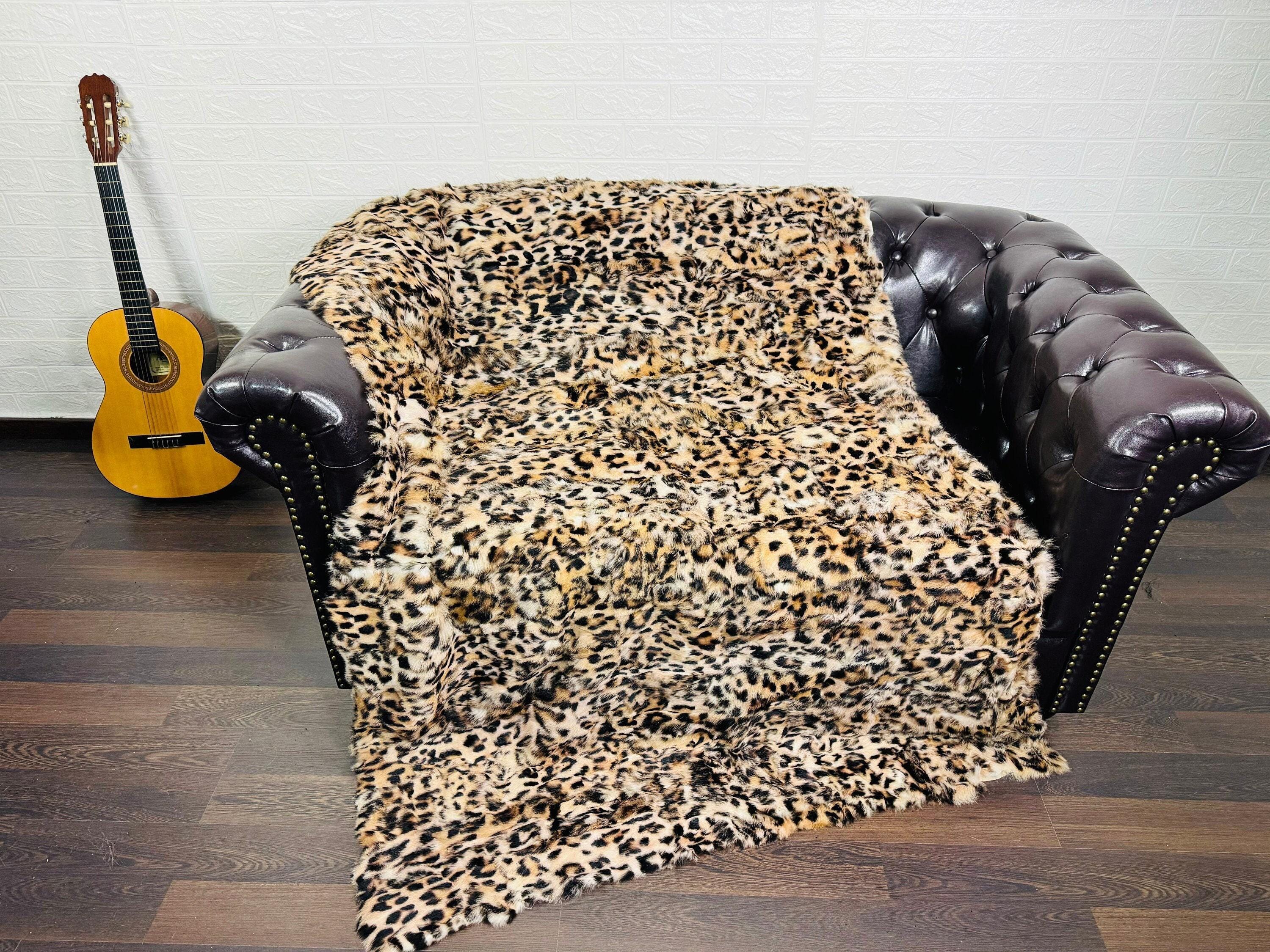 Lovingly crafted by hand, this Leopard real Rabbit fur blanket throw was created with chilly days in mind.