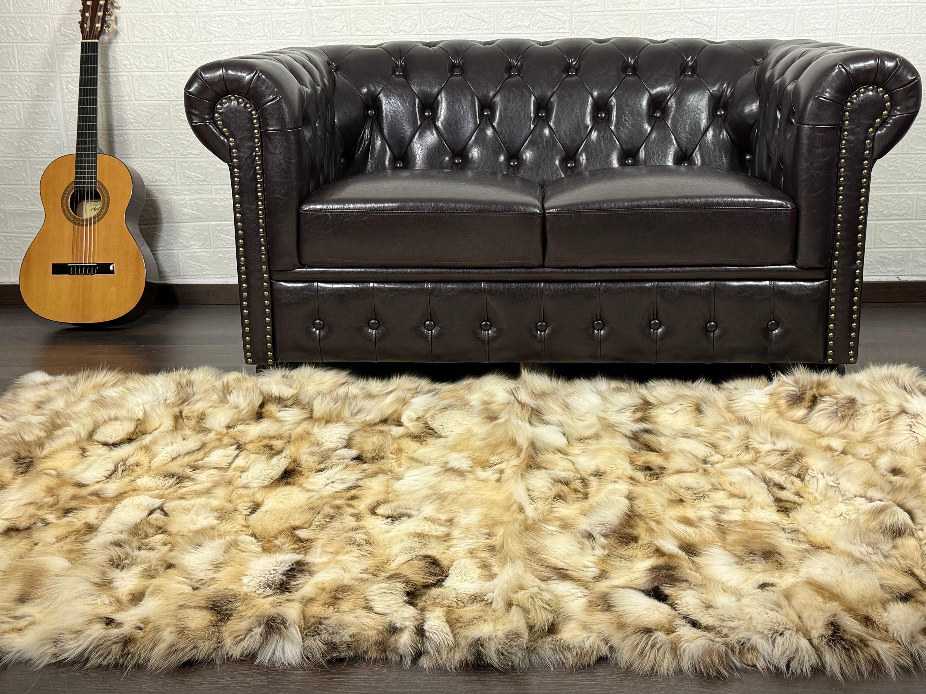 ● 1x Genuine Fox Fur Fur Blanket In beige Color