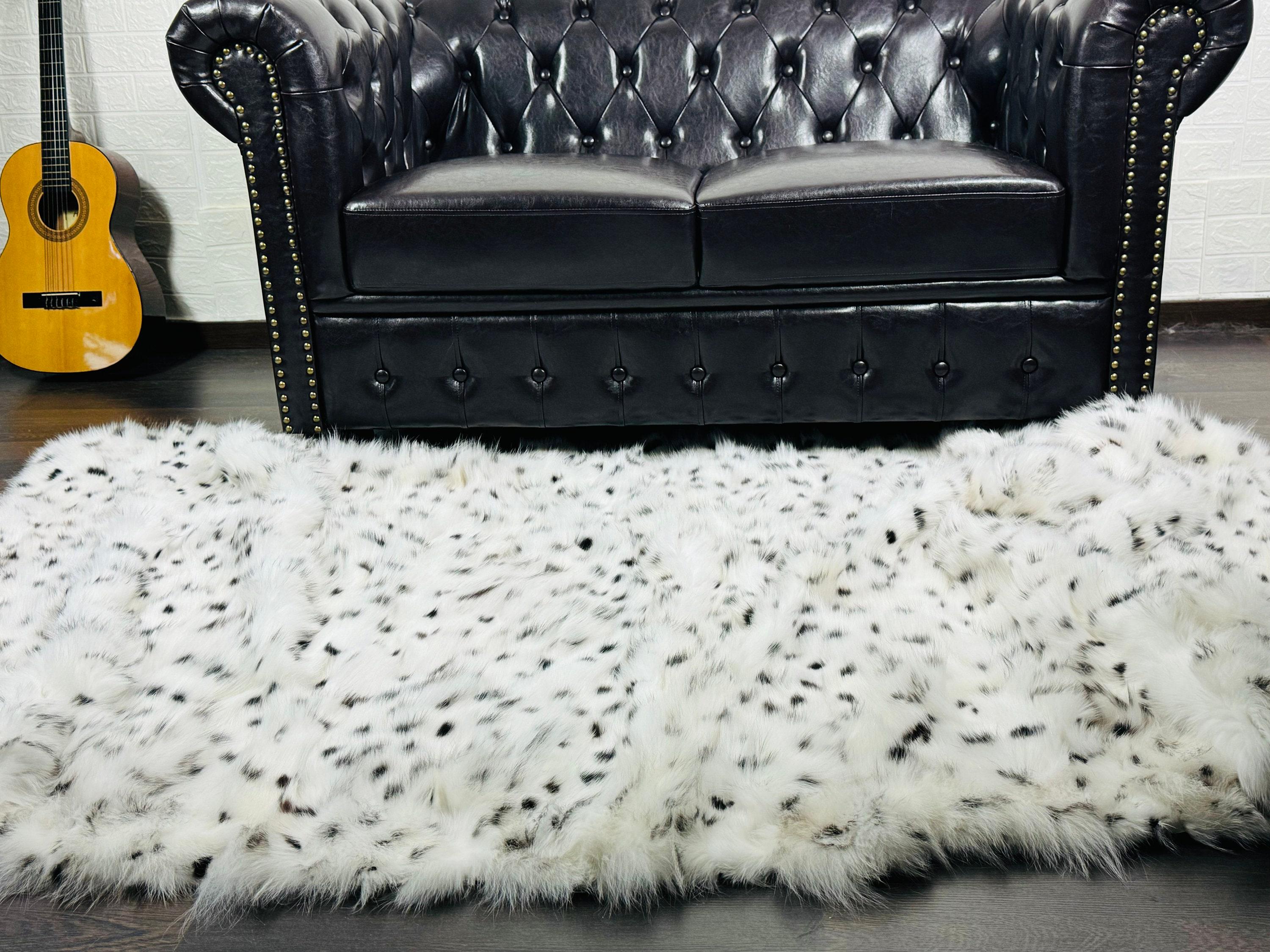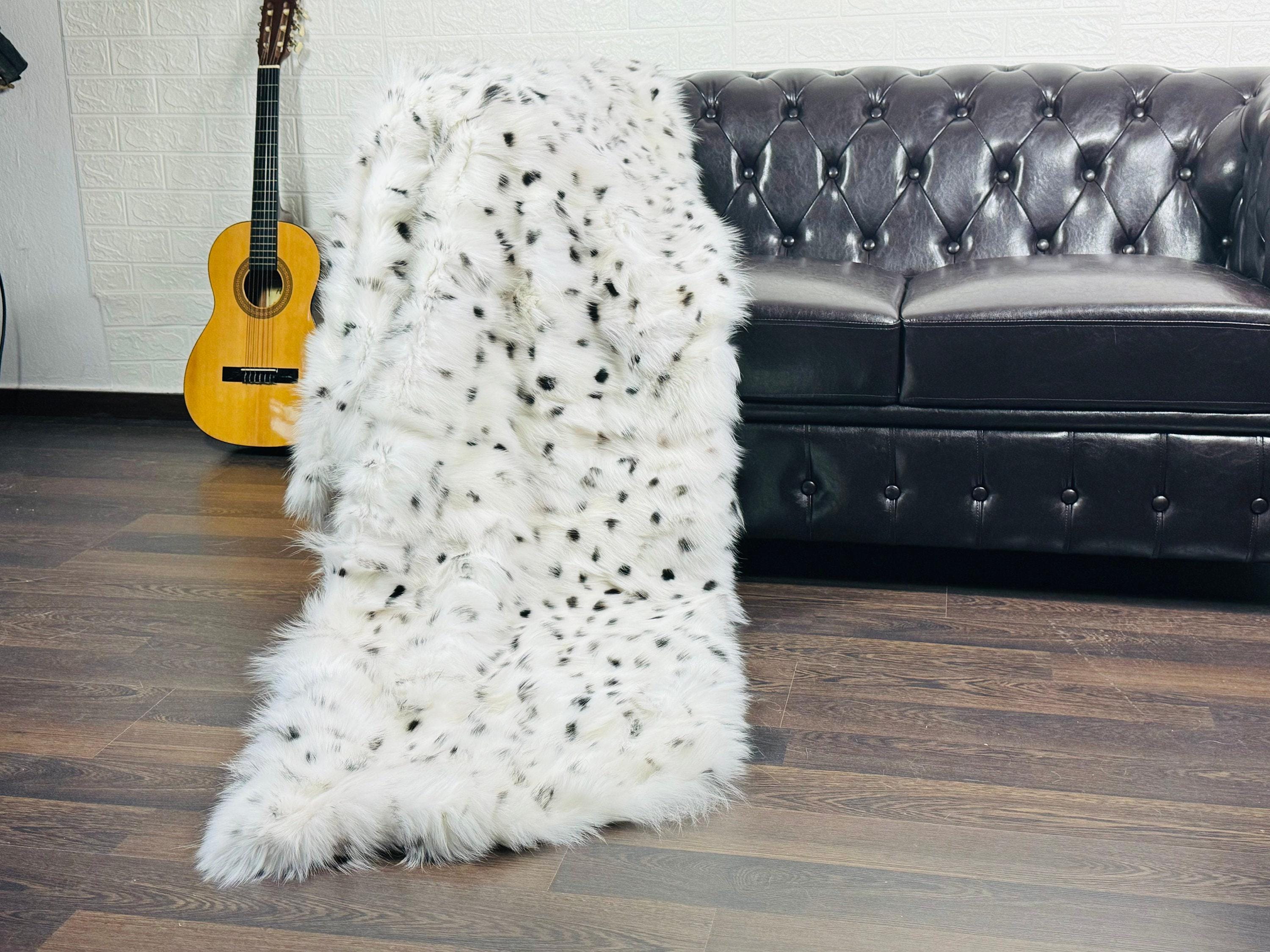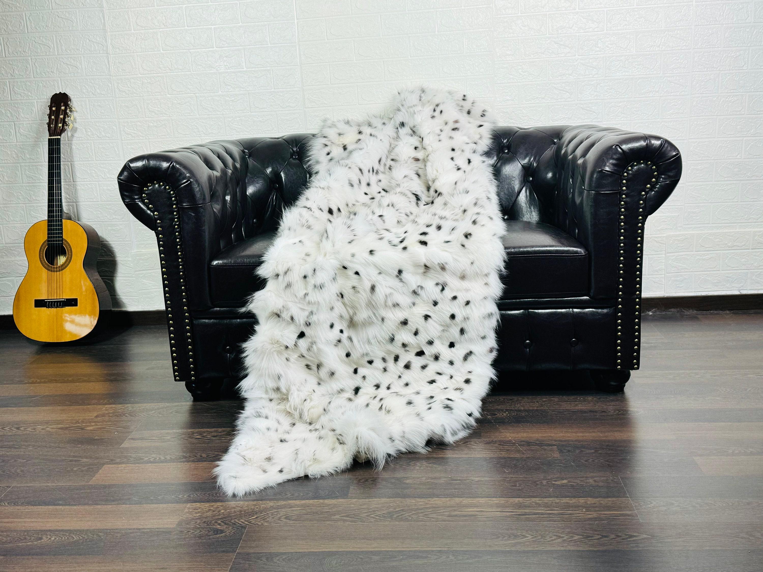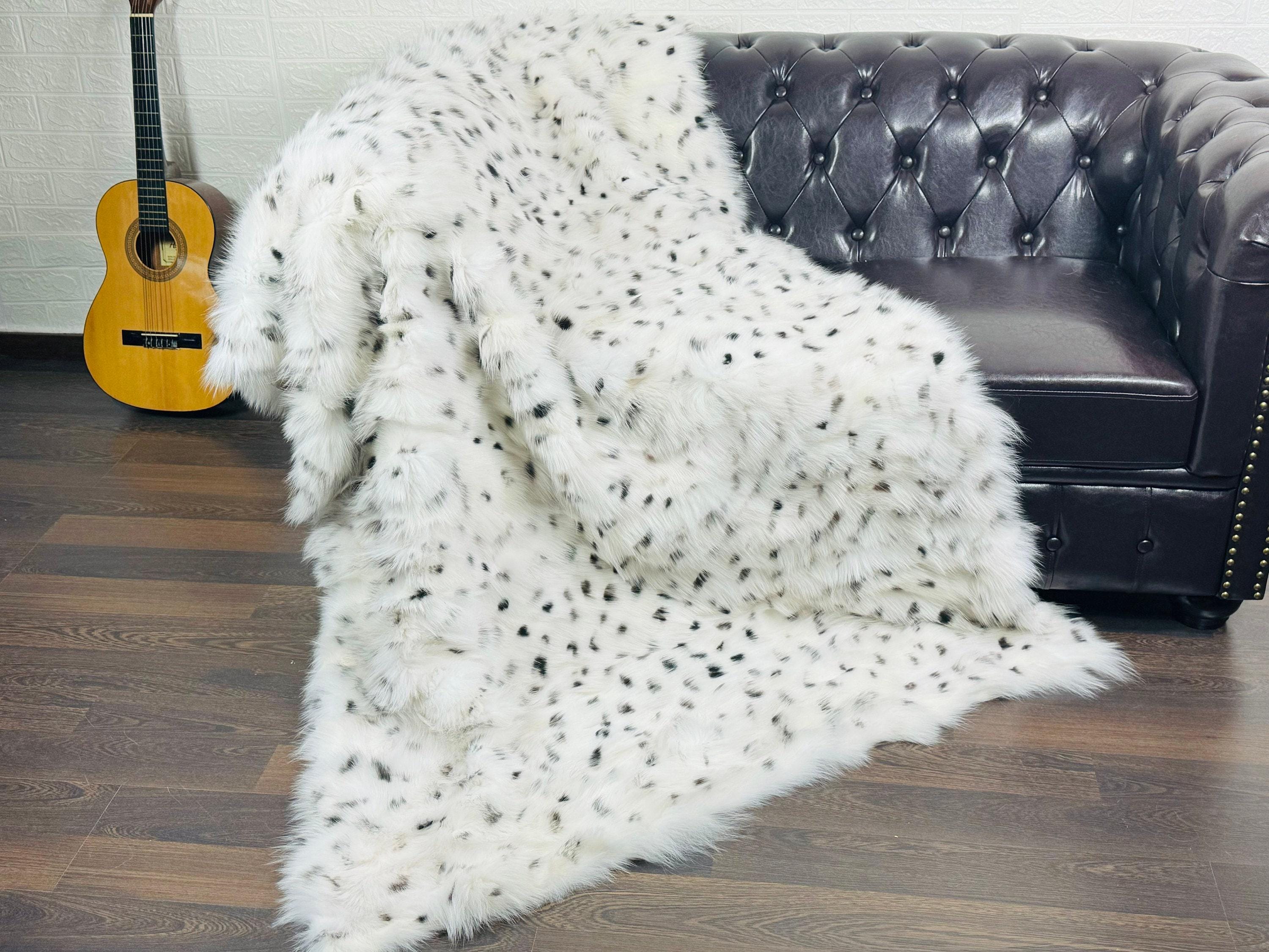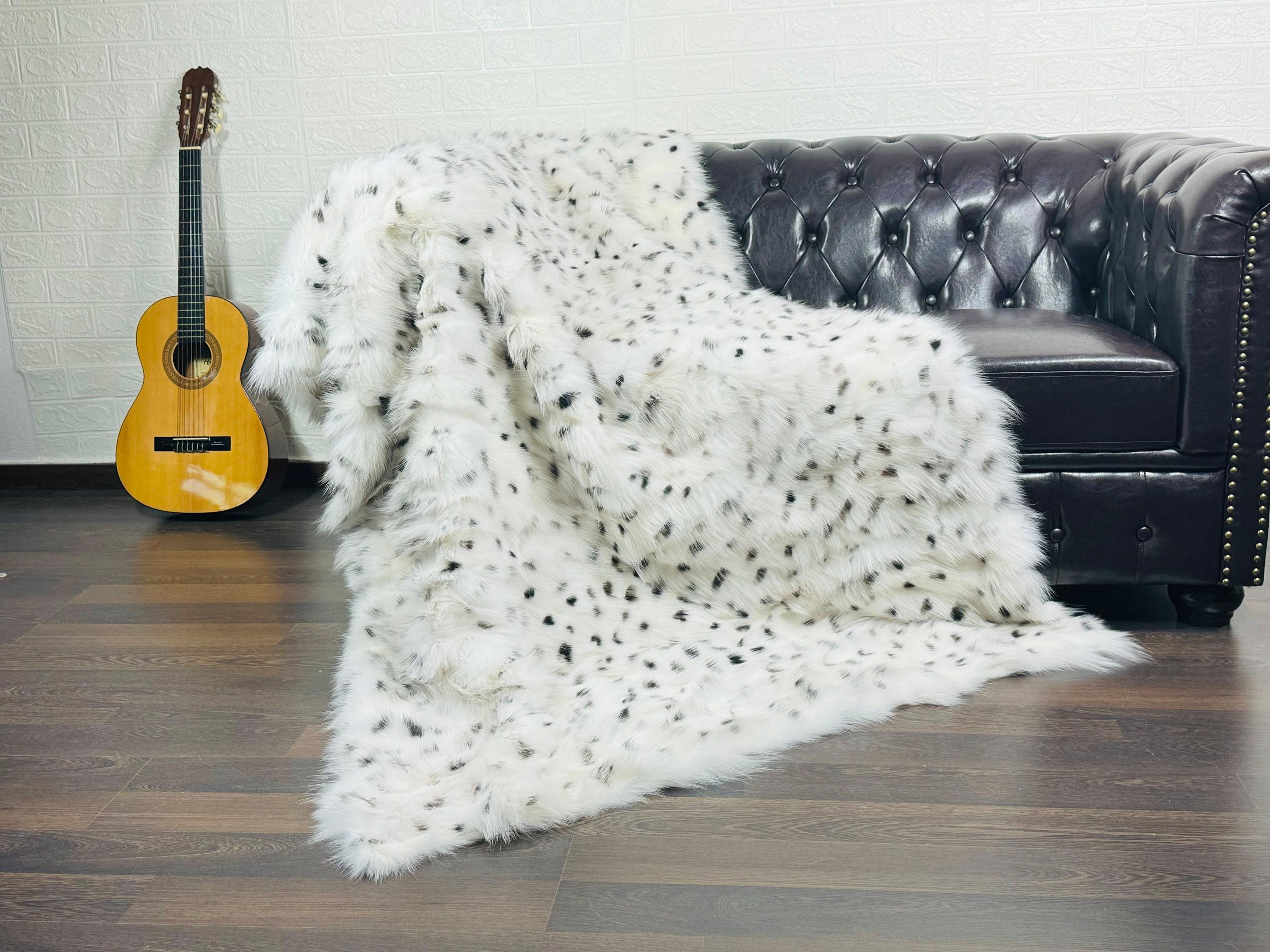 Handmade Real White with Black Bullets Fox Fur Blanket that can be used as a throw as well. Perfect for Bedspread or Sofa Cover.