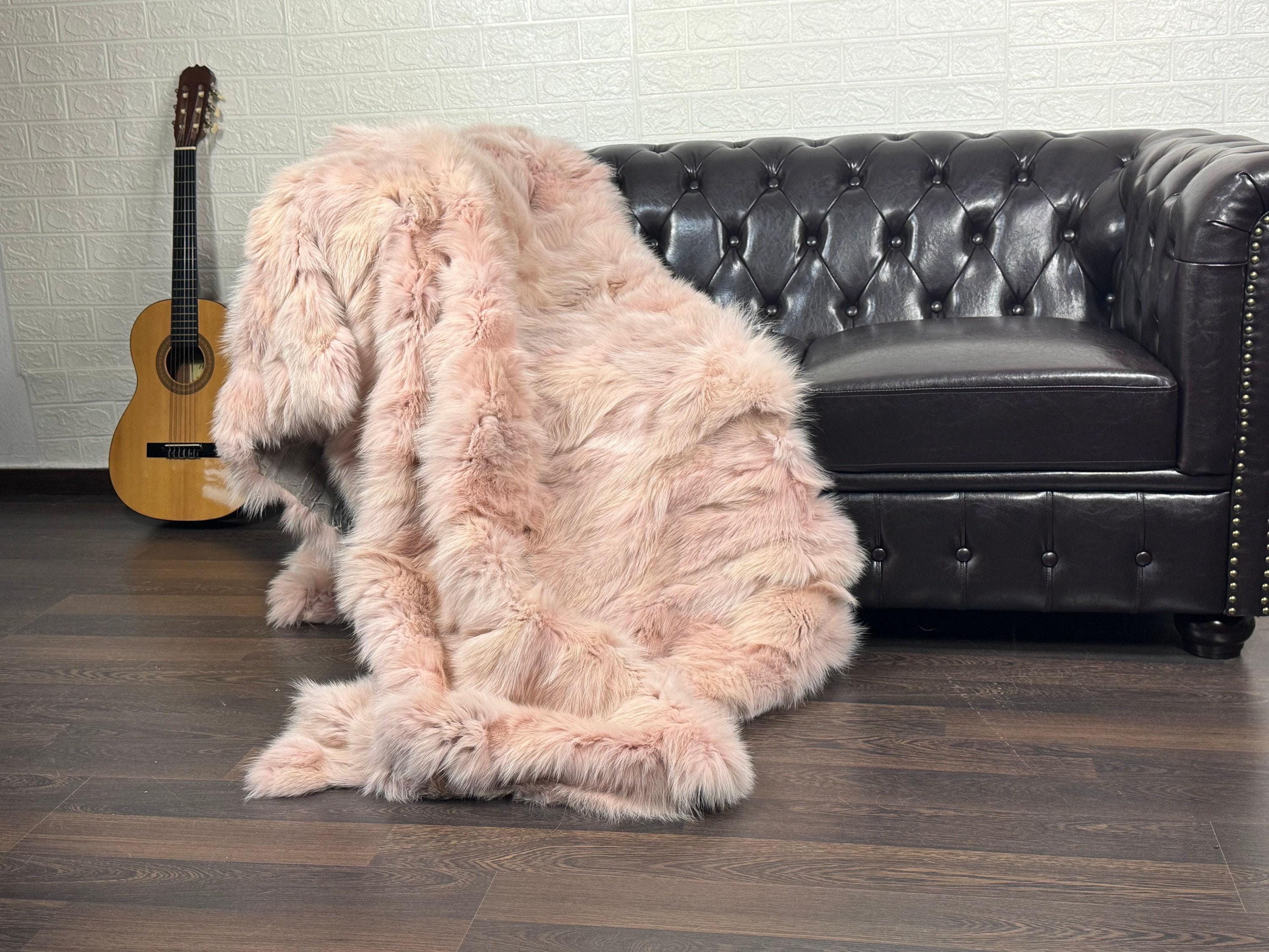 Lovingly crafted by hand, this Pink real fox fur fur blanket throw was created with chilly days in mind.