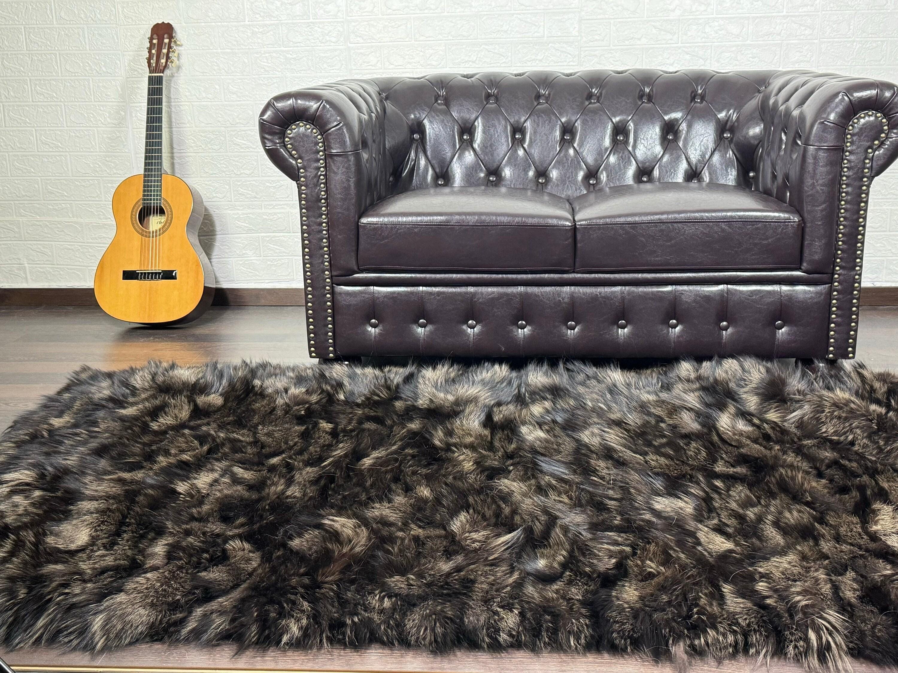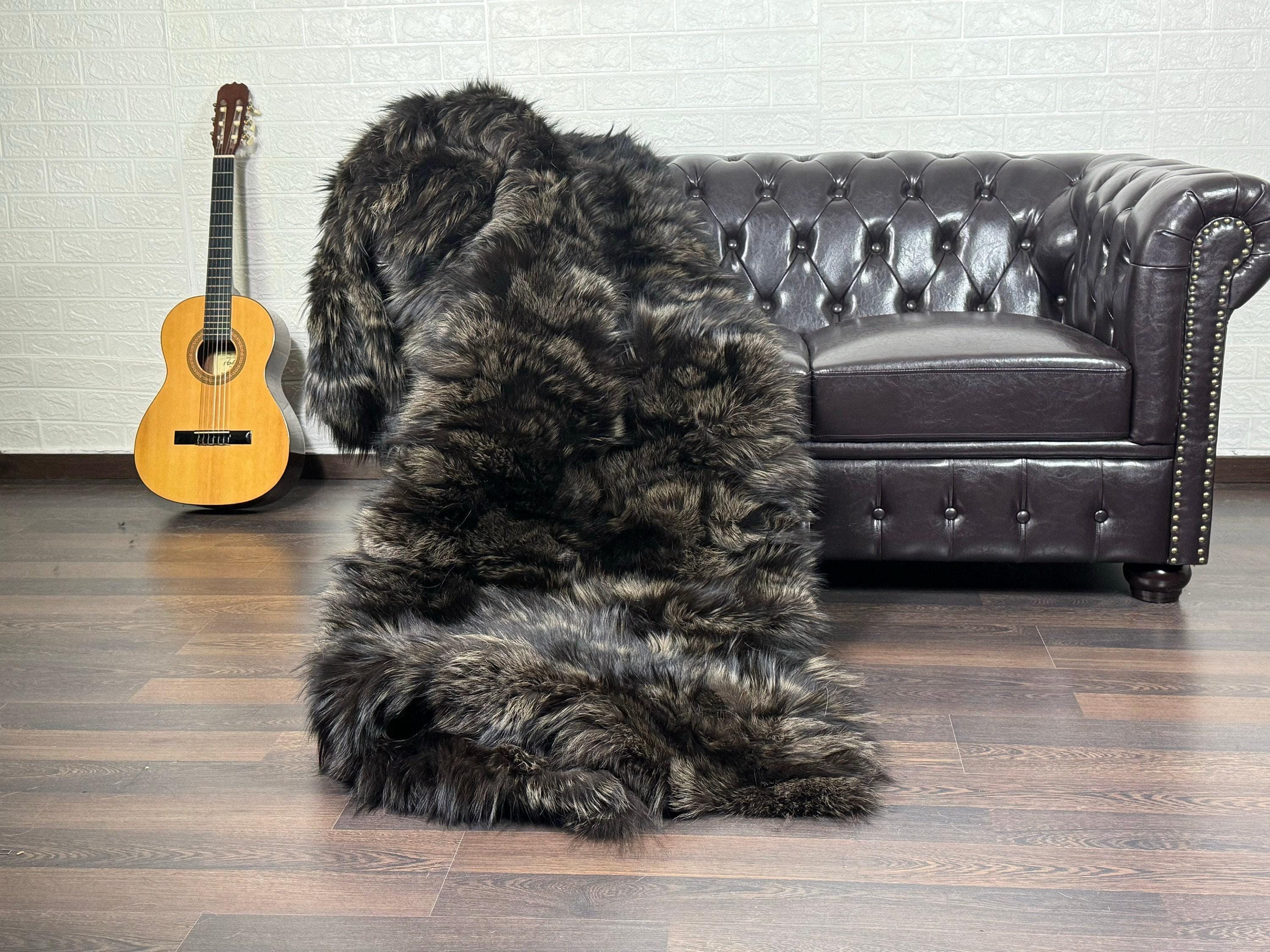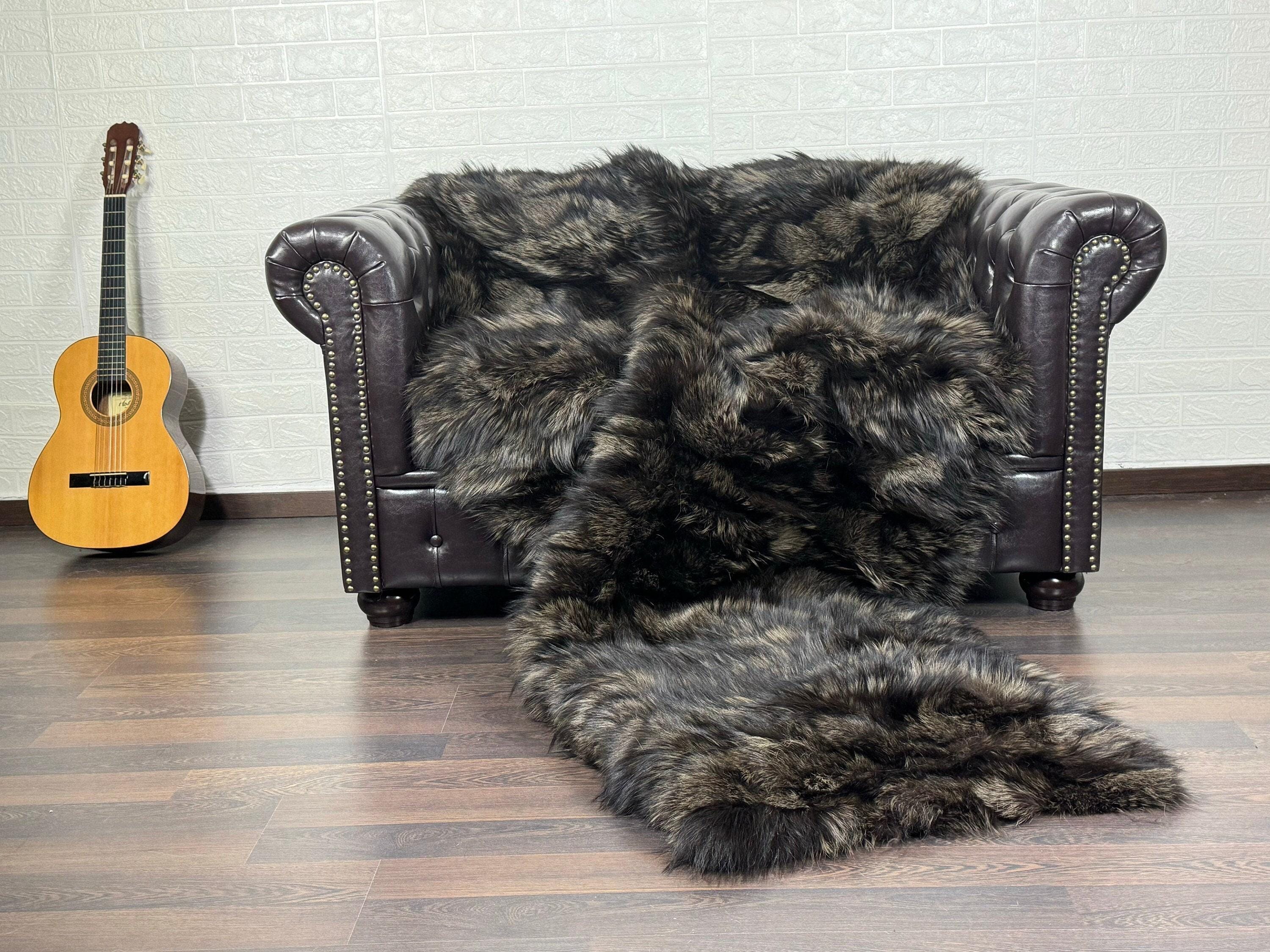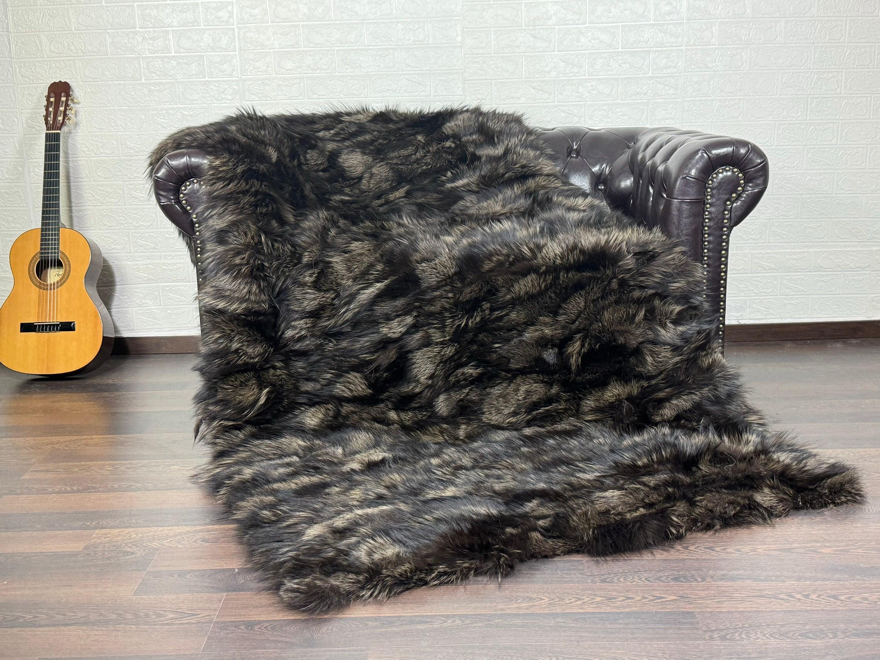 EXCLUSIVE Real FOX FUR Throw Blanket Black Gold • Large Area Rug • Ethically and Organic Farmed Fox Fur • Scandinavian Decor