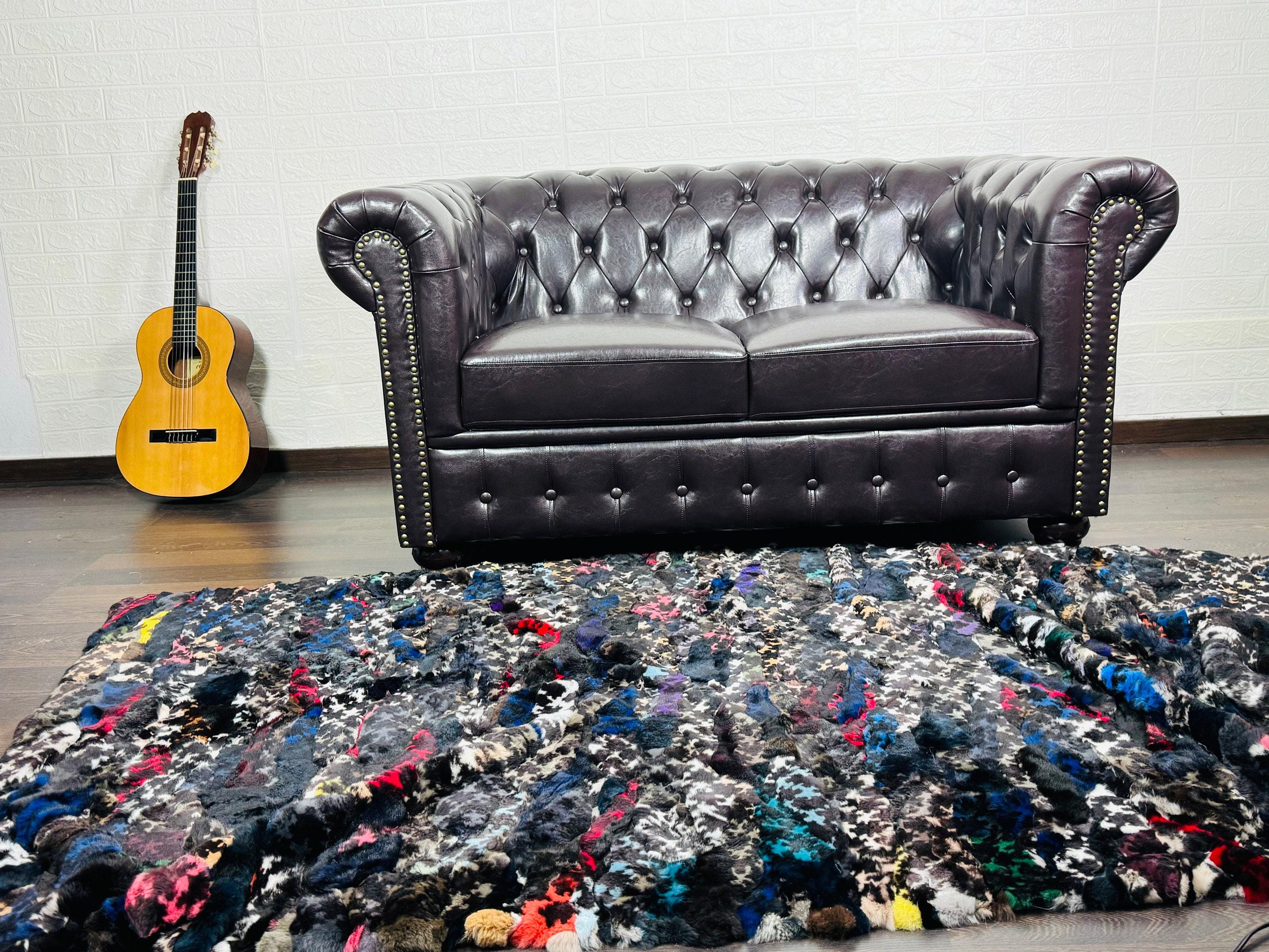 Handmade Real Multicolor Unique Puzzle Design Rex Rabbit Fur Blanket that can be used as a throw as well. Perfect for Bedspread or Sofa Cover.