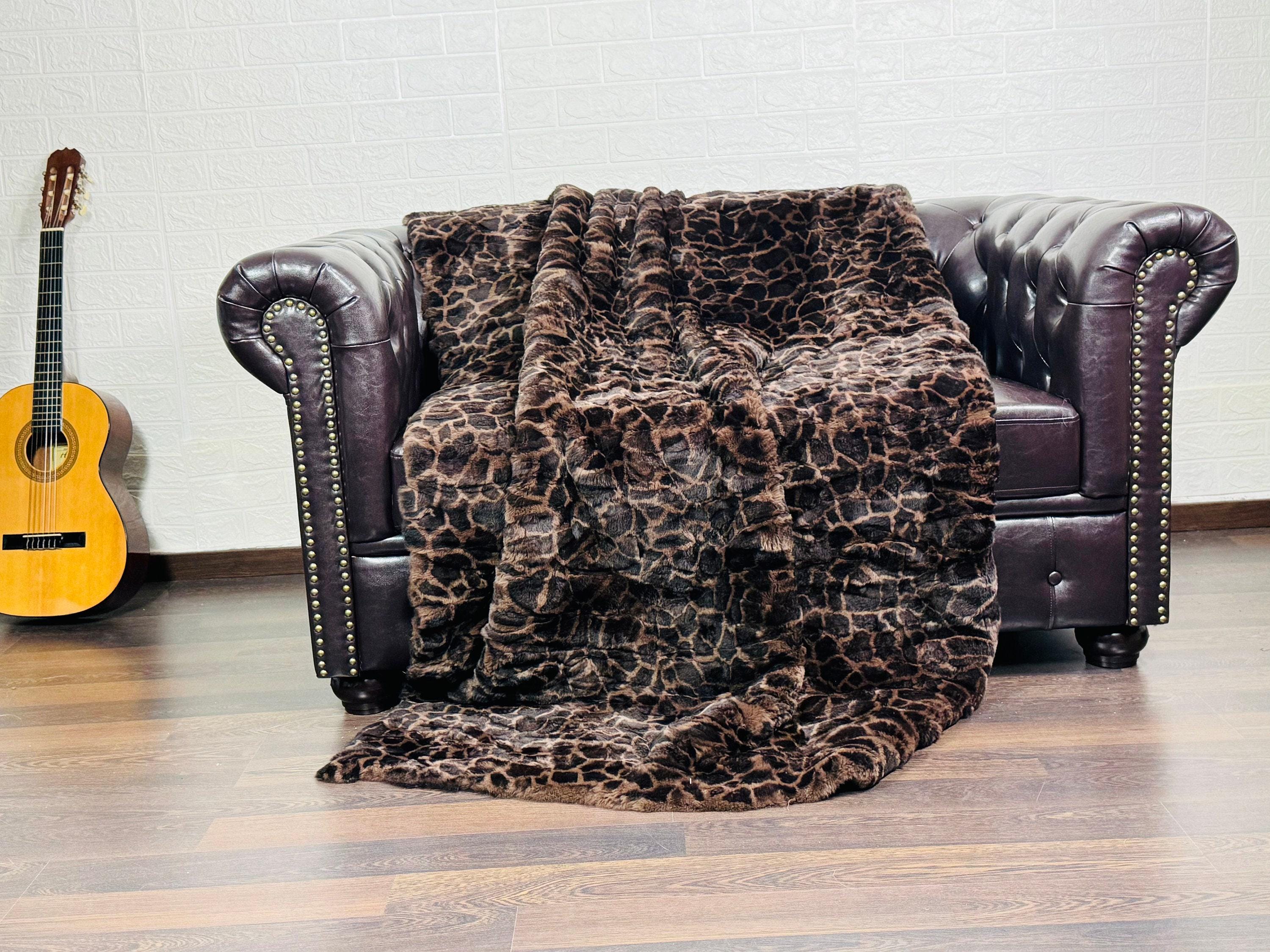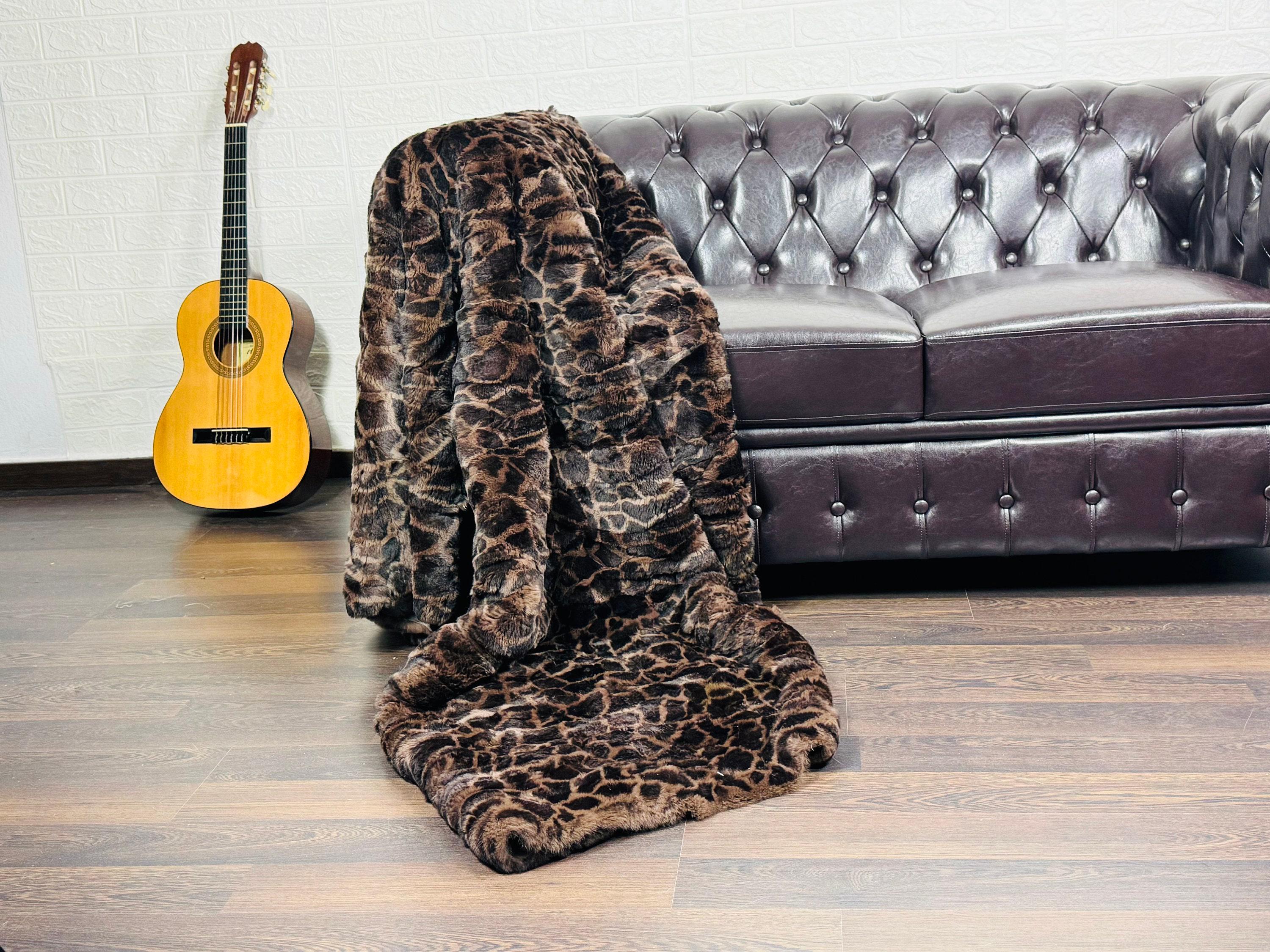 ● 1x Genuine Rex Rabbit Fur Blanket In Brown Leopard Print