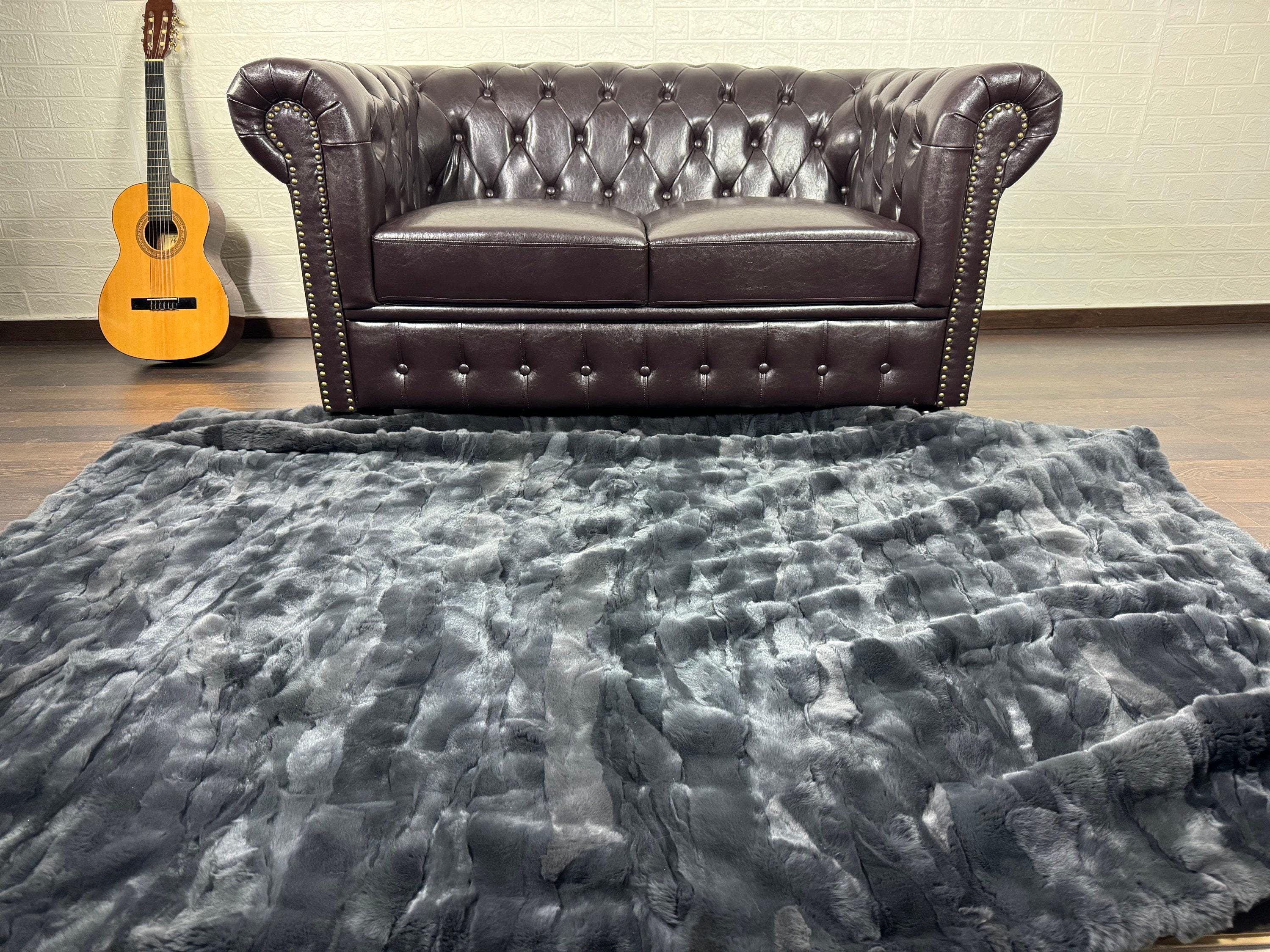 ● 1x Genuine Rex Rabbit Fur Blanket In Gray Color