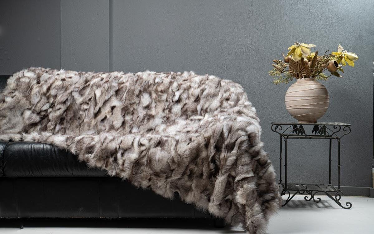 Lovingly crafted by hand, this silver real fox fur blanket throw was created with chilly days in mind.