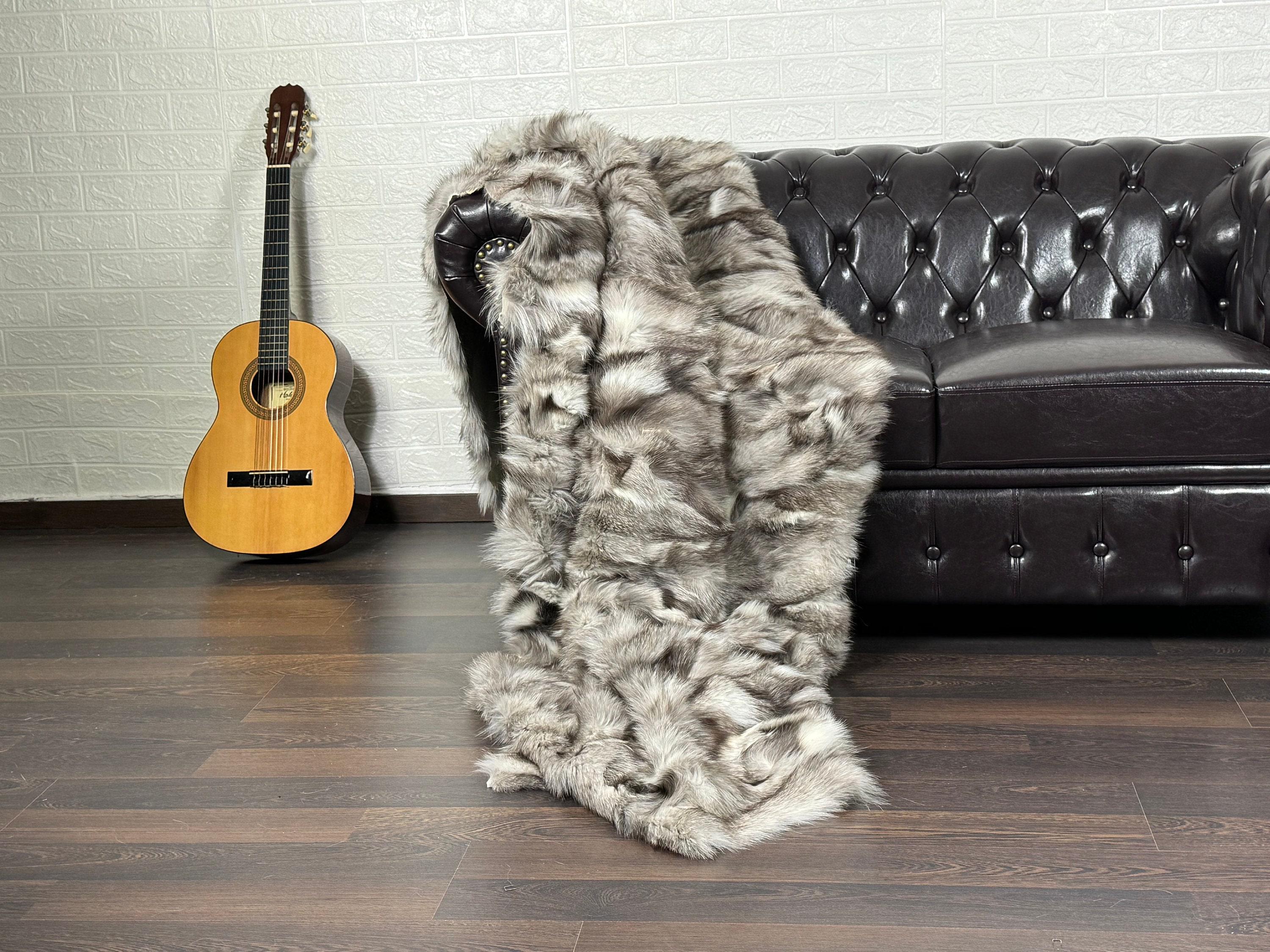 Lovingly crafted by hand, this silver real fox fur blanket throw was created with chilly days in mind.