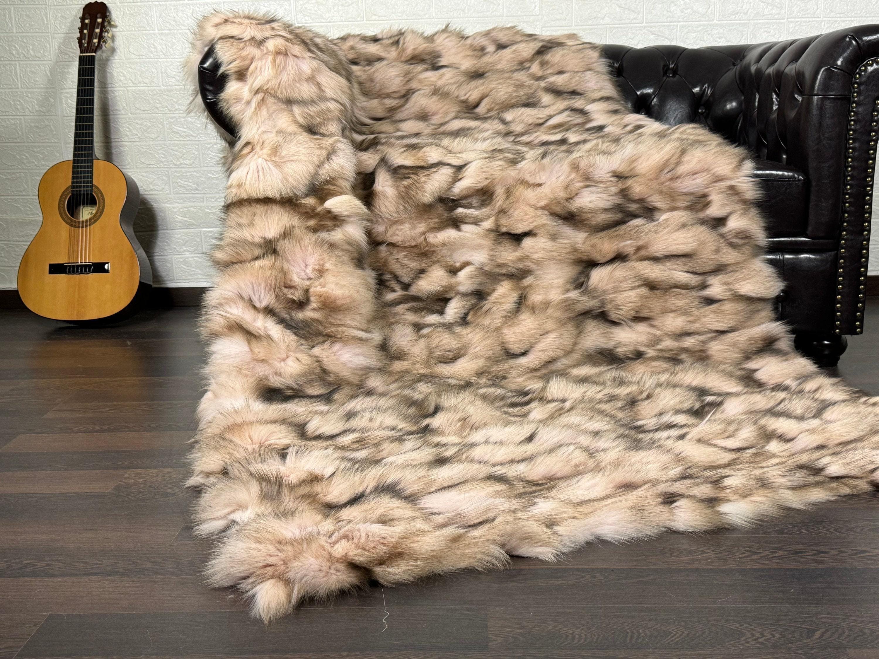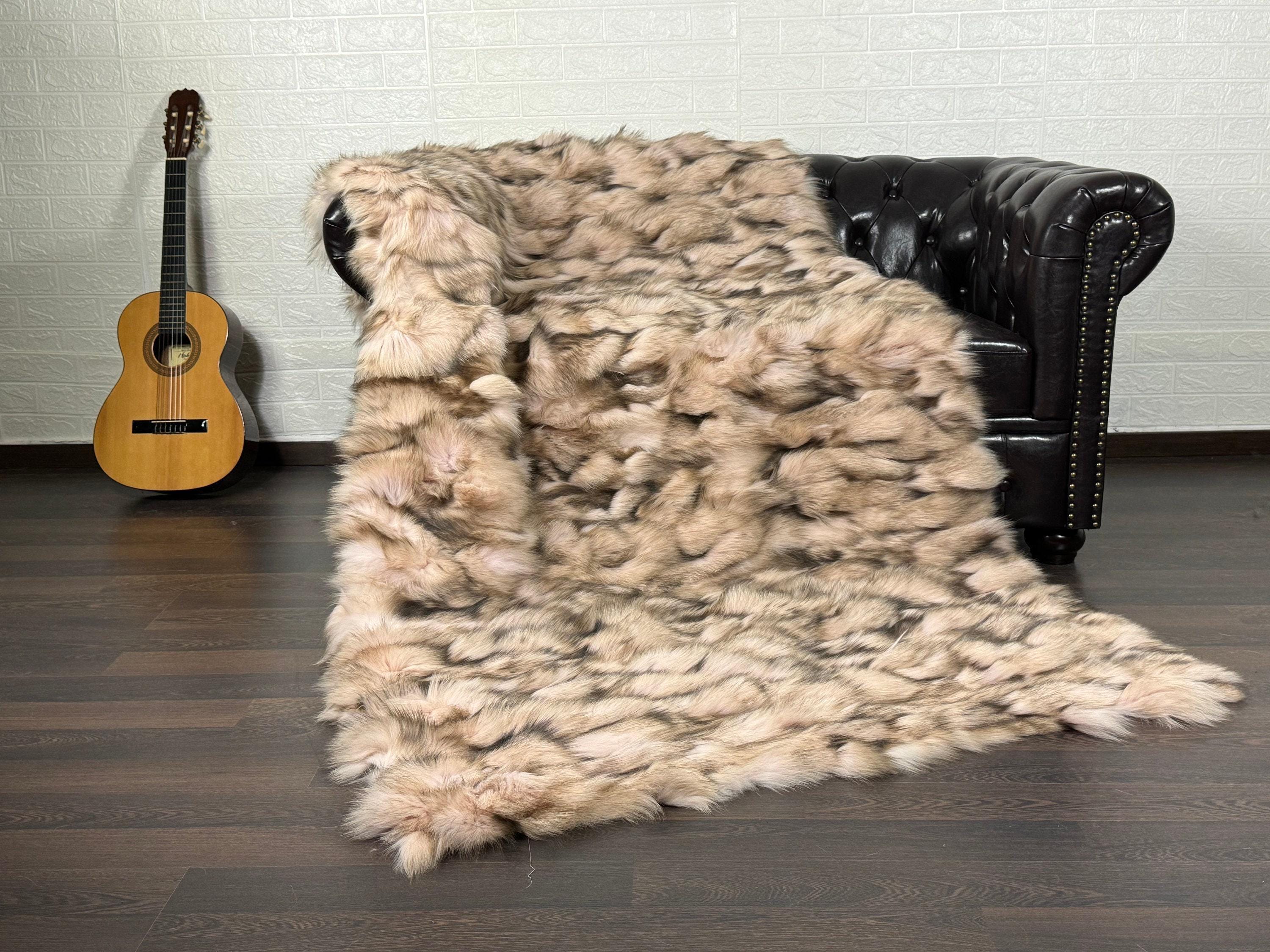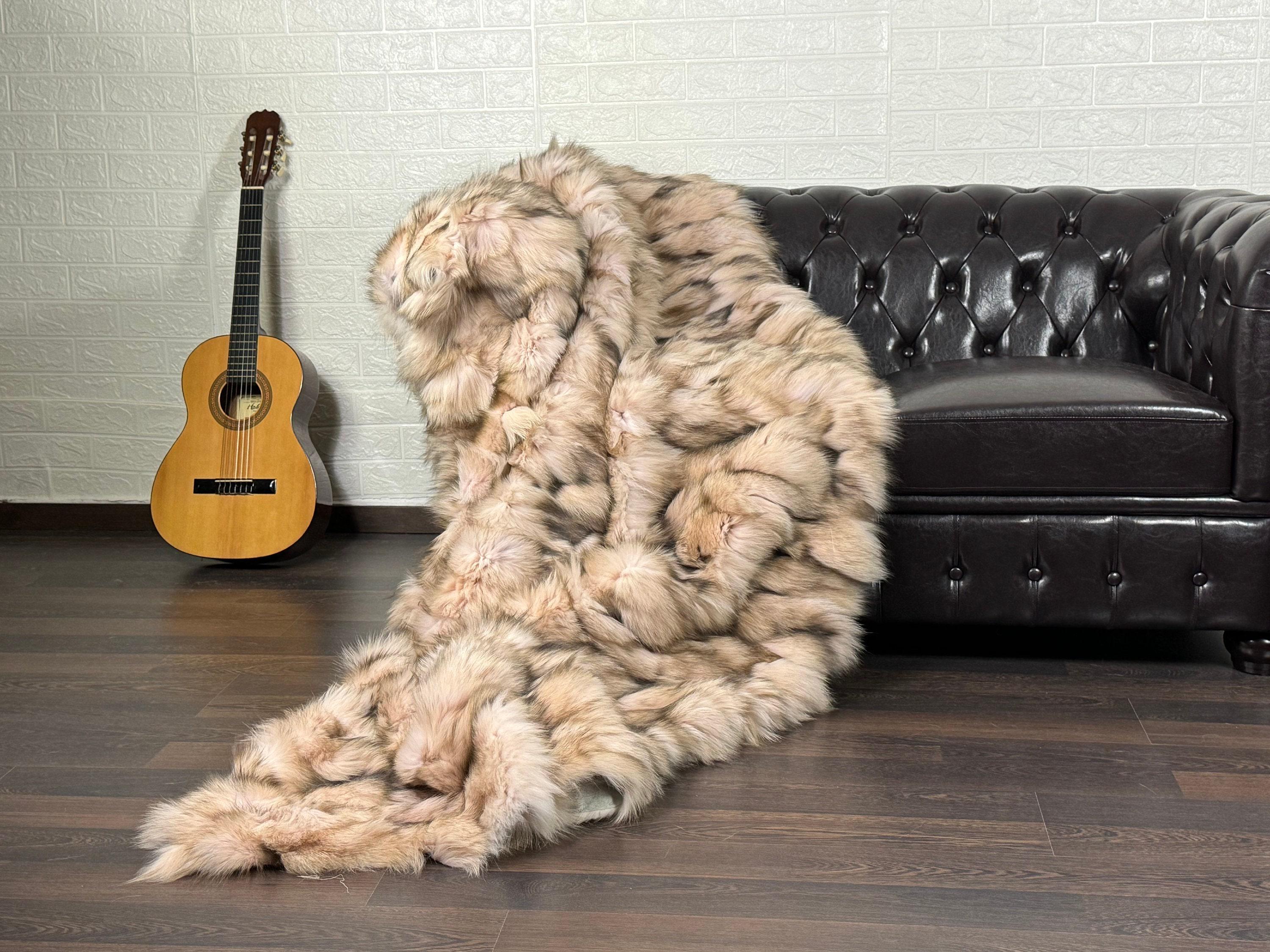 Lovingly crafted by hand, this silver real fox fur blanket throw was created with chilly days in mind.