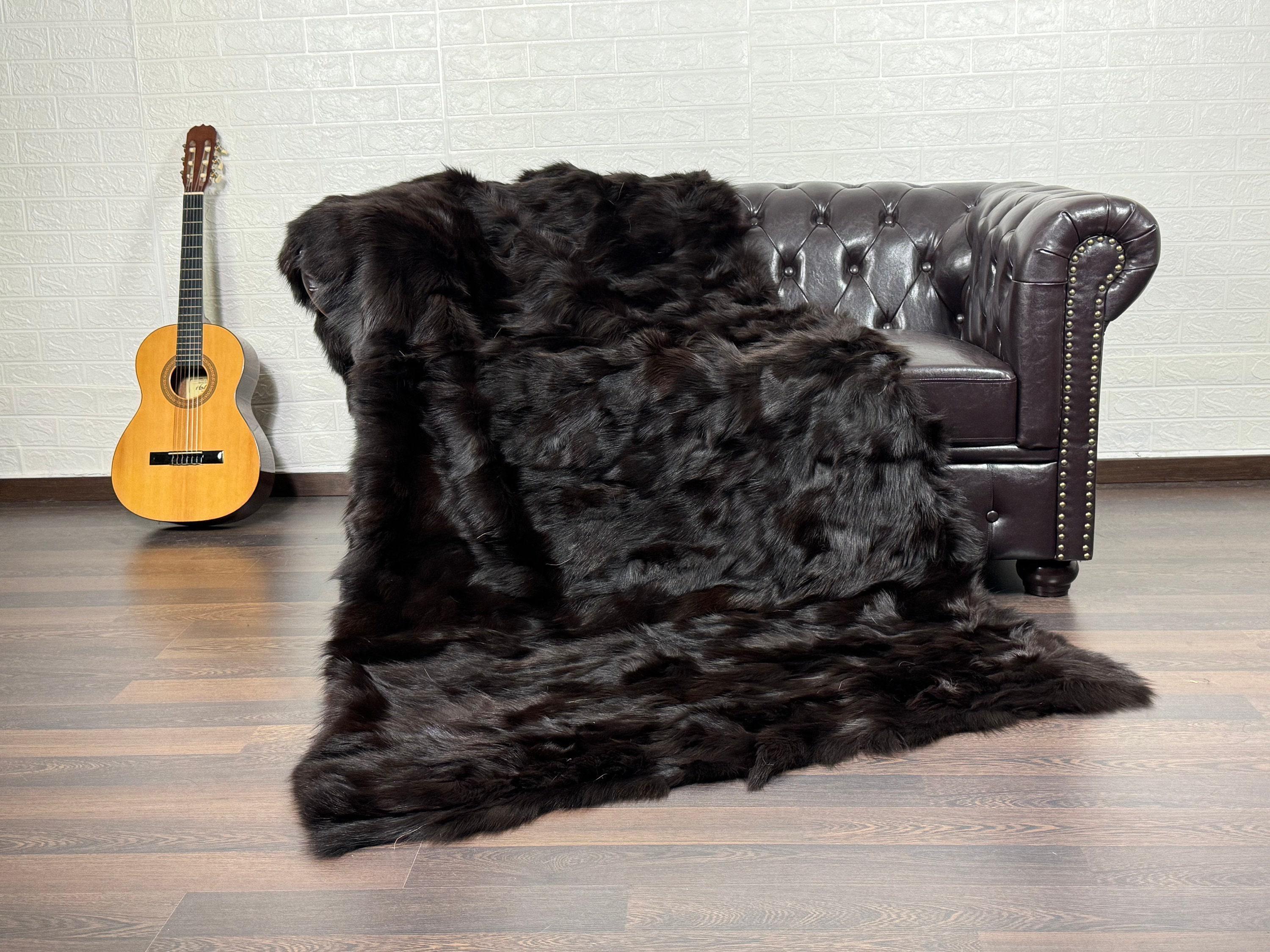 Handmade Real Brown Fox Fur Throw Blanket that can be used as a throw as well. Perfect for Bedspread or Sofa Cover.