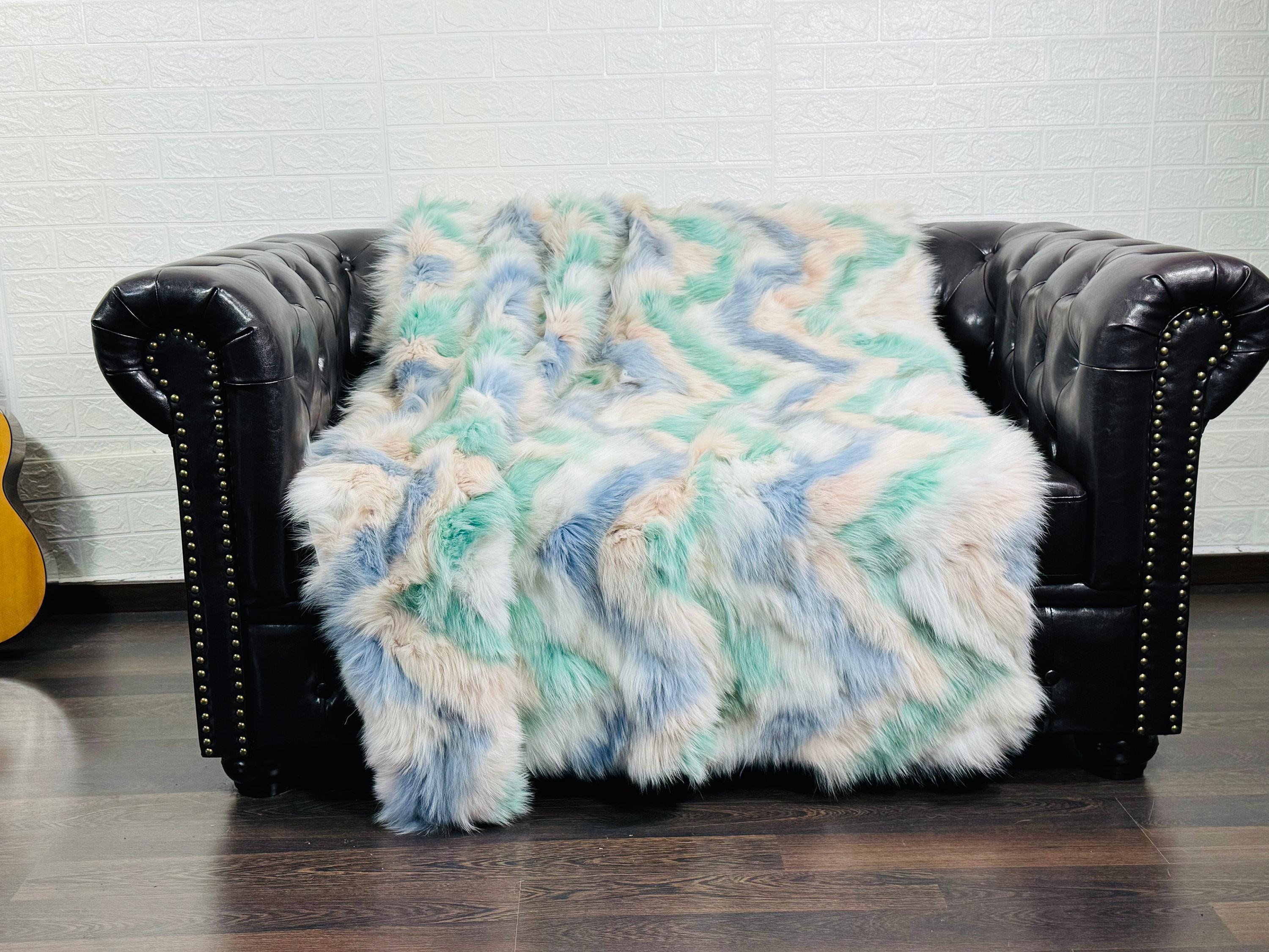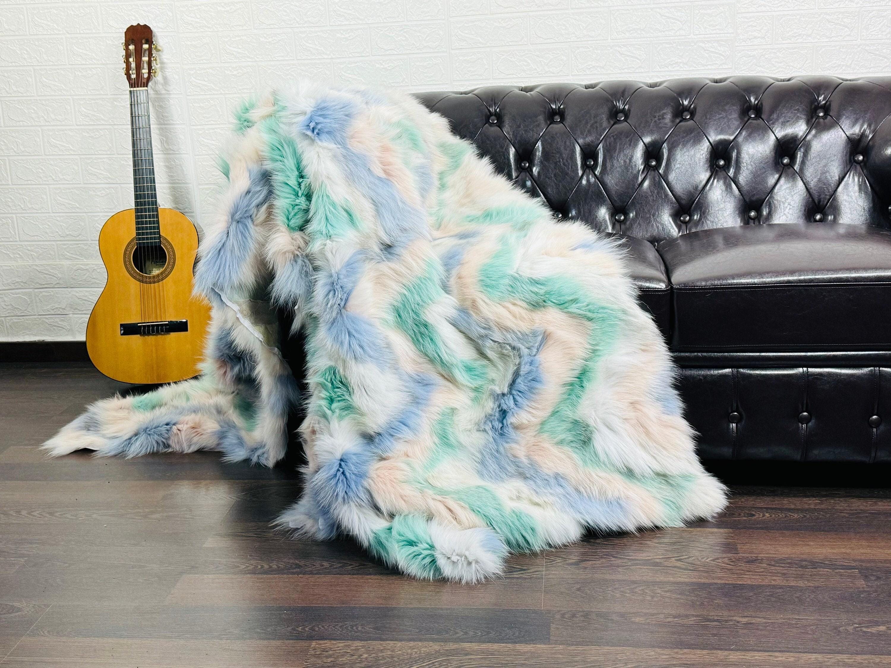 Handmade Real Colorful Color Fox Fur Blanket that can be used as a throw as well. Perfect for Bedspread or Sofa Cover.